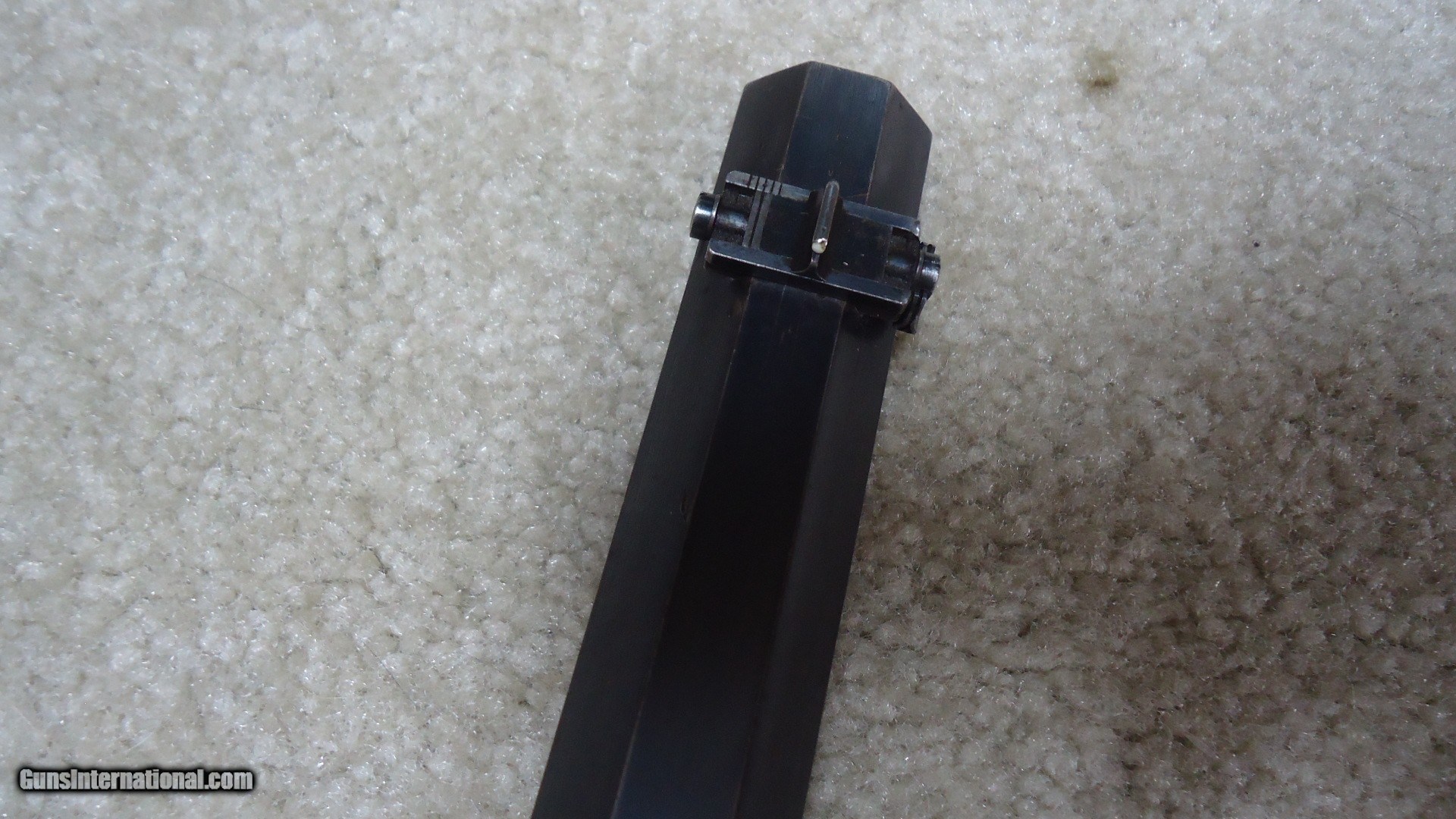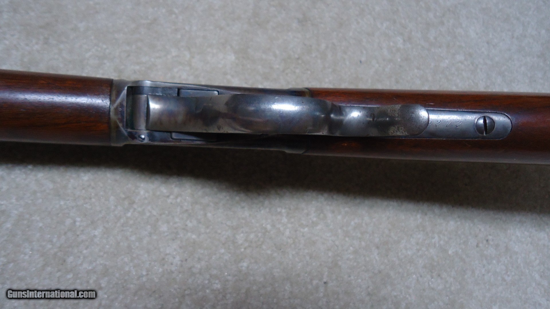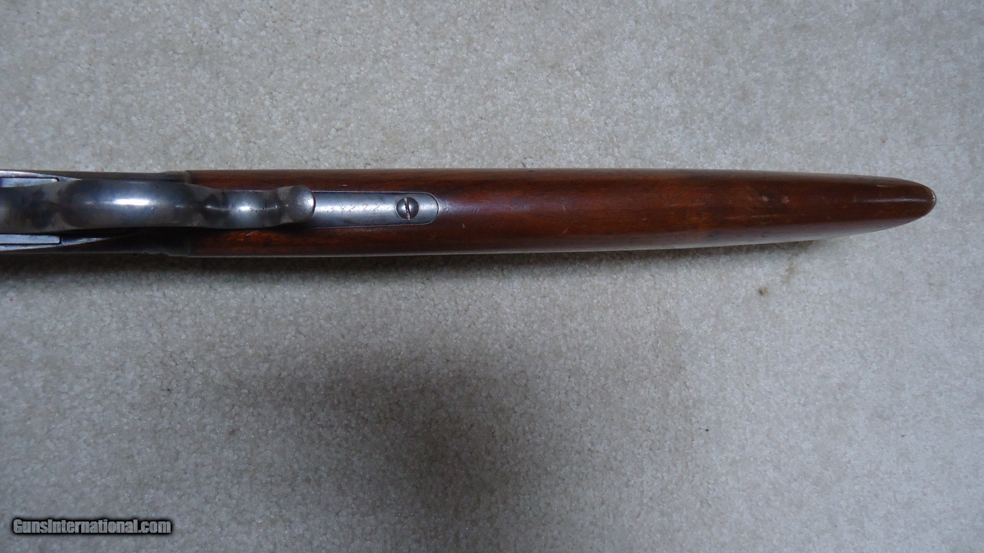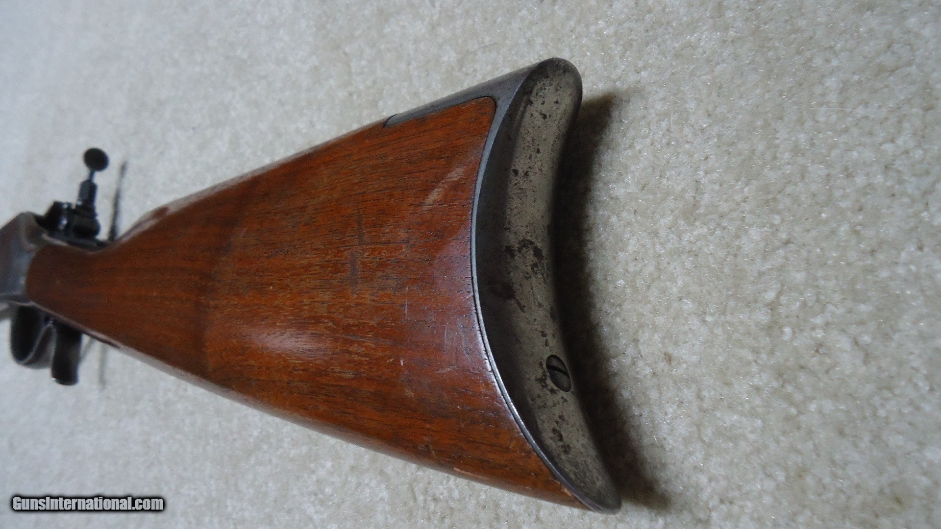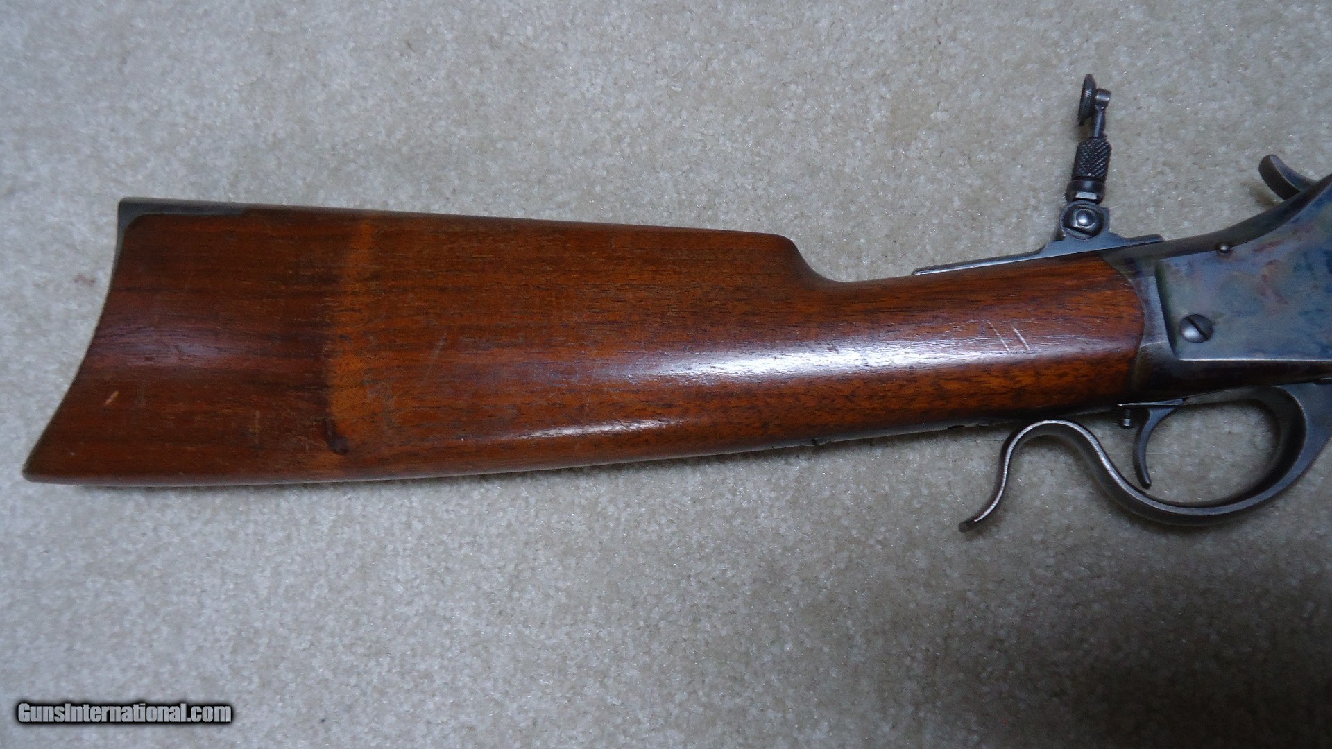 Description: GORGEOUS, SPECIAL ORDER WINCHESTER 1885 HIGHWALL SINGLE SHOT IN SCARCE .40-82 CALIBER WITH EXTRA LONG 32" OCTAGON BARREL, SET TRIGGER, VIVID CASE COLORS AND FACTORY LETTER, #39XXX, MADE 1890. Standard length for this caliber was 30" and standard was also "plain trigger." The factory letter verifies caliber, barrel, trigger etc. Additionally, this rifle comes with a hand written letter stating "This rifle ," (serial number listed) , "was owned by Gene Shiels- Mannetonas-Mannitoba, Canada, used as a target and hunting rifle. First elk 20 Oct. 1912. (under forend)" also "M. L. Dedrick- Winnipeg Mannitoba 30 Mar. 80 (under butt plate)" This is all neatly written under the forend and butt plate. This rifle shows excellent deep barrel blue with crisp markings. The rear barrel sight dovetail has a blank filler in it and the front sight is a short blade that is windage adjustable. It is fitted with a Lyman tang sight. The receiver sides and receiver ring show vivid case colors. The upper sides and bottom of the lever also show fine case color as does the upper tang around the hammer and tang sight. The set trigger functions properly and retains the adjustment screw. Butt stock and forend are excellent. The bore is sharp, bright and excellent! Only 1,703 1885 Single Shot rifles were made in .40-82 (Compared to 11,174 for .32-40, and 7,596 for .38-55, and 3,032 for .45-70). This rifle has it all: Scarce caliber, extra length barrel, set trigger, superb condition, family history and all verified by a factory letter! (note: the dark spots on the receiver sides are remnants of the protective lacquer applied by the factory!) SOLD Antique: Yes Manufacturer: Winchester Model: 1885 HIGHWALL Serial Number: 39XXX Barrel Length: 32 Condition: EXCELLENT Bore Condition: EXCELLENT |