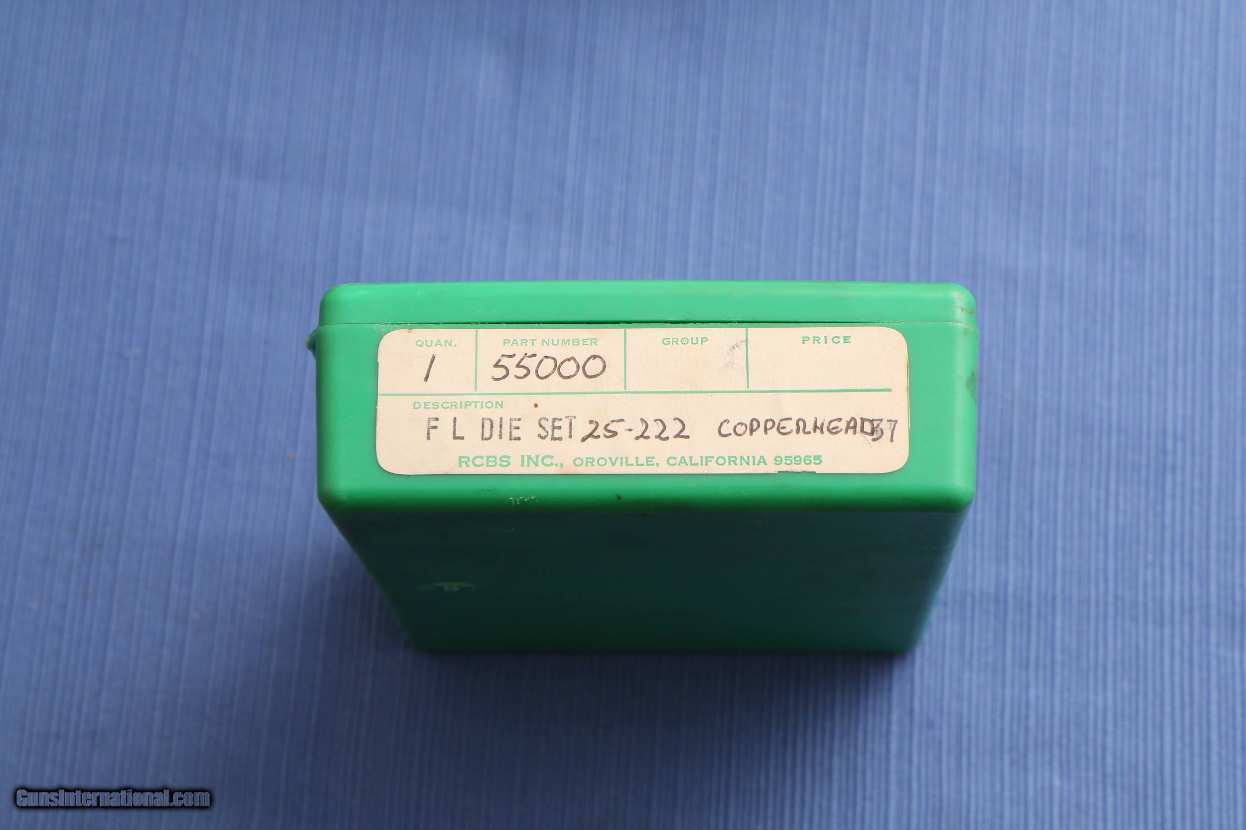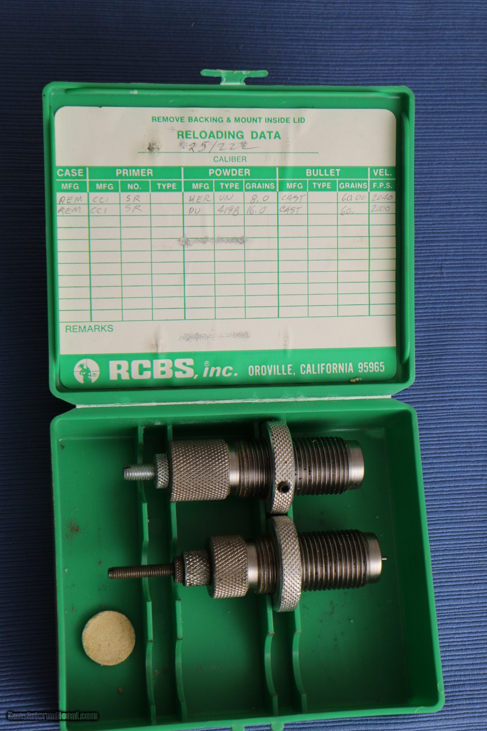 RCBS dies and 81 brass included. Also, we have 14 loaded rounds. The cartridge is the .222 Rimmed necked up to .25 caliber.
