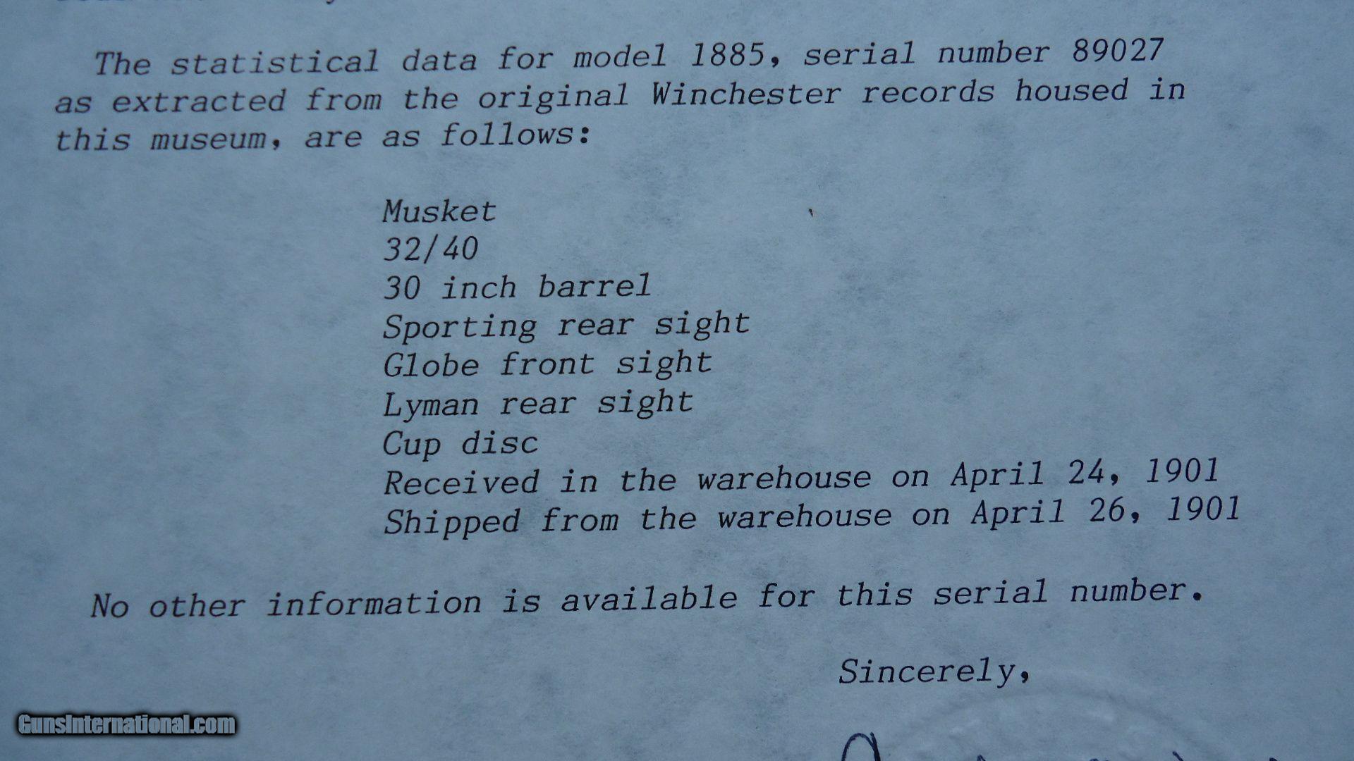 ONE OF A KIND WINCHESTER MODEL 1885 HIGH WALL MUSKET IN CALIBER .32-40