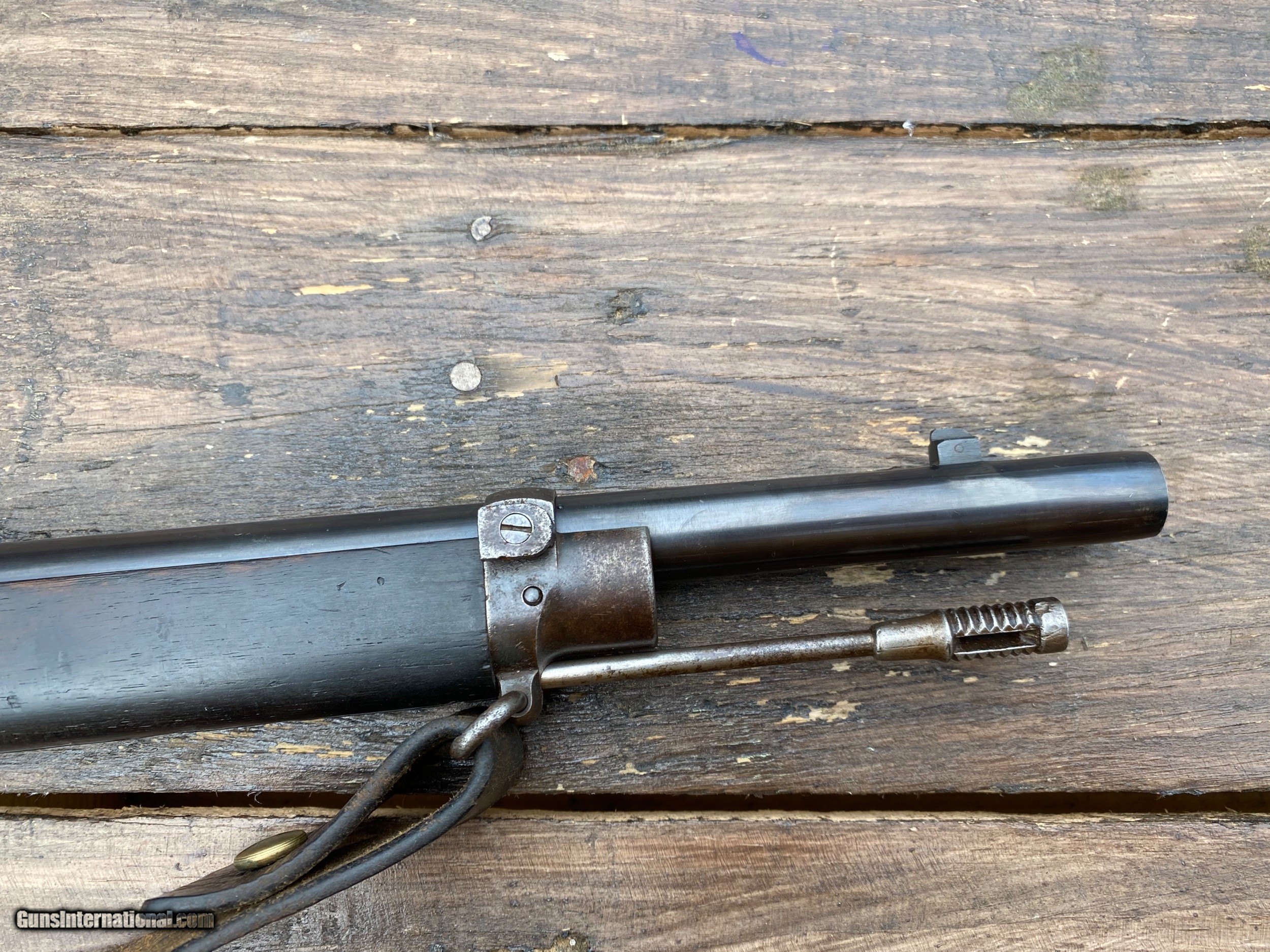 Description: Very Rare Winchester Model 1885 Musket chambered in 45-70. This rifle comes with the factory letter with 1886 manufacture date. The barrel blue is very strong. Original cleaning rod, leather sling and bayonet lug are present. Wood shows some wear but no cracks or major issues. Action is strong. There were less than 500 high wall Winchester muskets ever made. Very few left. $3500 includes professional packagaging and priority shipment to your door. Trades considered! Whiskey Rebellion Firearms is a disabled veteran owned small business. We accept debit and credit cards with no fee! No FFL needed! SOLD Curio/Relic: Yes Antique: Yes Rifle Caliber: .45-70 Government Manufacturer: Winchester Model: 1885 |
