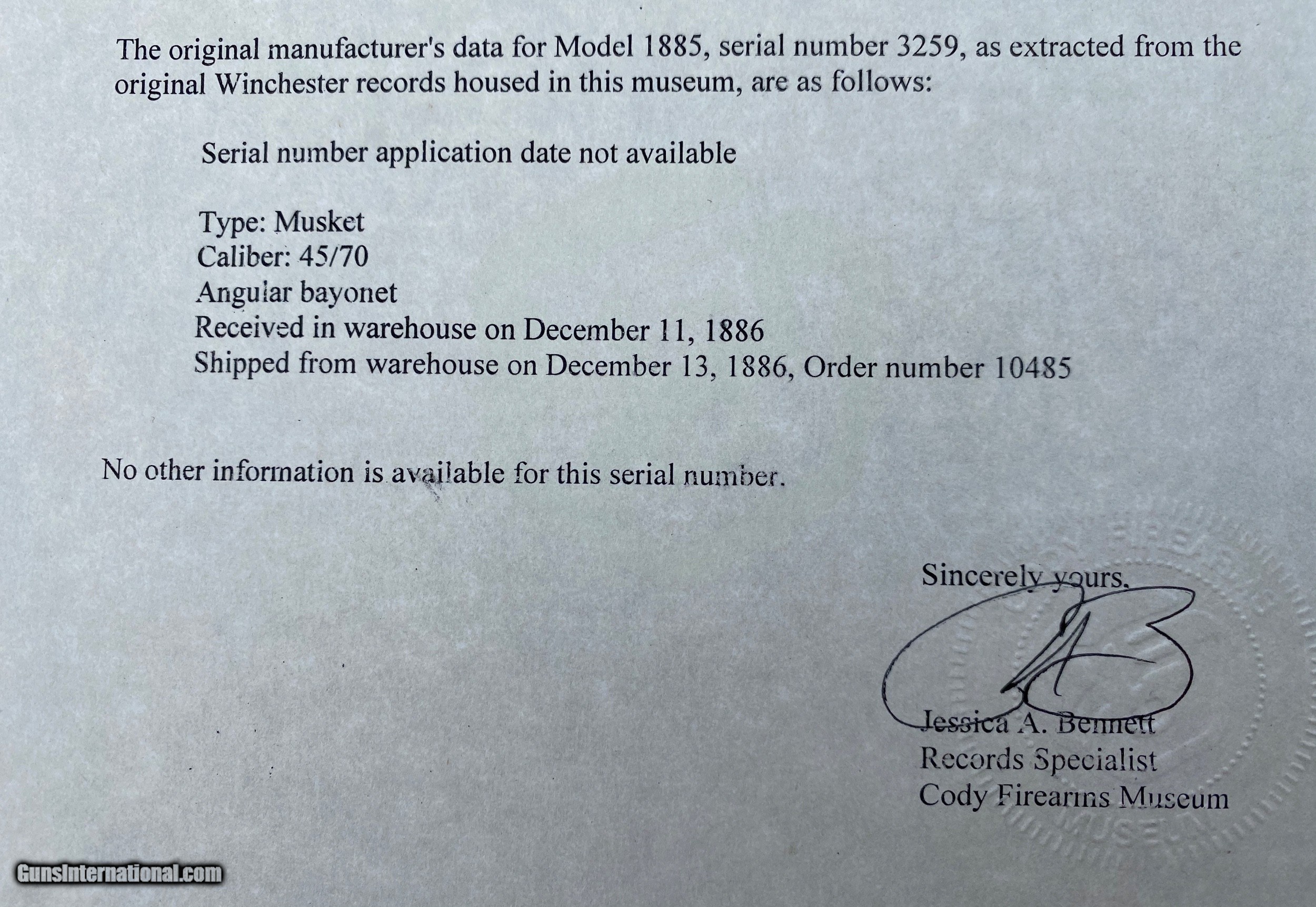 Rare! 1885 Winchester 45-70 High Wall Musket-With Factory Letter
