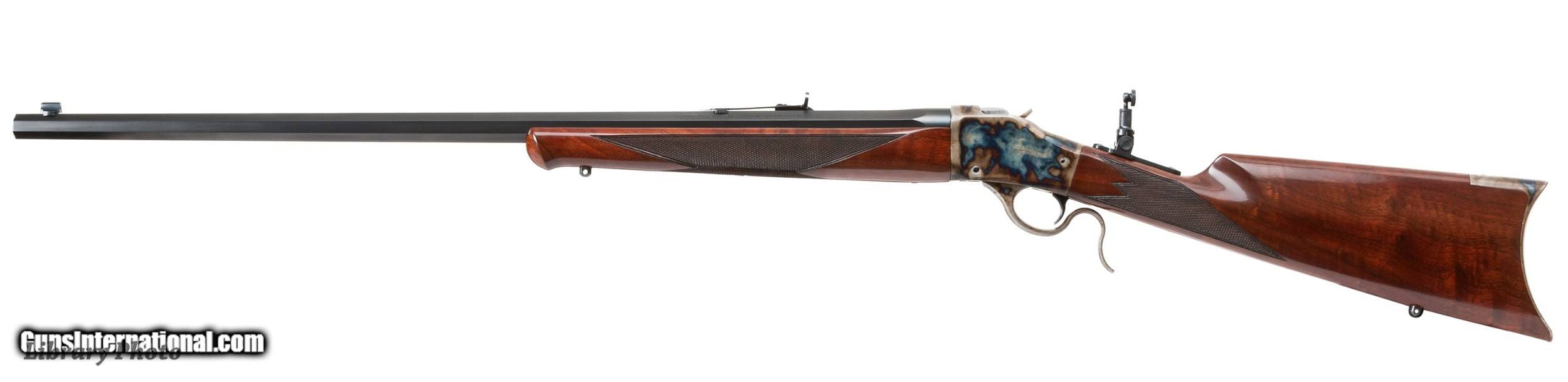 Description: The design that marked the beginning of John Moses Browning’s 20-year collaboration with Winchester endures, and we’re proud to offer our expression of the 1885 High Wall chambered in .45-70. Starting with a factory-new Winchester 1885 Traditional Hunter High Grade, we apply our signature bone charcoal color case hardening process to the receiver, lever, hammer and crescent butt plate. In addition, we refinish the 28″ full octagon barrel in traditional rust blue. We haven’t forgotten the small parts, as we charcoal blue the Marble’s gold bead front sight and buckhorn rear sight as well. And last but not least, we refinish the upgraded walnut stocks in a hand-rubbed oil finish to match Winchester’s classic red shading. This ultra-limited run consists of 10 pieces total, so reserve yours today. Contact us for more information and additional photos. SOLD Manufacturer: Winchester Model: 1885 High Wall Serial Number: 00236ZN85G Caliber Info: .45-70 Gov't Condition: New Barrel Type: 28" Full Octagon Action: Falling Block Stock Dimensions: 3/4" x 1-1/2" x 13-1/2 Butt Pad: Crescent LOP: 13-1/2 Sights: Buckhorn rear, Marble’s gold bead front, Marbles tang Item Location: NY |