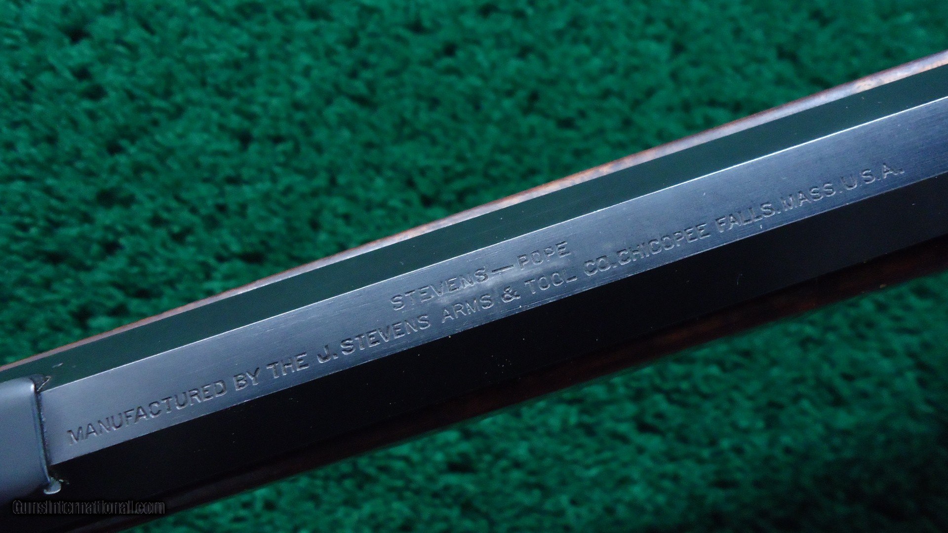 Description: This gun has a 26 inch half octagon barrel with a near excellent bore chambered in 22 LR caliber. Features a Pope barrel. "Stevens - Pope" etched on the top barrel flat also in Manufactured By The J Stevens Arms and Tool Co. Chicopee Falls, Mass, USA. Gun has a period correct folding tang sight. Original wood is in excellent condition with a non-checkered pistol grip stock and very fancy wood. Retains most of its varnish. Barrel retains about 95%-barrel blue and the receiver has about 90% blue. Good case colors on the hammer and lever. The Deluxe wood gives an overall neat appearance to the gun. The non checkered pistol grip and Swiss style butt plate is rather scarce. Leroy Merz Antique Firearms specializes in antique and vintage Winchesters and other fine American firearms. Since 1965 Mr. Merz has taken part in the world of firearms and has been a contributor to many well known reference books. We have hundreds of additional guns in every price range at our home online. Search for Merz Antiques in google. SOLD Curio/Relic: Yes Rifle Caliber: .22 Long Rifle |