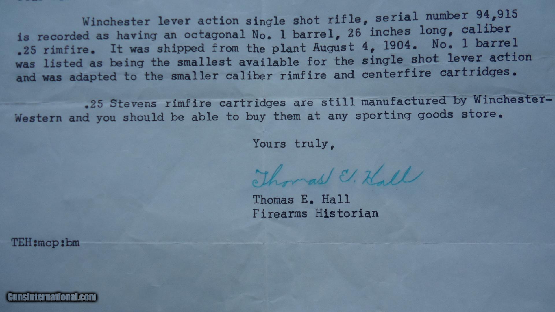 Description: 26 inch octagon Number 1 barrel chambered in 25 Stevens RF caliber. Bright shiny bore. Barrel retains all of its original factory blue with crisp markings and sharp corners to the octagons. Original sights include a globe front and sporting rear with a midrange Marble tang sight. Receiver also has all of its original blue with some thinning to the top of the frame. Ample case colors remain on the lever and hammer. Butt plate is a gray patina with traces of case color. Crisp action. Wood is in great condition as well. This gun looks surprisingly well for being 113 years old! A real time capsule. Complete with a factory letter from 1958. Leroy Merz Antique Firearms specializes in antique and vintage Winchesters and other fine American firearms. Since 1965 Mr. Merz has taken part in the world of firearms and has been a contributor to many well known reference books. Just recently we mailed the 127th edition of our privately-published catalog. We have hundreds of additional guns in every price range at our home online. Search for Merz Antiques in google. SOLD Curio/Relic: Yes |