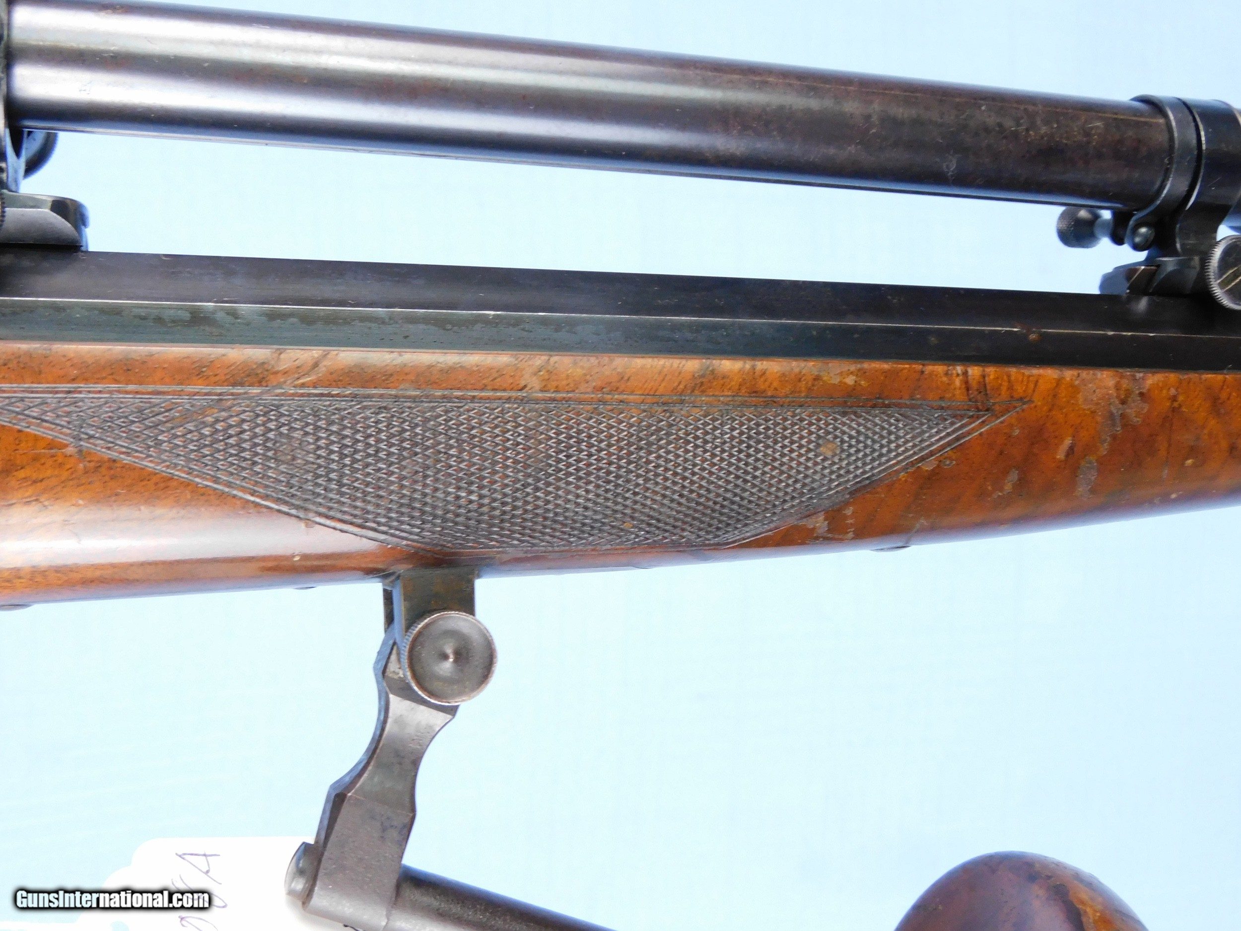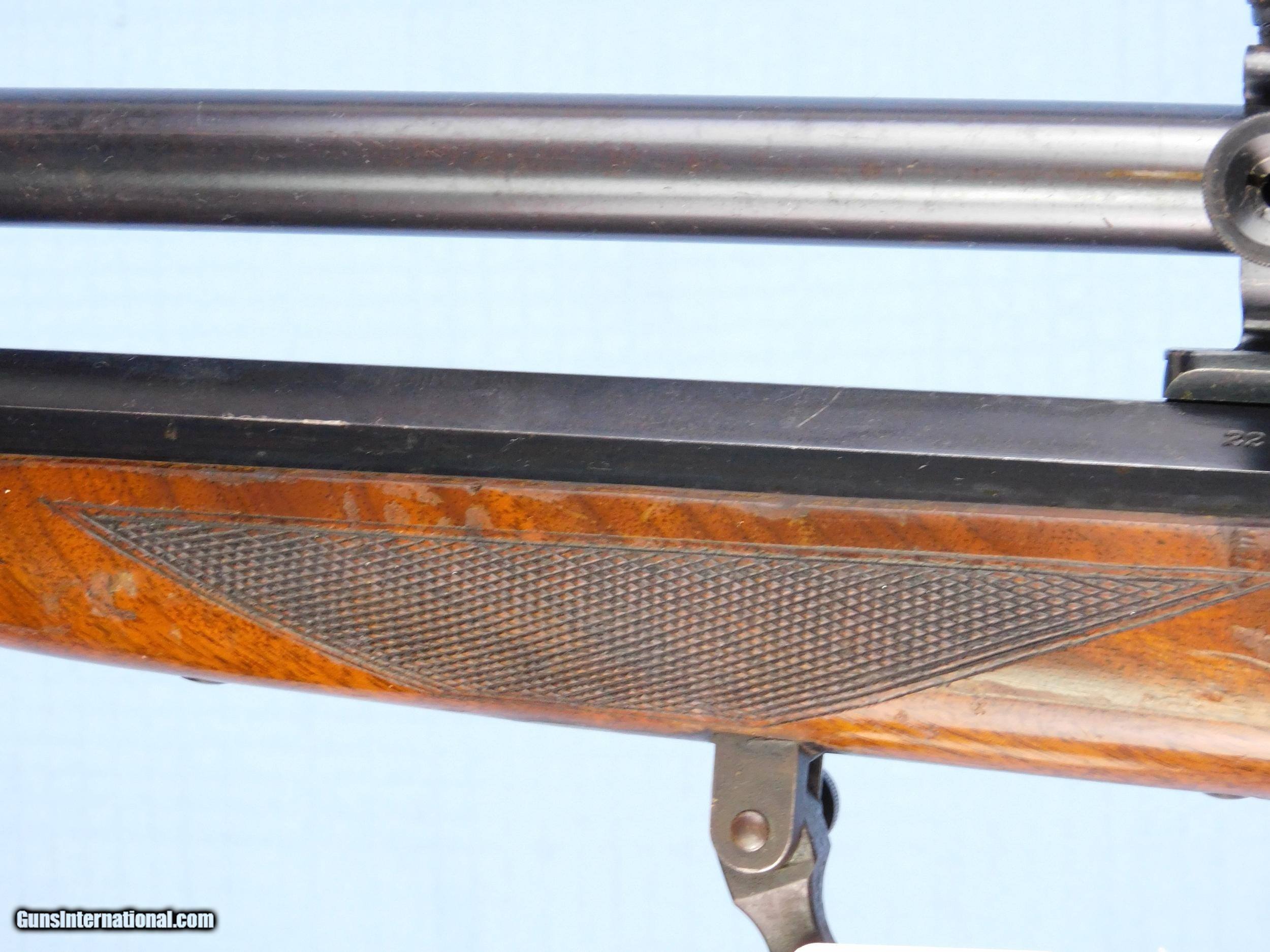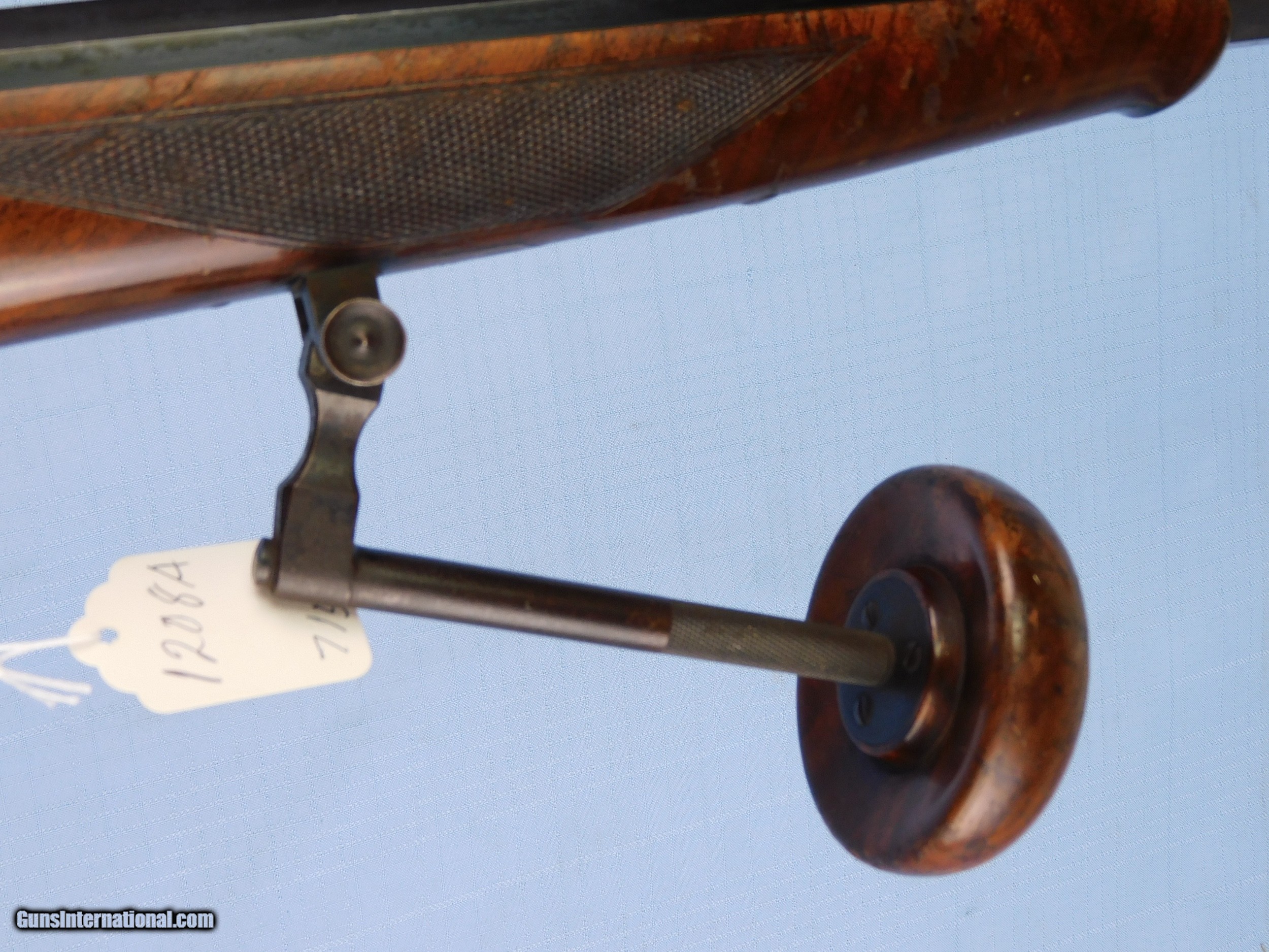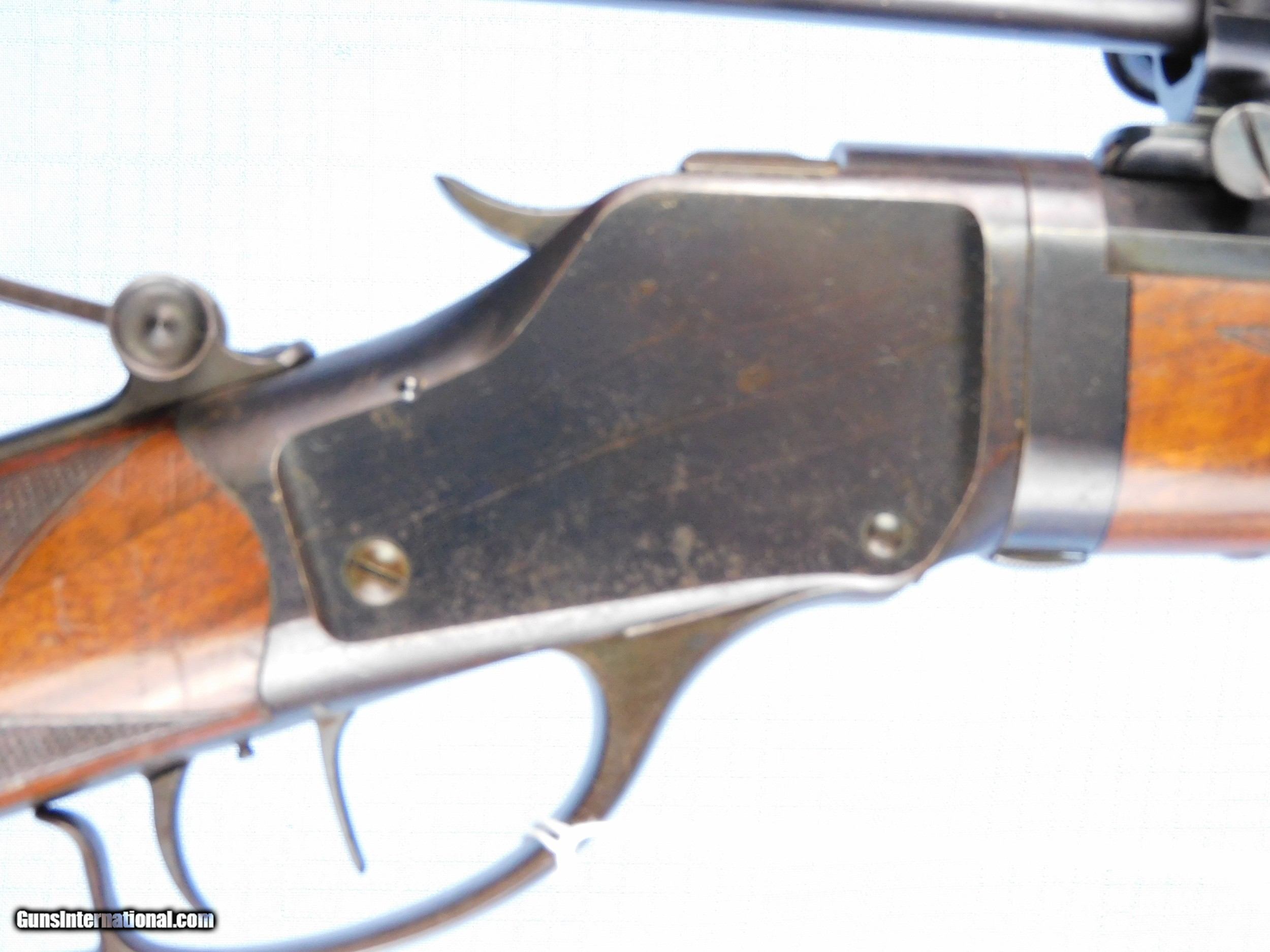 Description: #1208A WIN. MODEL 1885 HI WALL SCHUETZEN TD RIFLE, 22 short, SN 1120XX, 30” oct. bbl., VG checkered Schuetzen stock and forend with some finish wear, vernier tang sight, spirit level vernier front, Win. A5 scope & mounts, DST, Win. palm rest, Schueten buttplate, exc. bore, 97% blue, Cody sheet. $8500 SOLD Antique: Yes Rifle Caliber: .22 Short |