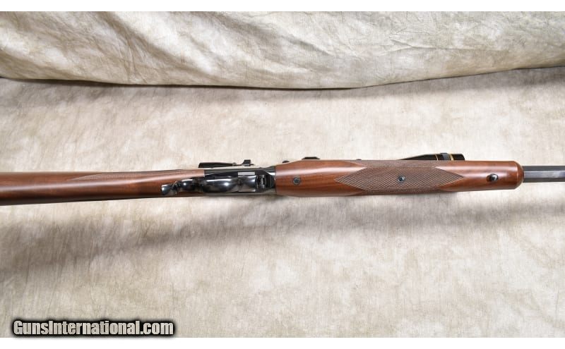 Description: A bit of nostalgia, done up in modern materials and using modern manufacturing techniques make this High-Wall Hunter a keeper. It features a 28-inch barrel, and nice wood with sharp checkering. .22-250 Remington SOLD Chambers: Single shot Metal Condition: Excellent. Wood Condition: Excellent. Bore Condition: Shiny and bright with good rifling. Barrels: 28-inch octagonal. Triggers: Factory trigger. Stock Dimensions: 13-3/8 inch LOP Fore End: Well-matched checkered walnut with Schnabel. Butt Pad: Soft and thick rubber pad. Weight: 10 lb - 4 oz incl scope Sights: Set up for scope. Outfitted with a Leupold VARI-X III 6.5 x 20 SCOPE. Item Location: Rogers |