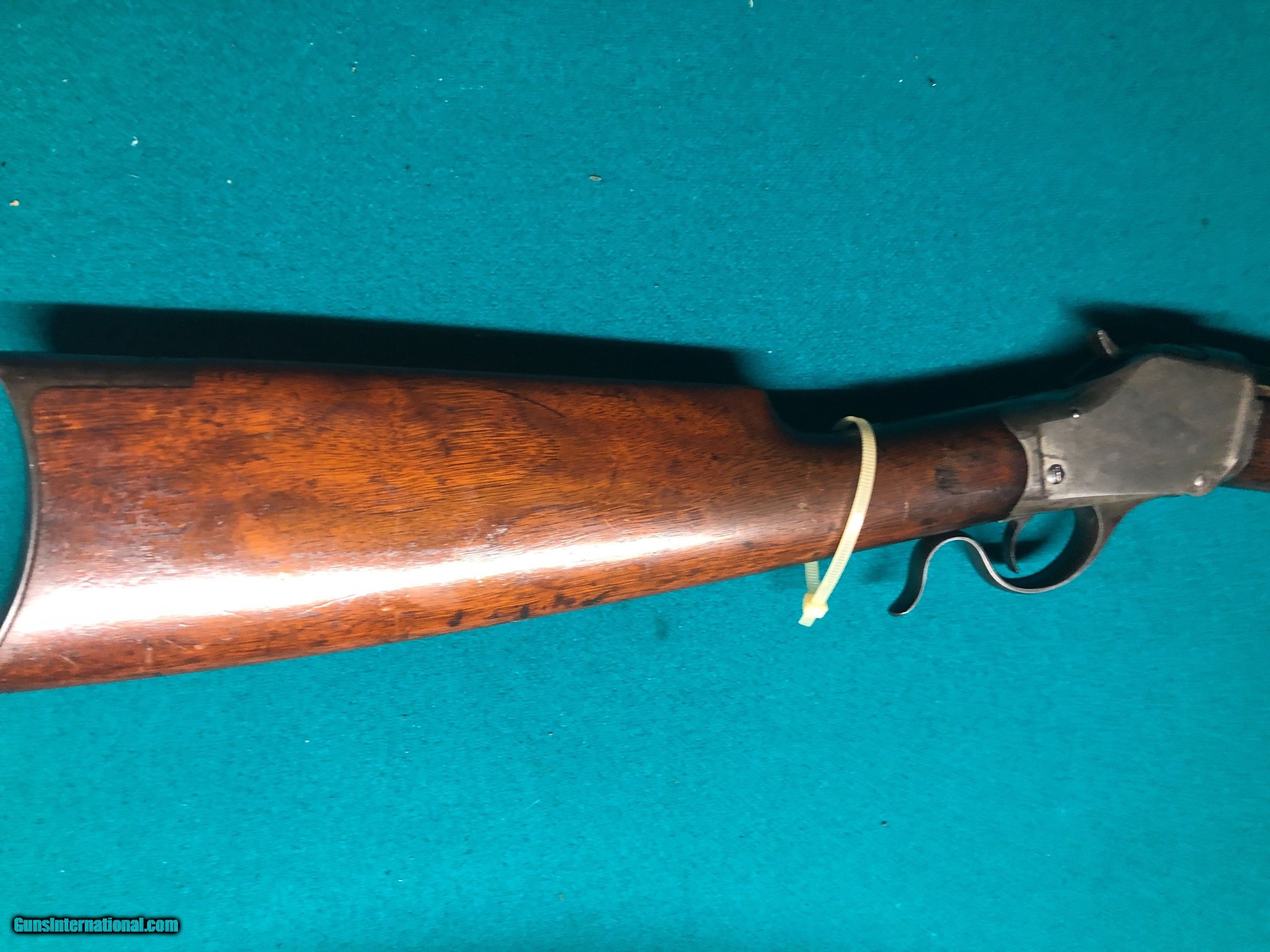 Description: Winchester 1885 32-40. Made in 1892. Good honest gun very accurate good barrel rifling, basically a brown gun . Some bluing on barrel by receiver. Has area on left side of receiver that shows 5 streaks. Don't know what caused it . Was that way when I bought gun. Part of its history I guess. Mechanically sound. Bore is very good. #3 barrel. Crescent butt . Basic elevator rear sight SOLD Antique: Yes Rifle Caliber: .32-40 Winchester Manufacturer: Winchester Model: 1885 Serial Number: 620XX Barrel Length: 30 Condition: good Metal Condition: brown Wood Condition: handling marks Bore Condition: very good Barrel Type: octagn Action: lever Triggers: single |