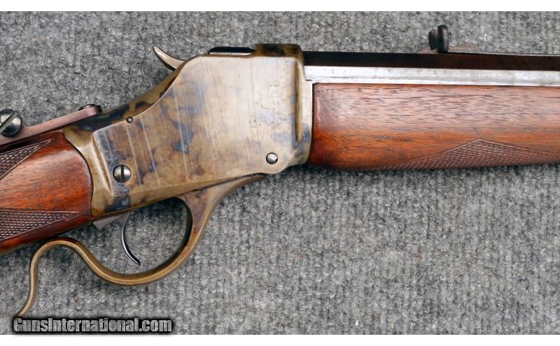 Description: For your consideration, a Winchester model 1885 chambered in .38-55 Winchester. The original buckhorn rear sight is supplemented by a folding tang peep. This piece dates to 1891. .38-55 Winchester SOLD Antique: Yes Metal Condition: Excellent Wood Condition: Excellent Bore Condition: Excellent Barrels: 28 Triggers: Smooth Face Stock Dimensions: 13.25" LOP Fore End: Checkered Butt Pad: Steel Crescent Weight: 10 Lbs Sights: Iron Sights Item Location: Hamburg, PA |