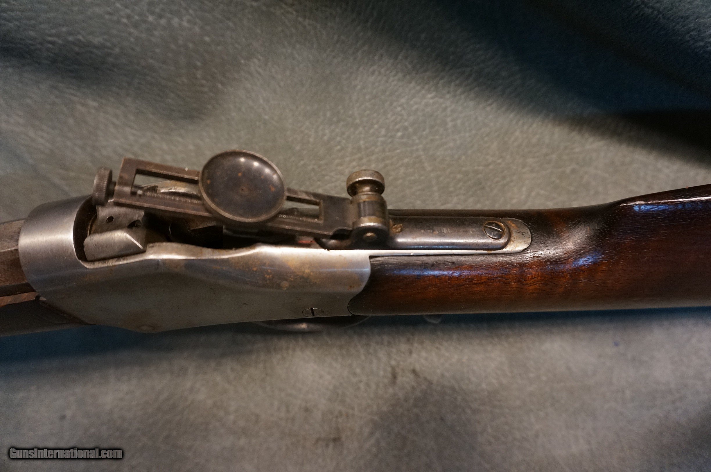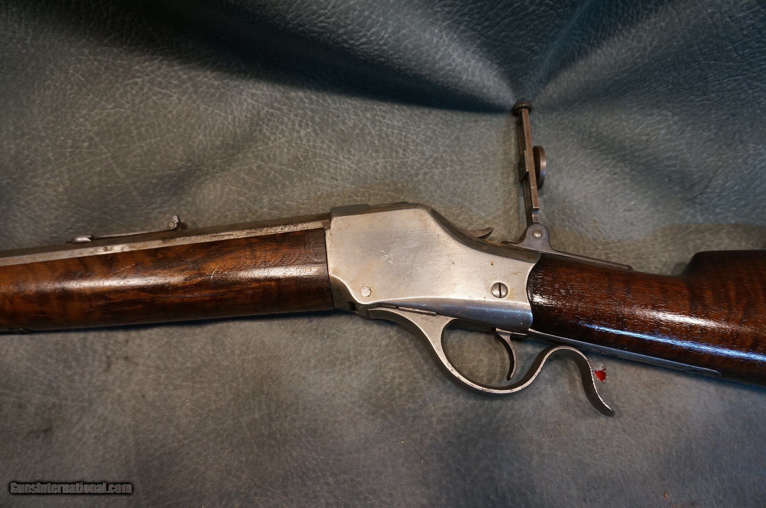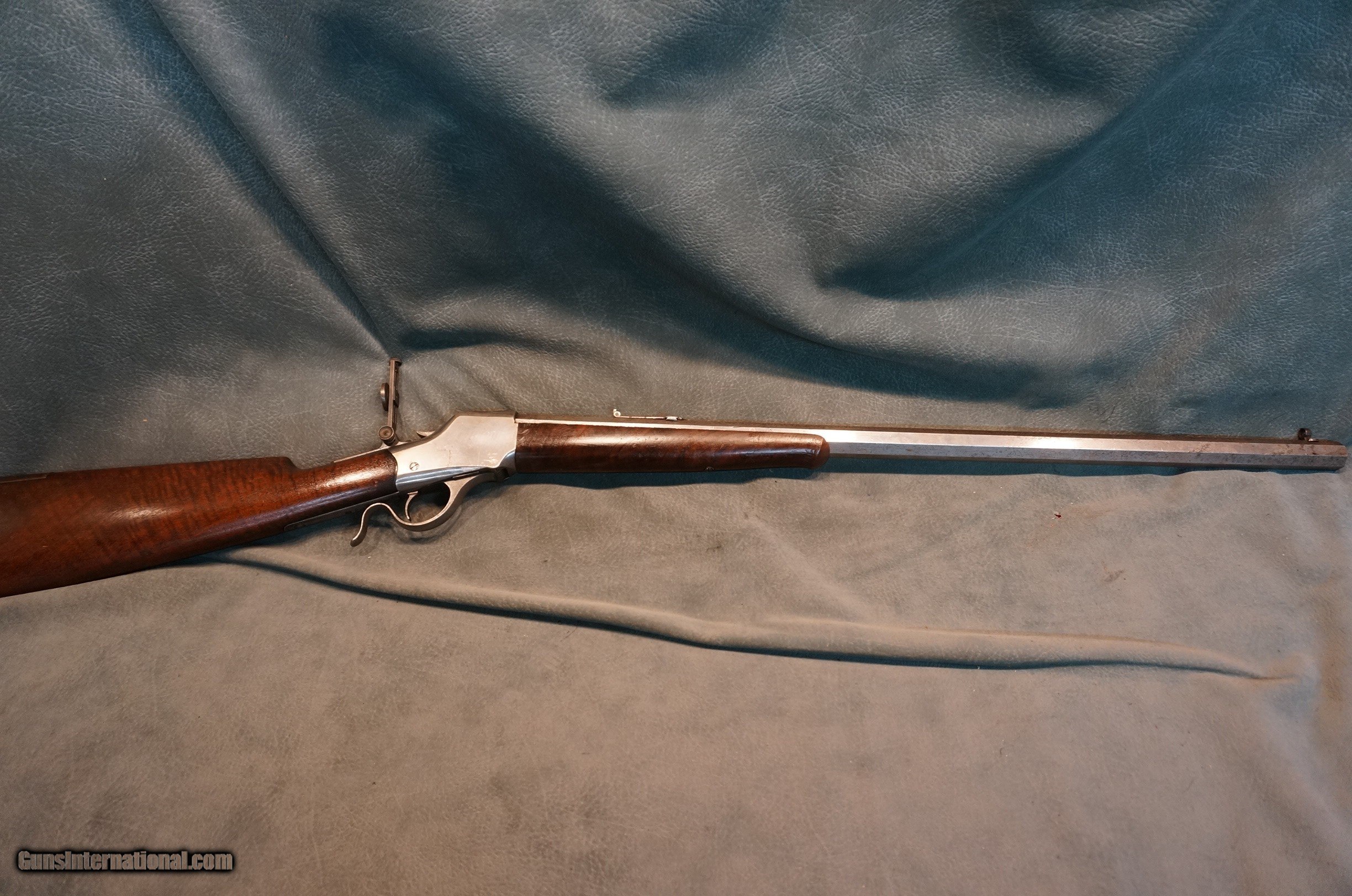 Description: Winchester 1885 40-70 SS 28" barrel,serial #4581,made in 1886,nice wood with figure and fiddleback,antique tang peep sight,folding globe front sight. GUN COLLECTIONS WANTED FOR CASH! We buy, sell, consign and trade new and used firearms. This is our 44th year in business. We offer 90 day layaways with 20% down. No return on layaways. Firearms will need to be transferred through a FFL dealer. Prices reflect a cash discount. There will be 3% added to credit card sales. We trade for gold and silver. THANK YOU! SOLD |