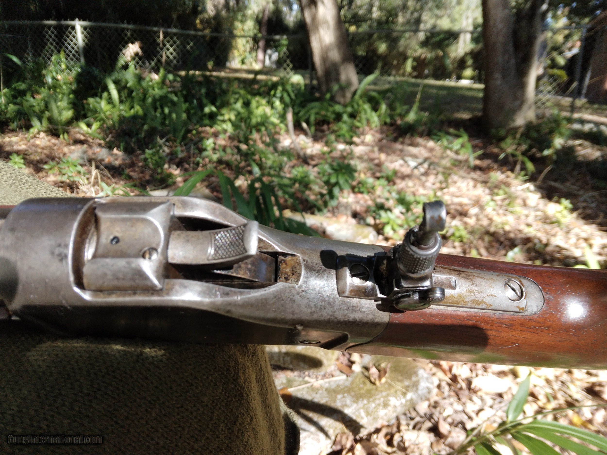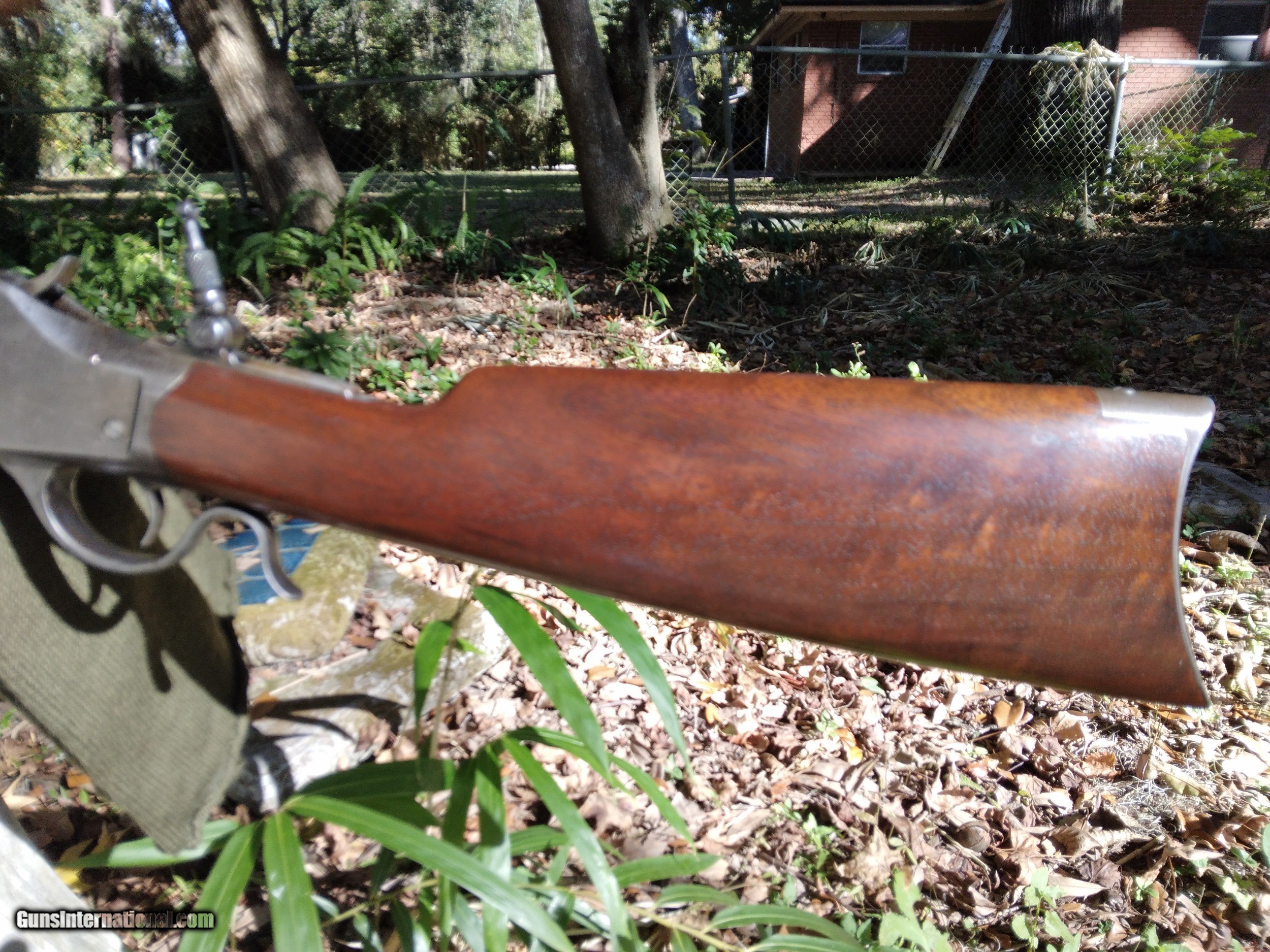 Description: Super nice '85 Winchester. SN# 22,69X made in 1888! 30" 40-70 Sharps Straight caliber, mint .403 bore. Wood to metal fit is perfect with no chips, no splits and nary a scratch or dents! Still retains alot of that beatiful Winchester red color.. metal is excellent with usual fading,, never any rust,, no pits.. Sights are correct. Lyman tang matches the metal perfect.. selling to buy property to build my retirement cabin. 3 day inspection of course!! Located in Jacksonville FL. SOLD Antique: Yes |