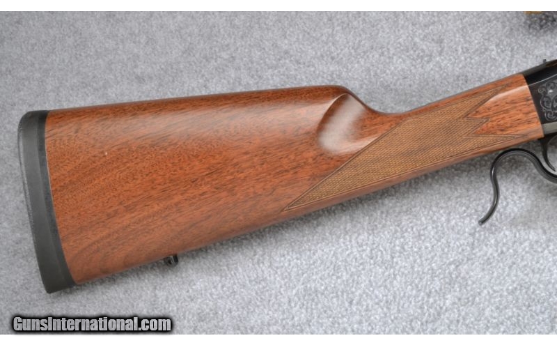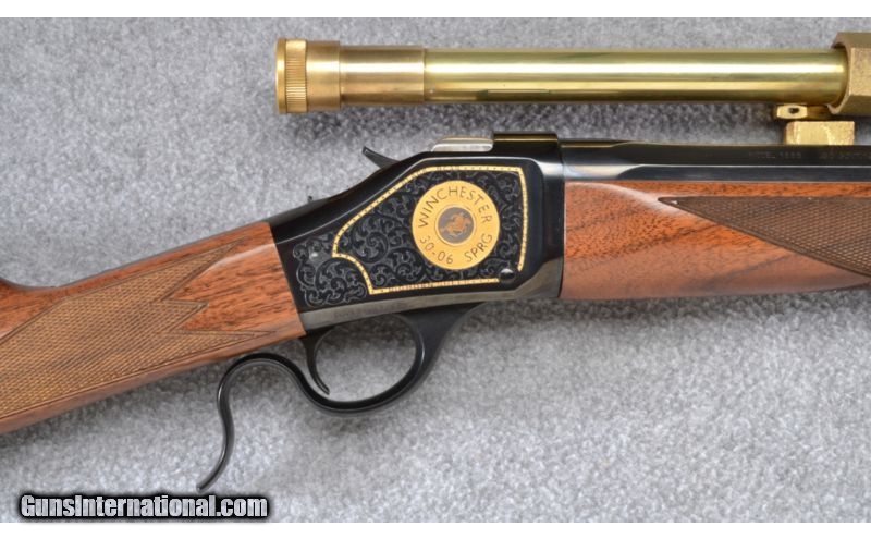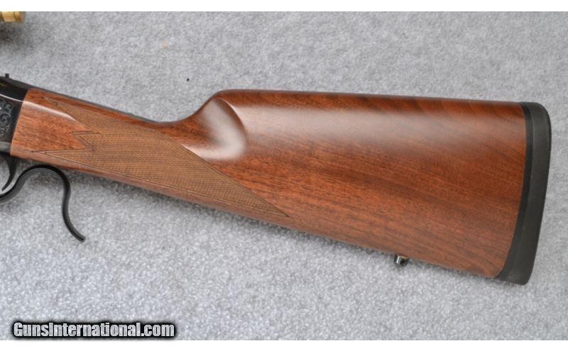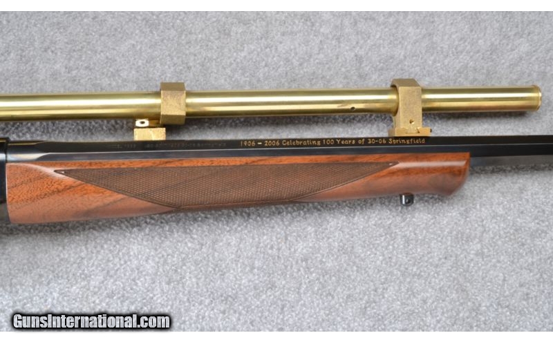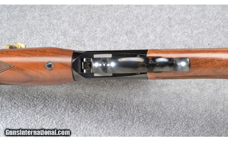 Description: Small ding on muzzle not affecting recessed crown. Otherwise excellent throughout showing little use. Scope was defective and was removed. No box. SOLD Manufacturer: S/N - 00143MRXXH Caliber Info: .30-06 Metal Condition: Excellent Wood Condition: Excellent Bore Condition: Excellent Barrels: 28 in. Octagon Triggers: Factory Stock: Checkered Walnut - Straight Grip Stock Dimensions: 13 3/8 in. LOP Fore End: Checkered Walnut w/Schnabel Tip Butt Pad: Black Rubber Weight: 9 lbs. 6 oz. Sights: None Item Location: Sun Prairie, WI |