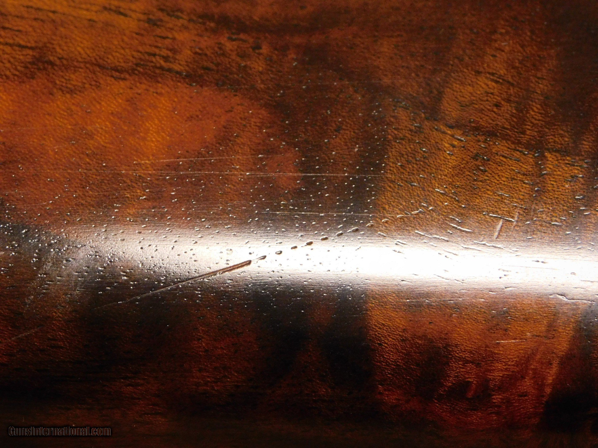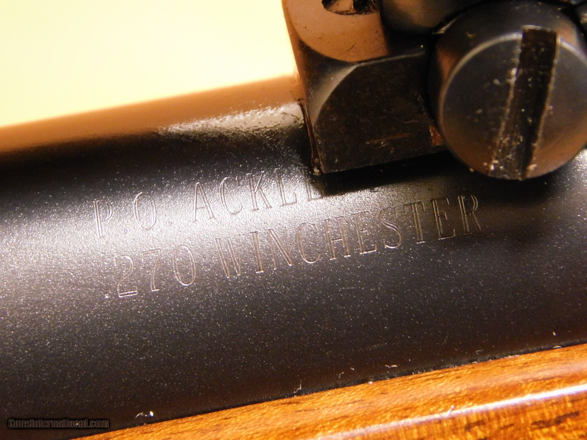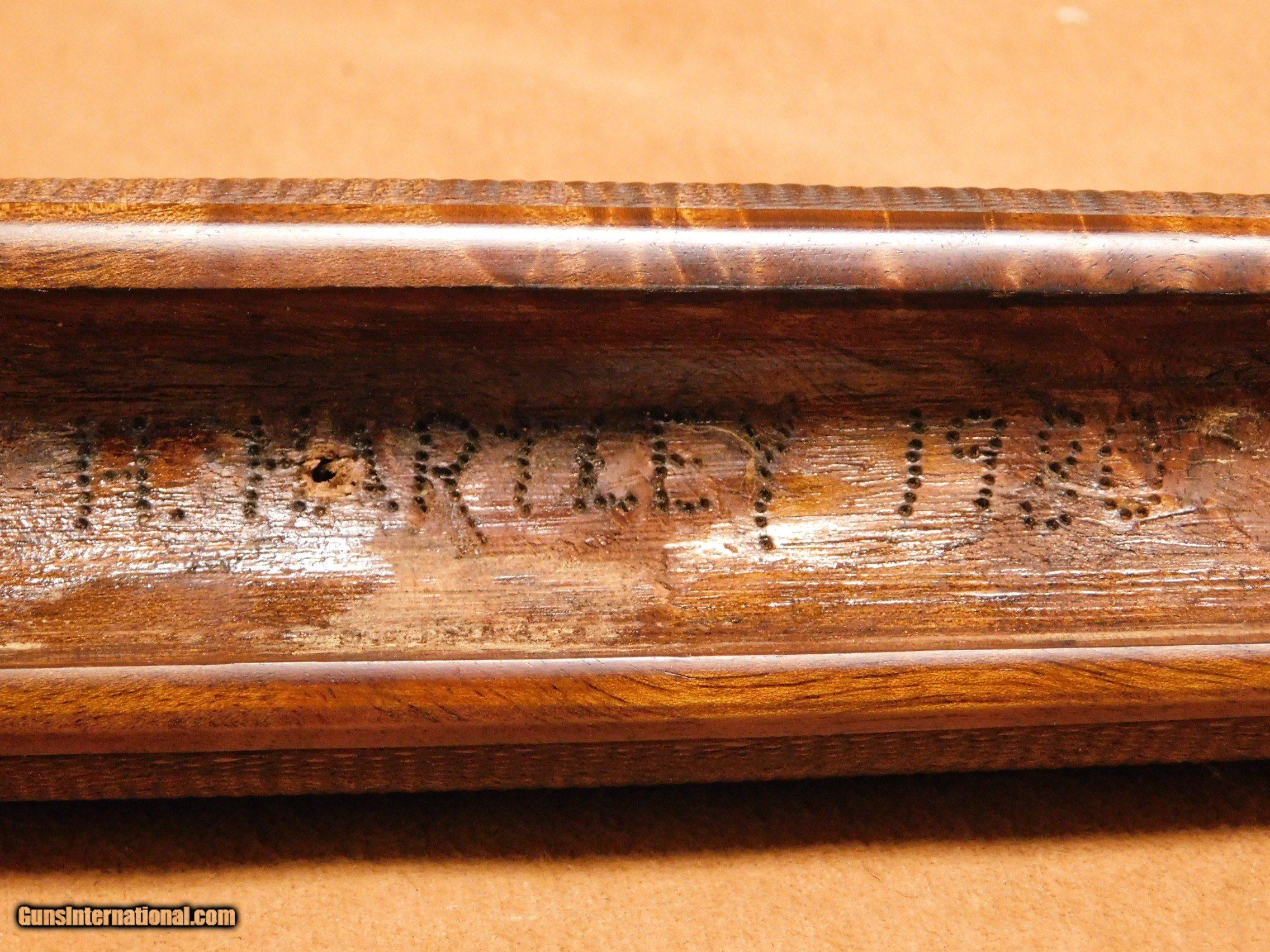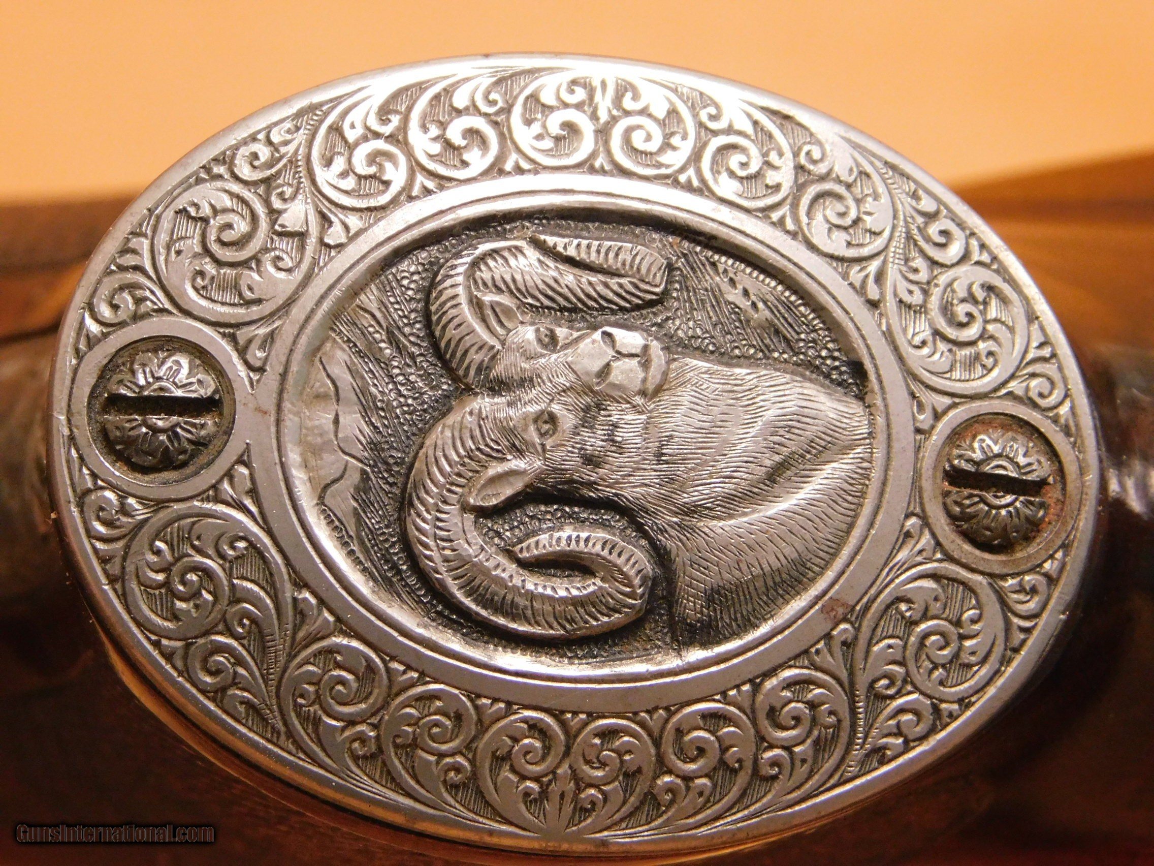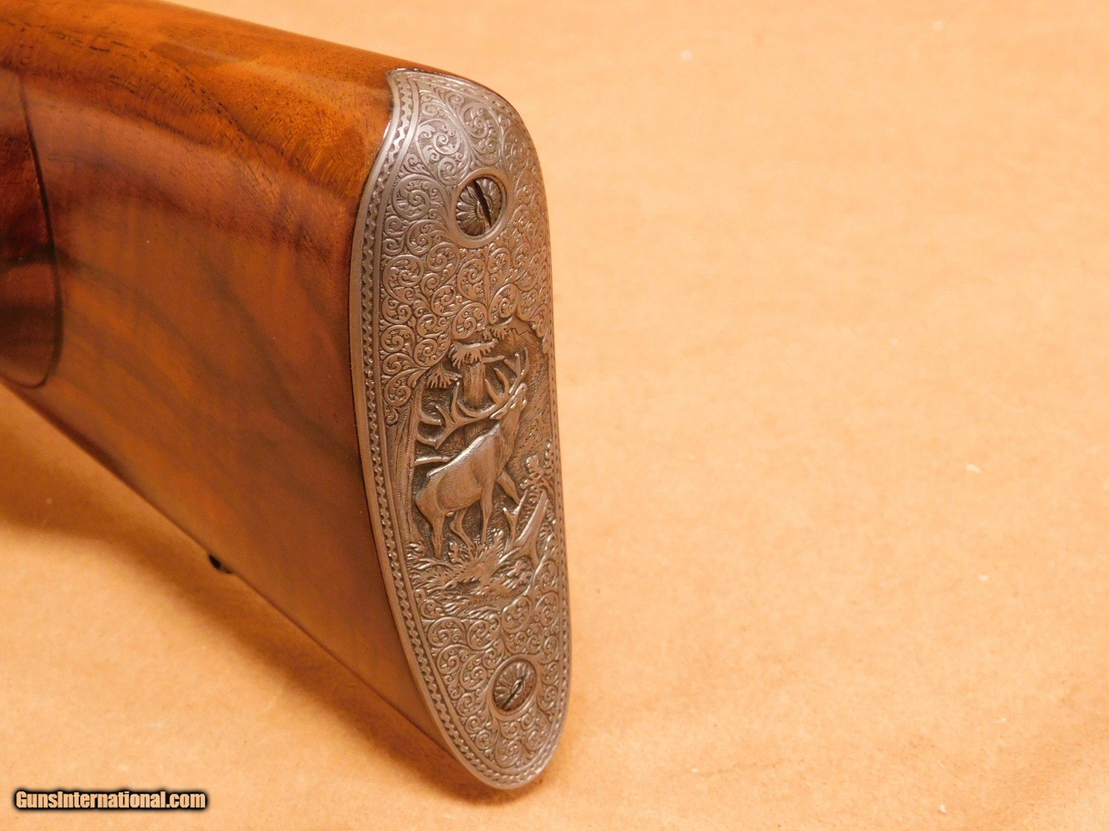 Description: This is a spectacular Winchester High Wall 1885 in .270 Winchester with a 24-inch, medium-weight barrel (with no sights). It was customized by PO Ackley and Hal Hartley and engraved by renowned Austrian engraver Hans Obiltschnig. The left side of the chamber area is signed with PO Ackley's name and the caliber of the rifle: .270 Winchester. The rifle also features a single set trigger, and a vintage Weaver V-9 II scope mounted atop Leupold bases. The rifle is set in spectacular European walnut with diamond point checkering and a matching forearm that has a Schnabel tip. The pistol grip stock features a shadowline/pancake cheekpiece and a sculpted and engraved buttplate. The left side of the receiver has a large raised vignette of four elk with a very finely detailed background. The right side is exquisitely engraved with a large raised vignette of three Dall sheep in an equally elaborate mountain scene. The remainder of the receiver has full coverage foliate Arabesque with a very finely detailed background. The grip cap is engraved to match, with the center round vignette of the raised head of a dall sheep. The receiver and buttplate are both signed by Mr. Obiltschnig. This is one of the most spectacular custom rifles. It is in extremely fine condition and appears to be unfired since completion. The barrel and lever retain the bright custom blue. The receiver, butt plate, and grip cap are coin-finished. The wood is sound and retains virtually all of its custom finish, with several small pressure dings. The mechanics are crisp and the bore is bright and shiny. The optics are fine. All items are also available for sale in our brick & mortar store and are subject to prior sale. Think long, think wrong. Payment On firearms, we typically only accept credit cards or money orders/cashier's checks.
