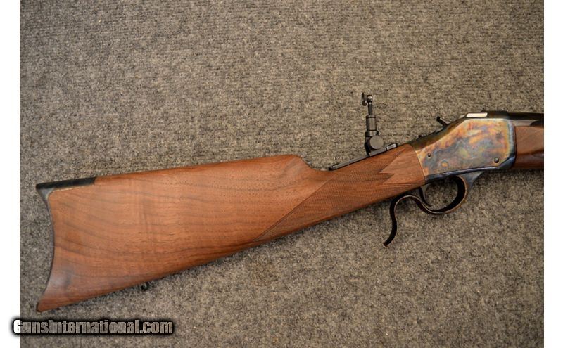 Description: This 1885 High Wall reproduction is in fantastic condition. The casehardened receiver and butt plate indicate that this might be a "High Grade" version. .45-70 Government SOLD Chambers: .45-70 Government Metal Condition: "Excellent, slight wear to the casehardening on the bottom of the lever and on the left side of the receiver Wood Condition: Excellent Bore Condition: Excellent Barrels: 28" Octagon Butt Pad: Case hardened steel crescent Weight: 8 Lbs. 8 Ozs. Sights: "Gold bead front, Buckhorn rear, aperture sight on the tang Item Location: Albuquerque, NM |