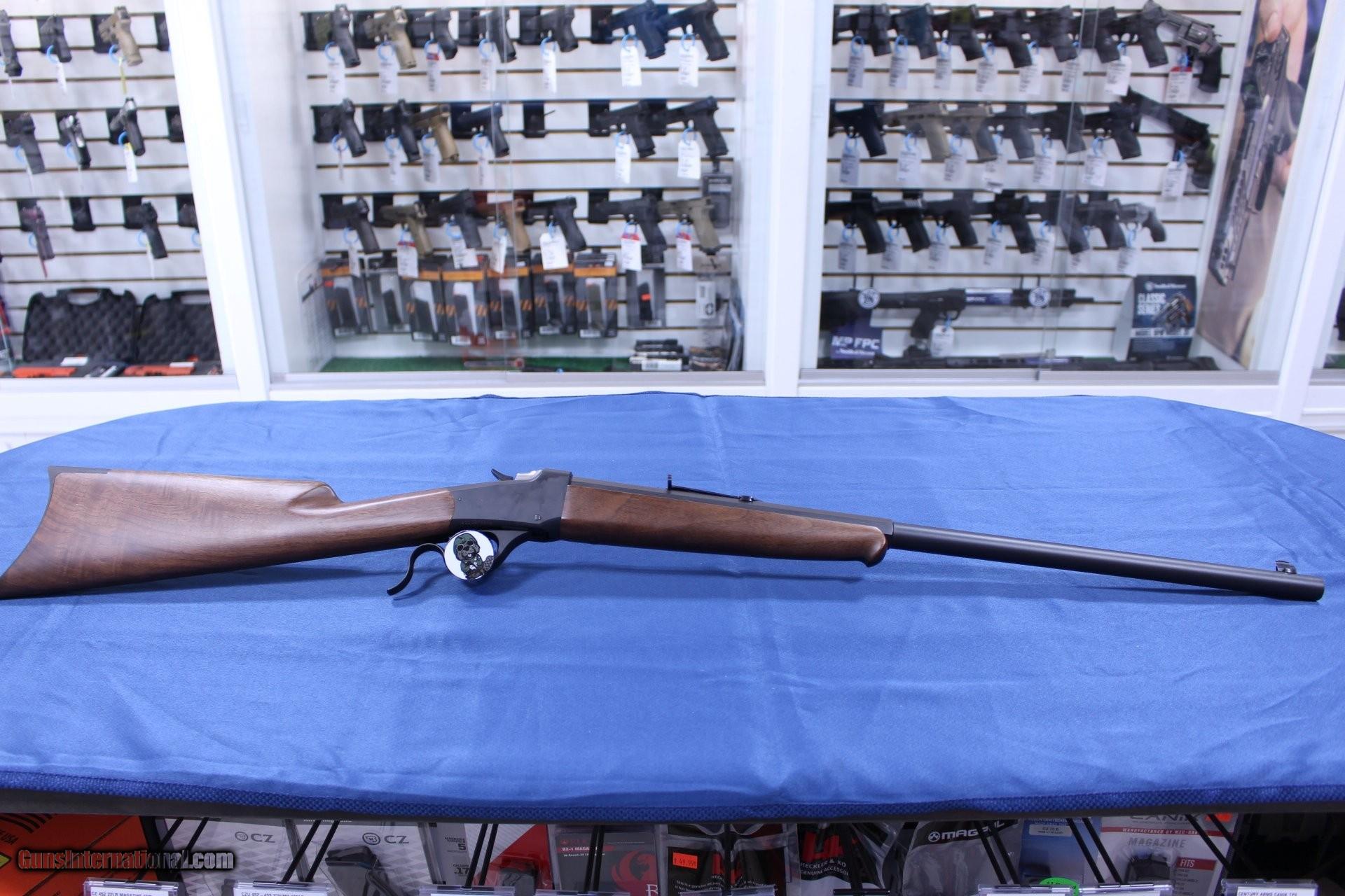 Description: Guns Listing ID: 597773 Unfired, like new in box! The Winchester 1885 falling-block single-shot rifle is one of the most iconic and mechanically elegant firearms of the late 19th century, celebrated for its remarkable strength, precision, and craftsmanship. Designed by John Moses Browning and introduced by Winchester in 1885, the rifle uses a robust falling-block action in which a solid steel breechblock drops vertically to expose the chamber, creating an exceptionally strong lock-up capable of handling everything from small varmint cartridges to powerful big-game and long-range rounds. Its simple, rigid action contributed to outstanding accuracy, making it a favorite among competitive marksmen, hunters, and early long-range shooters. The 1885 was produced in two primary configurations—the lighter “Low Wall" for smaller calibers and the heavier “High Wall" for more powerful cartridges—each offering a distinct profile and purpose. Winchester offered the rifle with a wide range of barrel lengths, weights, and finishes, along with optional set triggers, deluxe wood, and precision sights, allowing shooters to tailor the rifle to their exact needs. Even today, the 1885 is admired by collectors and shooters alike for its blend of historical significance, mechanical purity, and timeless aesthetics, standing as a testament to Browning’s genius and Winchester’s commitment to quality craftsmanship. Manufacturer: WINCHESTER Model: 1885 HUNTER FALLING BLOCK Caliber Info: .22 LR Condition: Used - Non-Certified Barrels: 24.5" BARREL Action: SINGLE SHOT Finish: blued Price: $1,149.99 Contact Seller |