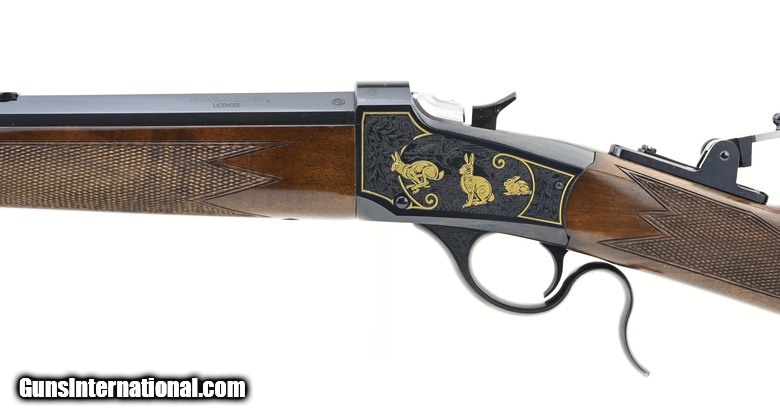 Description: Winchester 1885 Limited Edition High Grade .22 LR caliber rifle. With engraved receiver and gold inlays. Stock is nicely figured checkered walnut. Excellent condition with tang peep sight.