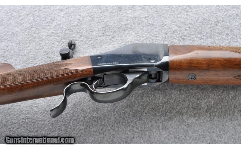 Description: Made in 2005 at the Miroku of Japan plant, this Winchester Model of 1885 Limited Series would make a fine gun for your Winchester collection or for hunting medium-sized game. .38-55 Winchester SOLD Chambers: .38-55 Winchester in a falling block single shot rifle Metal Condition: Very good with a few light scratches Wood Condition: "Very good Premium wood, showing a few small marks on the left side of the fore end, and a couple of creases on the buttstock. Bore Condition: Sharp & bright rifling Barrels: 28" Tapered Octagonal Triggers: Single Stock Dimensions: 13 1/2" LOP Fore End: Checkered walnut with Schnabel tip and sling stud Butt Pad: Metal crescent Weight: 8 lbs 12 oz. Sights: "Dovetailed brass beaded blade front, Tang mounted folding peep rear adjustable for windage and elevation. Item Location: Grand Junction, CO |