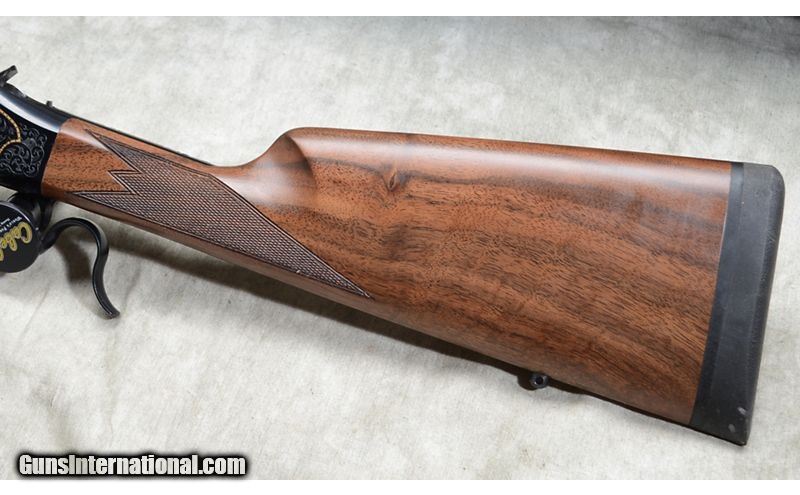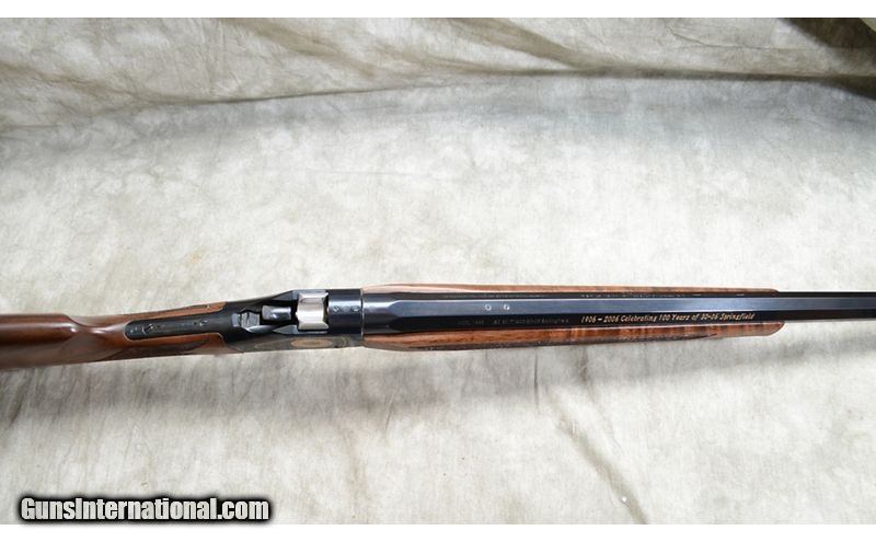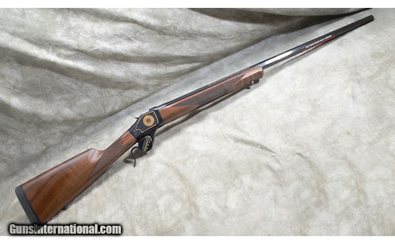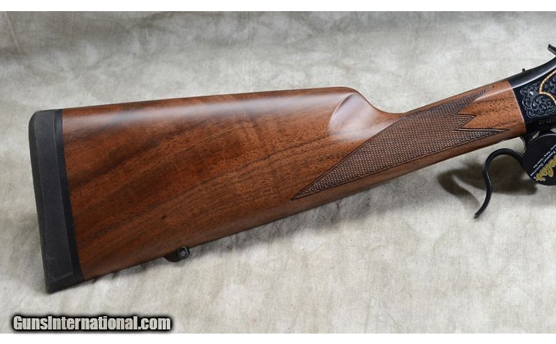 Description: This Commemorative Model 1885 honors the 100th year of the .30-06 Springfield. It features very nice wood with some figure, a forearm with a Schnabel, and a 28-inch octagonal barrel. It is unfired. .30-06 Springfield SOLD Chambers: Single Shot. Metal Condition: Like new in the box. Wood Condition: Like new in the box. Bore Condition: Like new in the box. Barrels: 28-inch octagonal. Triggers: Factory trigger Stock Dimensions: 13-1/2 inch LOP. Fore End: Matching walnut with Schnabel. Butt Pad: Soft rubber pad. Weight: 8 lb - 9 oz Sights: Drilled and tapped for scope. Item Location: Rogers |