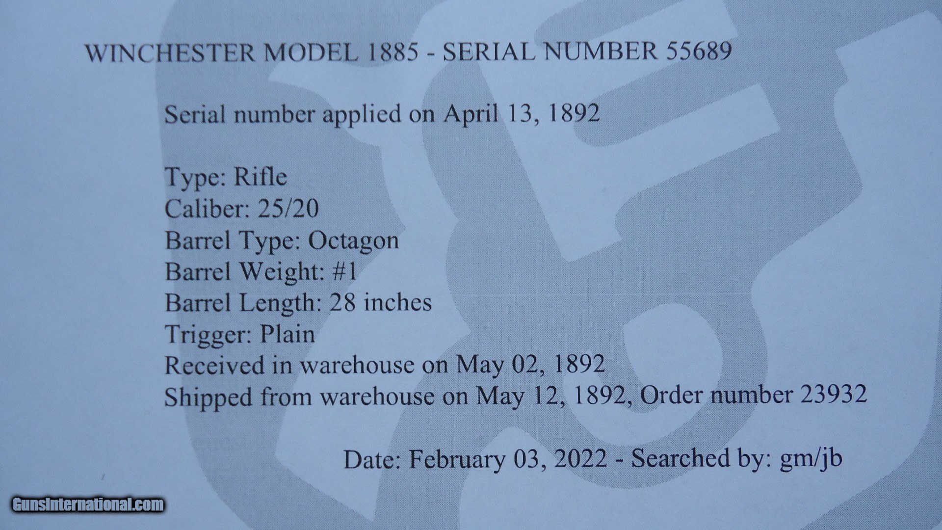 Description: Early gun that has the 25 WCF marking but it is actually the 25-20 Single Shot. 28 inch #1 octagon barrel. Original sights. Fine bore. Wood is very good with most varnish still intact. Barrel retains about 80% blue starting to tone somewhat. Receiver is case hardened and retains about 50% of the case color. Leroy Merz Antique Firearms specializes in antique and vintage Winchesters and other fine American firearms. Since 1965 Mr. Merz has taken part in the world of firearms and has been a contributor to many well known reference books. We have hundreds of additional guns in every price range at our home online. Search for Merz Antiques in google. SOLD Antique: Yes Rifle Caliber: .25-20 Winchester |