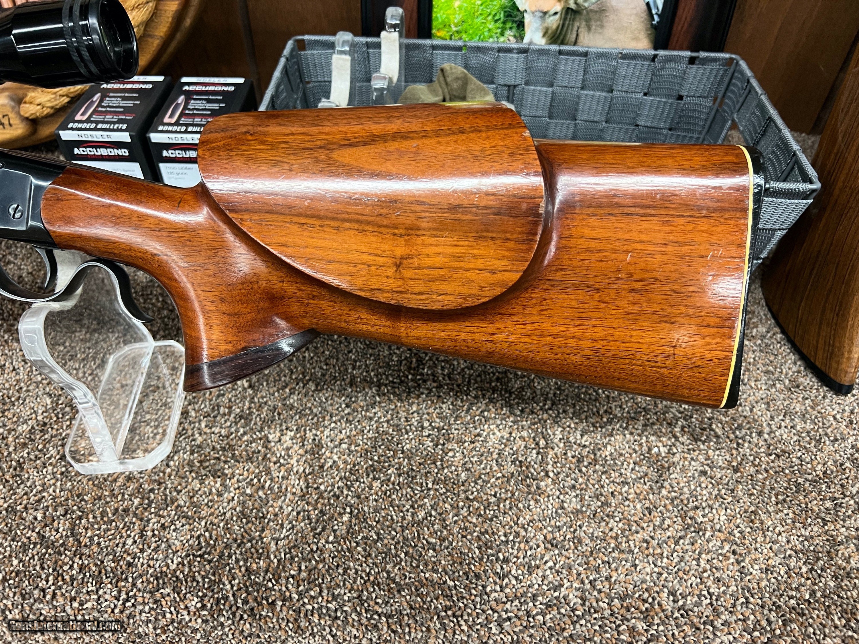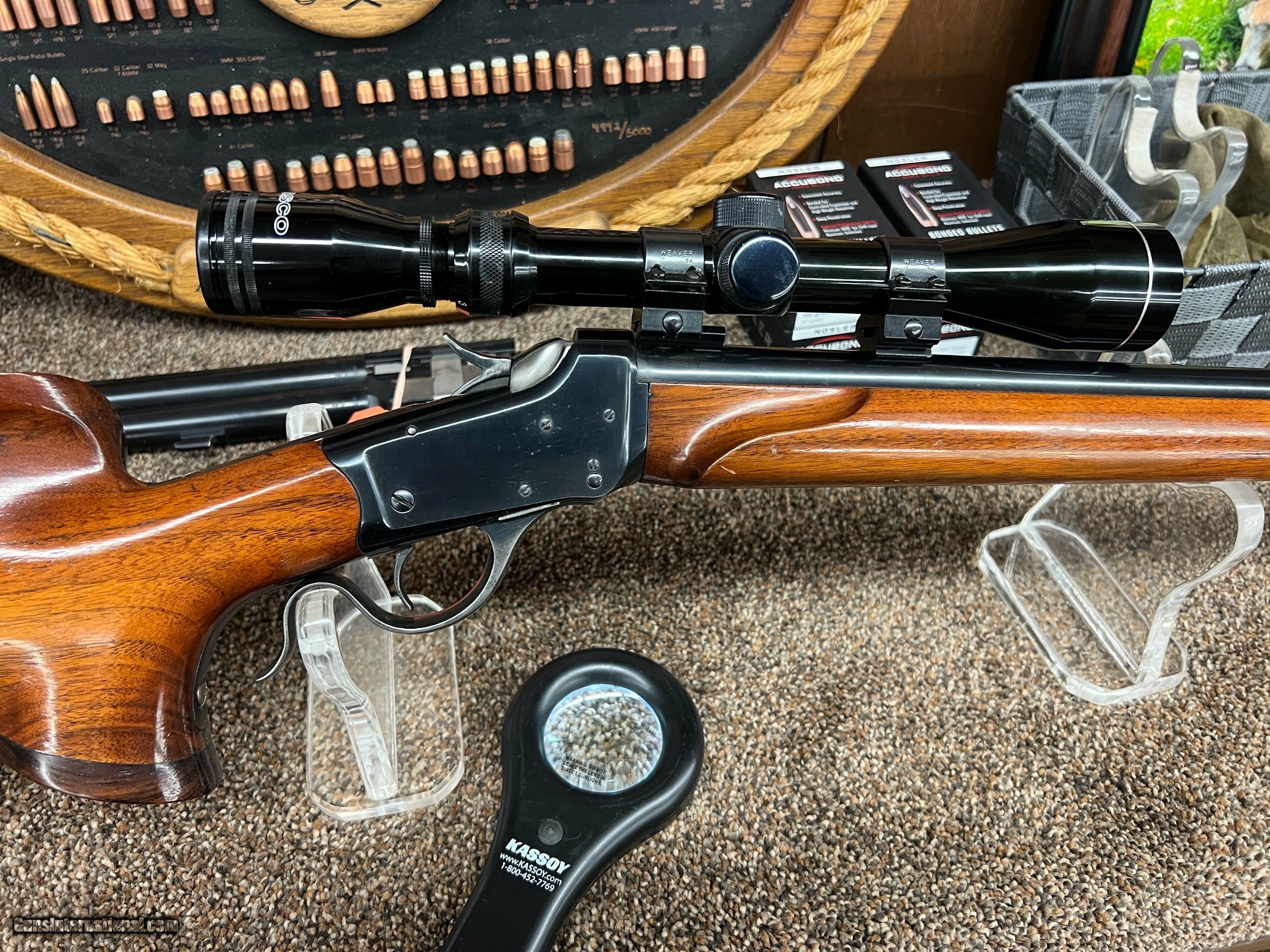 Description: Here's a used Winchester 1885 low wall 22 magnum, exc bore, 28" barrel, with Tasco 3-9 scope, custom wood. 60.00 shipping, 2.99% credit card fee. PA residents add 6% sales tax. Please call the shop at 717-776-6331 for payment. Tuesday and Thursday 10-5, Saturday 9-1. SOLD Rifle Caliber: .22 WMR (.22 Magnum) |