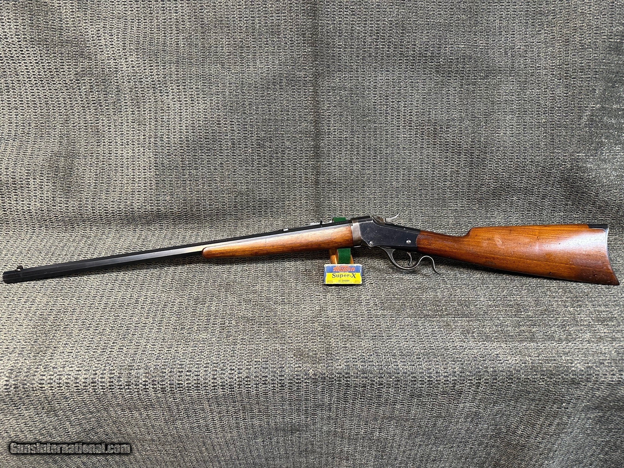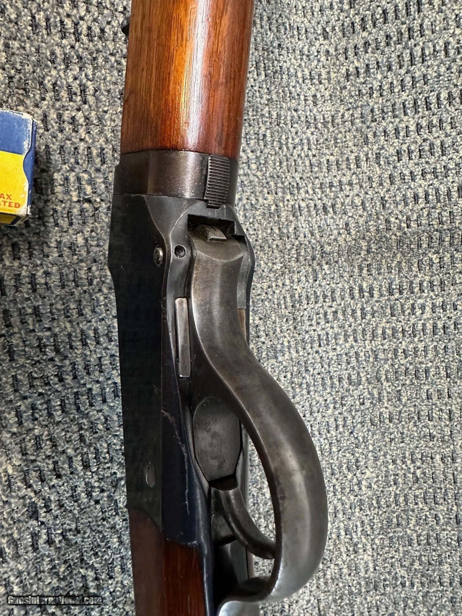 Description: *RARE* Low Wall TAKEDOWN in .22 Short. Circa 1915. *GREAT CONDITION* Appears Original with possible exception of a #1 stamped on top flat in front of sight. 24" #1 Octagon bbl. Bore is quite good with strong rifling and no visible pitting or corrosion. Blueing is very good overall. Barrel 90%. Receiver 80%+. Wood shows some usage marks, dents and impressions, but is generally pretty good. No cracks anywhere. i would rate wood at 80%+. Really an awesome little classic rifle. Shipping & Insurance $75.00 to your FFL or C&R in lower 47. NO CA Sales. SOLD |