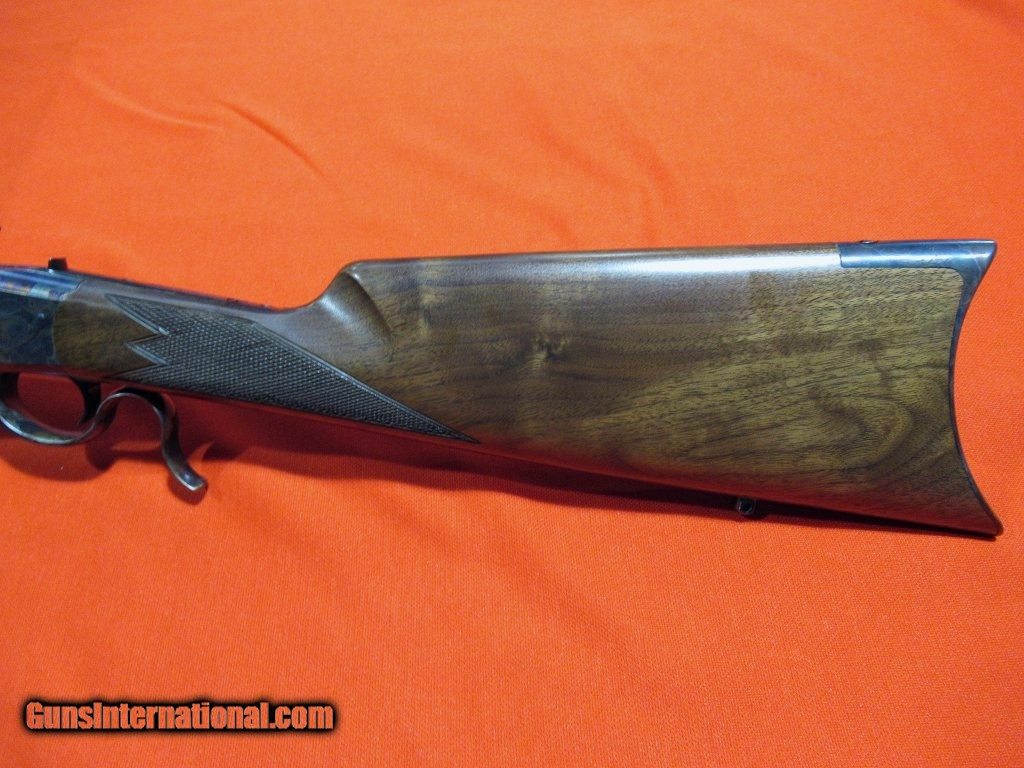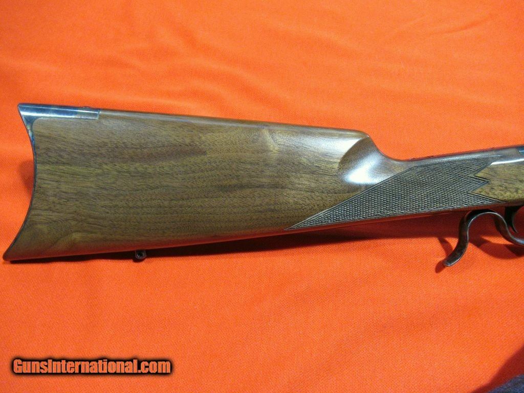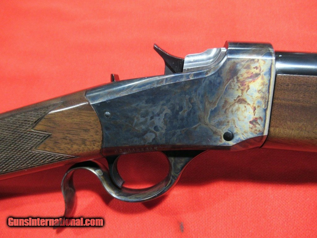 Description: Winchester 1885 Traditional Hunter Low Wall. AS NEW AND UNFIRED BY THE ORIGINAL OWNER. Case Colored receiver with octagon barrel. Correct factory box. SOLD |