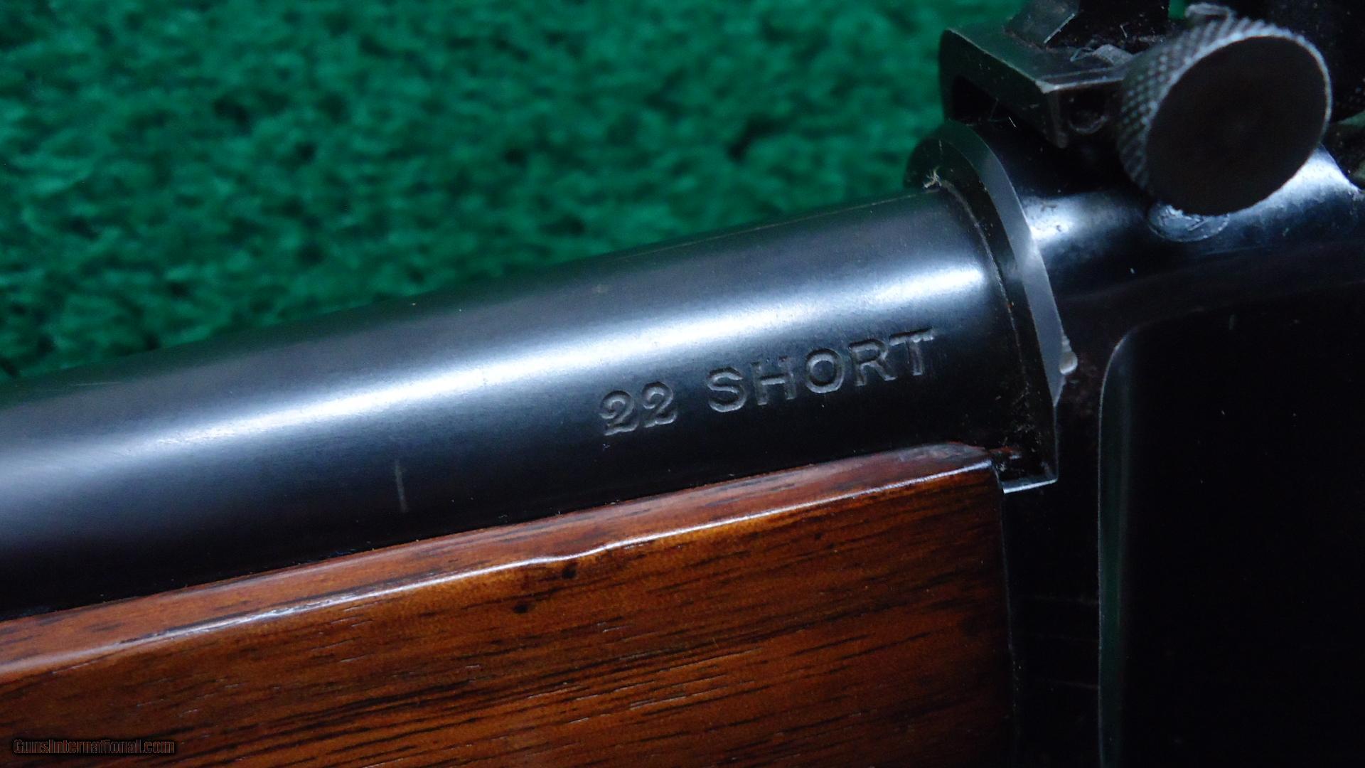 Description: 28 inch barrel chambered in 22 Short. Bright shiny bore. Most all original blue remains on all metal surfaces. Butt plate is a brow/gray patina. A wear spot on the barrel where it was most likely carried. Wood is in good condition with an added coat of finish applied. Sling swivels. Standard front and correct Lyman rear sights. "U.S." and Flaming Bomb markings. These were designed to be a training rifle with the same length and weight as a service rifle. Good looking Winchester Lo-Wall that would be a lot of fun to shoot! Leroy Merz Antique Firearms specializes in antique and vintage Winchesters and other fine American firearms. Since 1965 Mr. Merz has taken part in the world of firearms and has been a contributor to many well known reference books. Just recently we mailed the 127th edition of our privately-published catalog. We have hundreds of additional guns in every price range at our home online. Search for Merz Antiques in google. SOLD Curio/Relic: Yes |