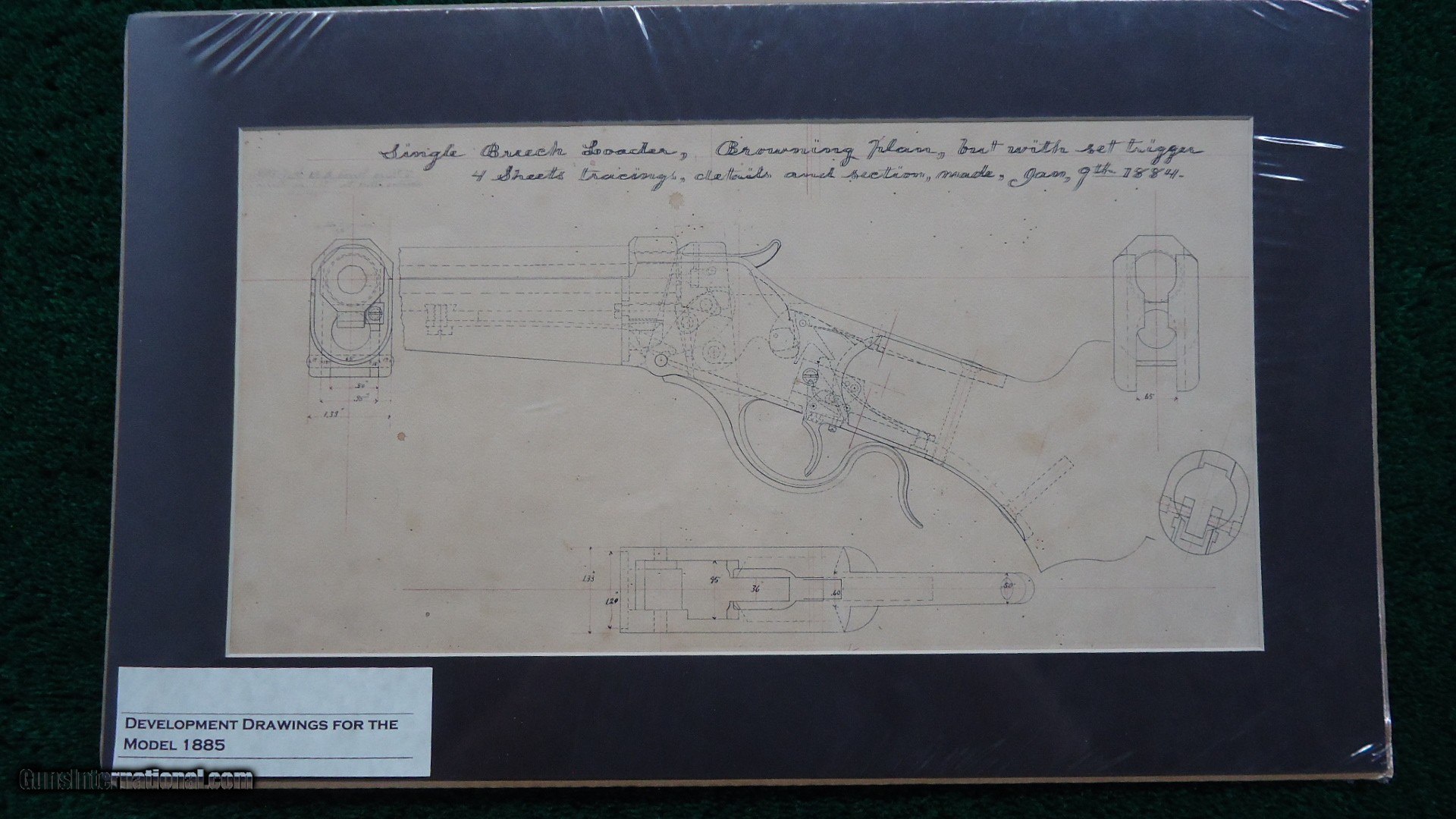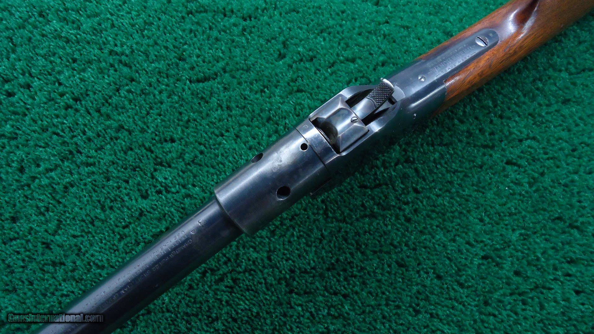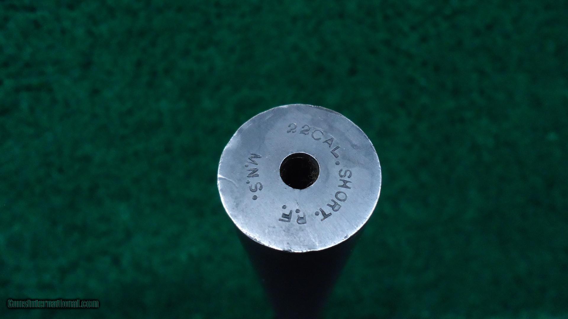 Description: I believe this to be a chamber pressure test gun. It is very similar to several others that I know of. One is a 35 Winchester self loading cartridge and another is a 401 self loading cartridge. These were made for Winchester semi-automatic rifles. This one is very similar to those two and just a few serial numbers away from them and in the same condition. I am familiar with those but have never seen this one before. It is interesting that it is in 22 short. There shouldn't be any chamber pressures to worry about but I imagine that to be used in a semi-auto rifle it has to be specific. That is my theory on it. Gun is in fine condition with virtually all the blue. Stock has most original varnish with just a few minor dings. Good case colors on the hammer and lever. It is in the 113k serial range. Round barrel is 24 inches. Muzzle end says "22 Cal Short Rimfire" and nickel steel barrel. Probably a #4 barrel or close to that. On top there is no Winchester legend but it says"CHAMBER FOR 22 SHORT. DIA OF BORE .291" DIAM. OF RIFLING .224"/3 [triangle] TWIST 1 IN 20" LENGTH OF BARREL 24" FIT RECEIVER NO 1./USE YOKE NO 1. DIAM OF PISTON HOLE .146" NICKEL STEEL. 1912.". There is 2 holes on the side of the barrel near the receiver and a small hole in back for what I assume is for checking chamber pressure. It was made without an extractor. Gun comes complete with several original factory drawings for demonstration purposes. Also some magazines showing a couple other similar guns and some information on these types of guns. A very interesting gun. Would be another great addition to any Winchester Collection. Leroy Merz Antique Firearms specializes in antique and vintage Winchesters and other fine American firearms. Since 1965 Mr. Merz has taken part in the world of firearms and has been a contributor to many well known reference books. We have hundreds of additional guns in every price range at our home online. Search for Merz Antiques in google. SOLD Curio/Relic: Yes |