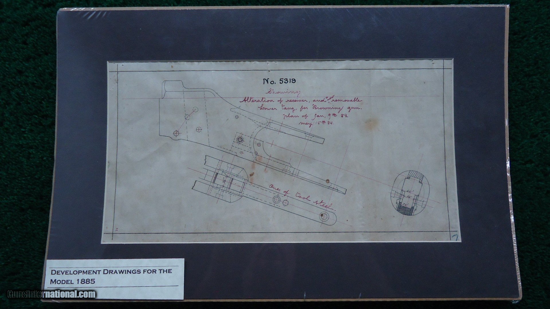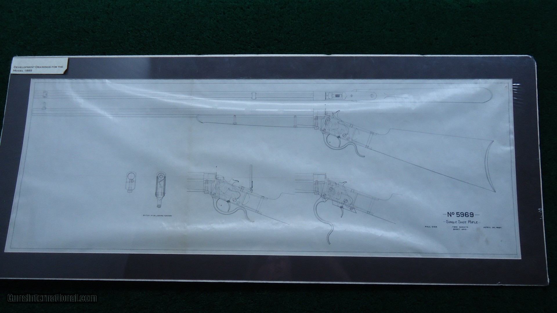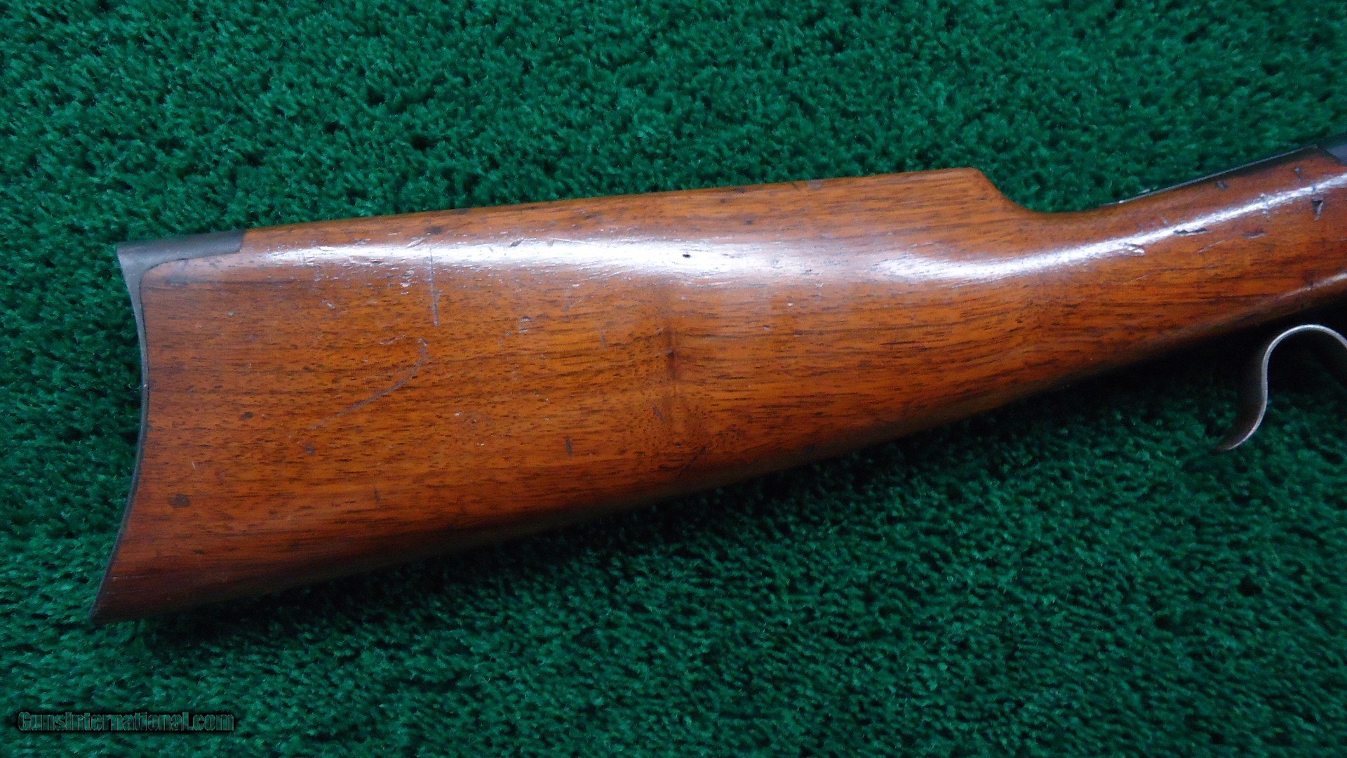 Description: I believe this to be a chamber pressure test gun. It is very similar to several others that I know of. One is a 35 Winchester self loading cartridge and another is a 401 self loading cartridge. These were made for Winchester semi-automatic rifles. This one is very similar to those two and just a few serial numbers away from them and in the same condition. I am familiar with those but have never seen this one before. It is interesting that it is in 22 short. There shouldn't be any chamber pressures to worry about but I imagine that to be used in a semi-auto rifle it has to be specific. That is my theory on it. Gun is in fine condition with virtually all the blue. Stock has most original varnish with just a few minor dings. Good case colors on the hammer and lever. It is in the 113k serial range. Round barrel is 24 inches. Muzzle end says "22 Cal Short Rimfire" and nickel steel barrel. Probably a #4 barrel or close to that. On top there is no Winchester legend but it says"CHAMBER FOR 22 SHORT. DIA OF BORE .291" DIAM. OF RIFLING .224"/3 [triangle] TWIST 1 IN 20" LENGTH OF BARREL 24" FIT RECEIVER NO 1./USE YOKE NO 1. DIAM OF PISTON HOLE .146" NICKEL STEEL. 1912.". There is 2 holes on the side of the barrel near the receiver and a small hole in back for what I assume is for checking chamber pressure. It was made without an extractor. Gun comes complete with several original factory drawings for demonstration purposes. Also some magazines showing a couple other similar guns and some information on these types of guns. A very interesting gun. Would be another great addition to any Winchester Collection. Leroy Merz Antique Firearms specializes in antique and vintage Winchesters and other fine American firearms. Since 1965 Mr. Merz has taken part in the world of firearms and has been a contributor to many well known reference books. We have hundreds of additional guns in every price range at our home online. Search for Merz Antiques in google. SOLD Curio/Relic: Yes |