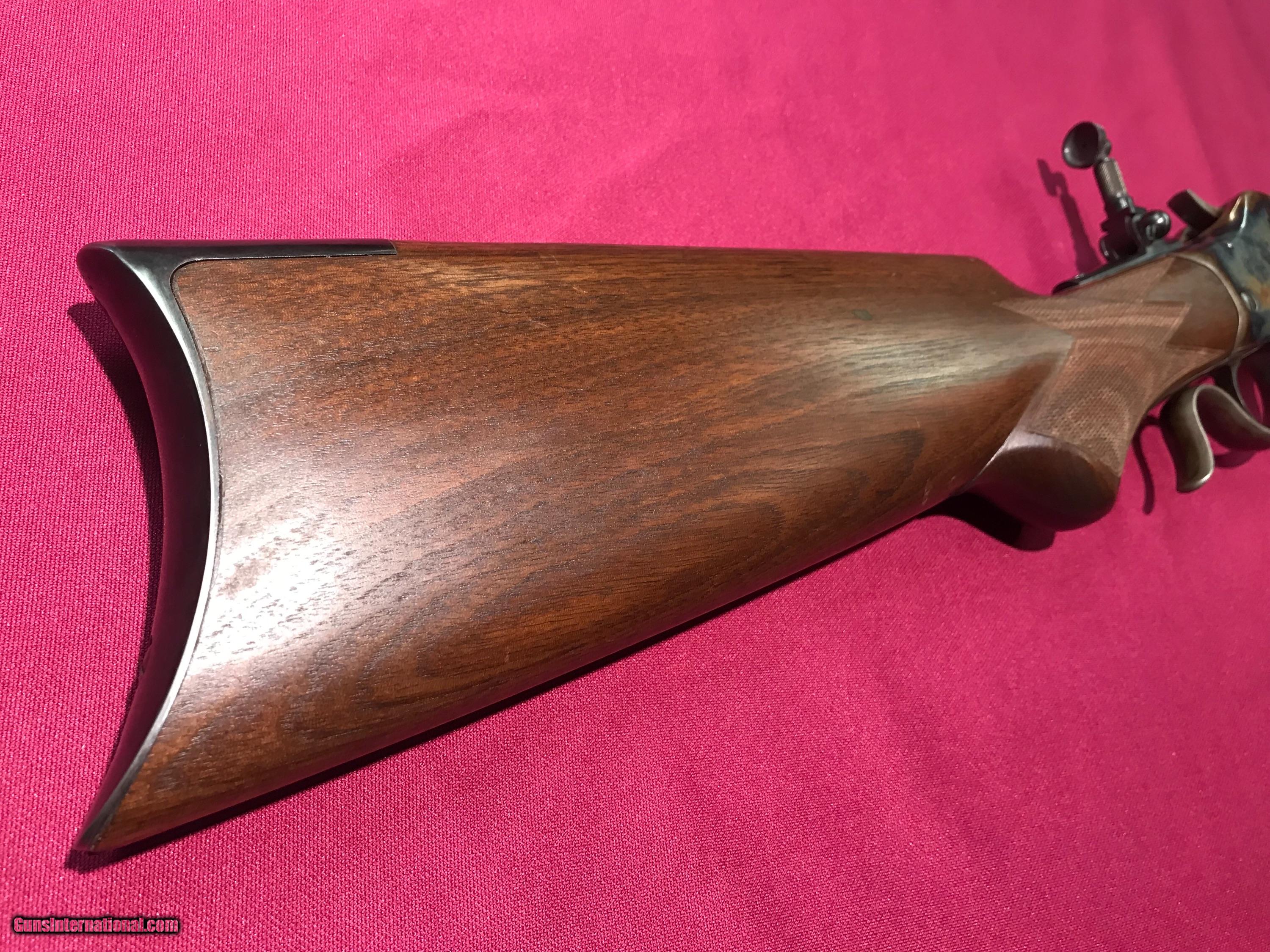 Description: This Winchester Hi-Wall in 32-40 cal has a 32” #2 barrel , This green mountain barrel has a very shiny bore,and shoots very accurate.This beautiful special sporting rifle has a really nice original walnut 2XX tang marked stock,nicely checkard with nice tang sight in rear ,please look at all pictures,questions call Richard at 406-407-0698 SOLD Antique: Yes Manufacturer: Winchester Model: 1885 Hi-Wall Serial Number: 22xxx Caliber Info: 32-40 |
