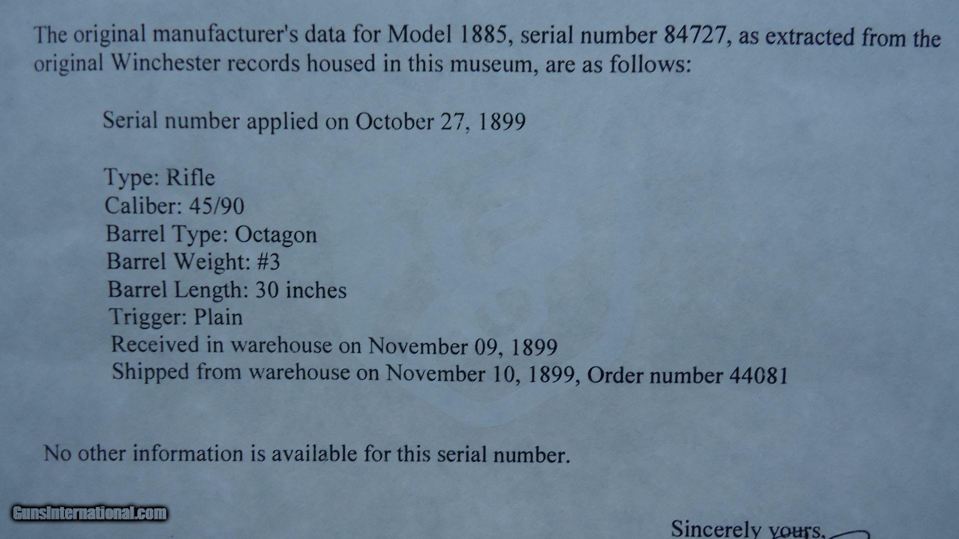 Description: 30 inch number 3 octagon barrel chambered in the desirable 45-90 WCF. Blade front sight with a flat top sporting rear sight and an adjustable Lyman tang sight. Excellent bore. Wood is in very fine condition with a light coat of linseed oil added and a rifle style buttplate. Barrel and receiver retain 98% bright blue. Vivid case colors on the hammer and lever. A very fine little gun. Less than 950 were made in this caliber. Original and complete with a Factory Letter of Authenticity. Leroy Merz Antique Firearms specializes in antique and vintage Winchesters and other fine American firearms. Since 1965 Mr. Merz has taken part in the world of firearms and has been a contributor to many well known reference books. Just recently we mailed the 127th edition of our privately-published catalog. We have hundreds of additional guns in every price range at our home online. Search for Merz Antiques in google. SOLD Curio/Relic: Yes |