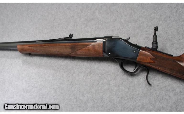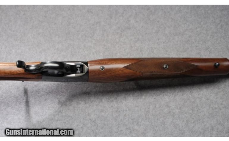 Description: SOLD Manufacturer: 2009 Caliber Info: .45-70 Government Metal Condition: Appears as new Wood Condition: Appears as new Bore Condition: Bright bore with strong rifling Barrels: 28" Octagonal Stock: Cut-checkered walnut Stock Dimensions: LOP: 13-1/2 Fore End: Cut-checkered walnut Butt Pad: Curved, blued steel buttplate Weight: 9 lbs. Sights: Beaded blade front, semi-buckhorn rear and tang sight Extras: None. Item Location: East Hartford, CT |