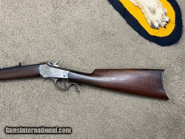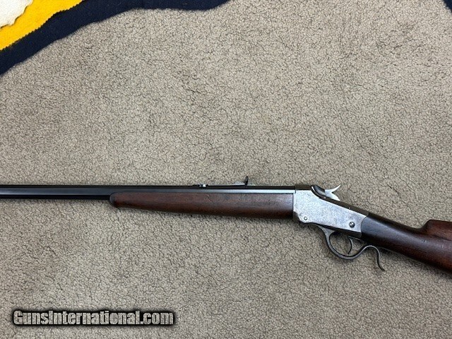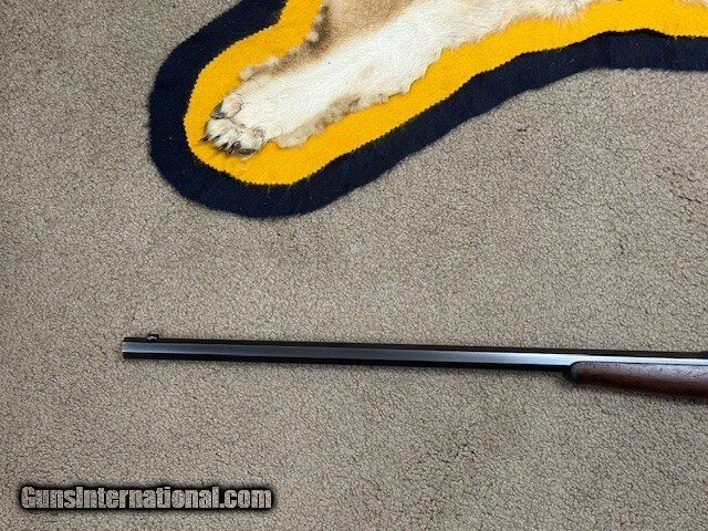It has a No. 1, 26” octagon barrel, correct factory rear site, crescent steel butt plate. Rifle is in excellent condition, both wood and blue for its age, no case hardening remains on the receiver, bore is not perfect but in very nice shootable condition.