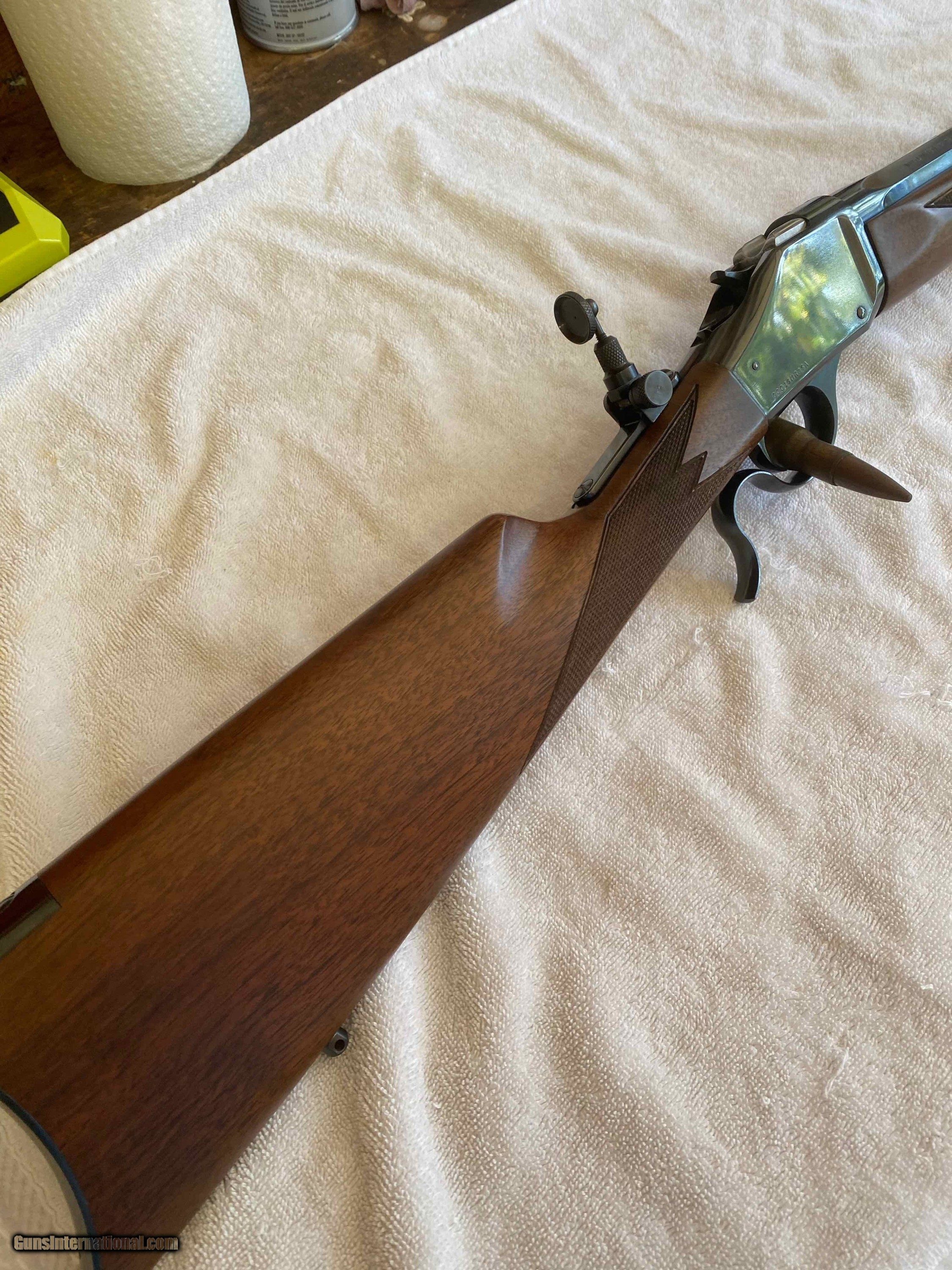 Description: Winchester 1885 Traditional Hunter 45-70 28" barrel. Rifle shows as new, comes with original box and paperwork, globe front sight with insert assortment and tang rear sight with two apertures, and comes with the blade and buckhorn sights. This gun is a Davidson Limited Series. Shipping will be actual shipping plus insurace per your request. Also have reloading dye set, shell holder, 70 pcs Starline brass, 130 Speer 400gr jfp bullets, 96 405gr cast bullets for an aditional 150.00 plus shipping. Thanks for looking. SOLD Rifle Caliber: .45-70 Government Manufacturer: Winchester Model: 1885 Serial Number: 00016MR85A Barrel Length: 28 Bore: Excellent Condition: As New Metal Condition: As new Wood Condition: As New Bore Condition: Excellent Barrel Type: Full Octagon Action: Falling Block High Wall Butt Pad: Half Moon Sights: Tang, Globe, Buckhorn, Blade Manufacture Date: 2003 Item Location: East Central Georgia |
