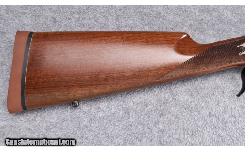 Description: Left side of receiver is drilled and tapped for a receiver sight. Blue and bore remain excellent. Buttstock has been modified form a crescent buttplate with a filler piece added to accomodate the rubber pad. Remainder of wood is excellent. Complete with box. SOLD Manufacturer: S/N 00017MXXXX Caliber Info: .45-90 Metal Condition: Excellent Wood Condition: Very Good Bore Condition: Excellent Barrels: 34" Octagon Triggers: Factory Stock: Checkered Walnut Pistol Grip Stock Dimensions: 14" LOP Fore End: Checkered Walnut Butt Pad: Red Rubber Weight: 8 3/4 LB Sights: Globe Front - Open Notch Rear Item Location: Wheeling, WV |