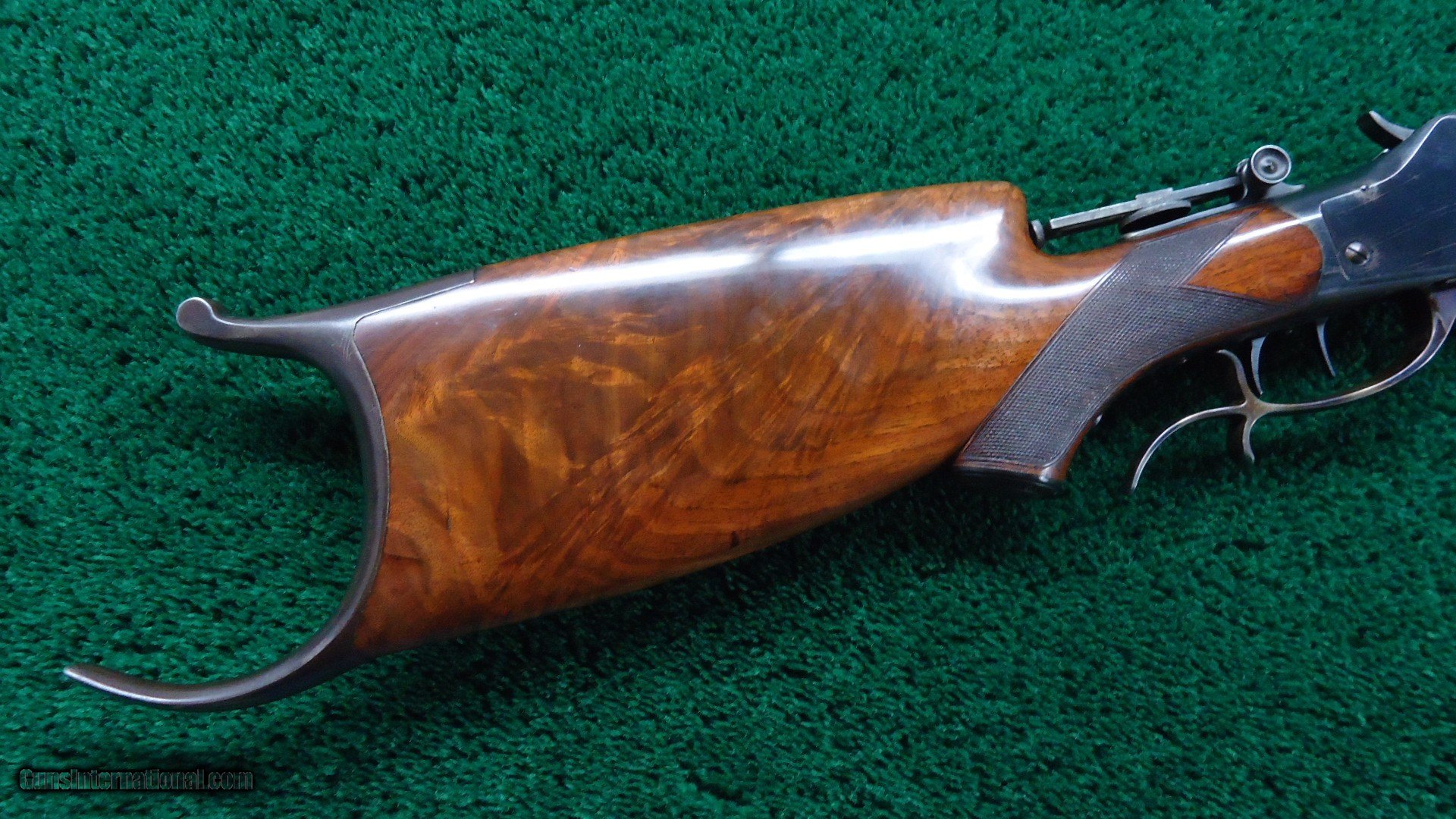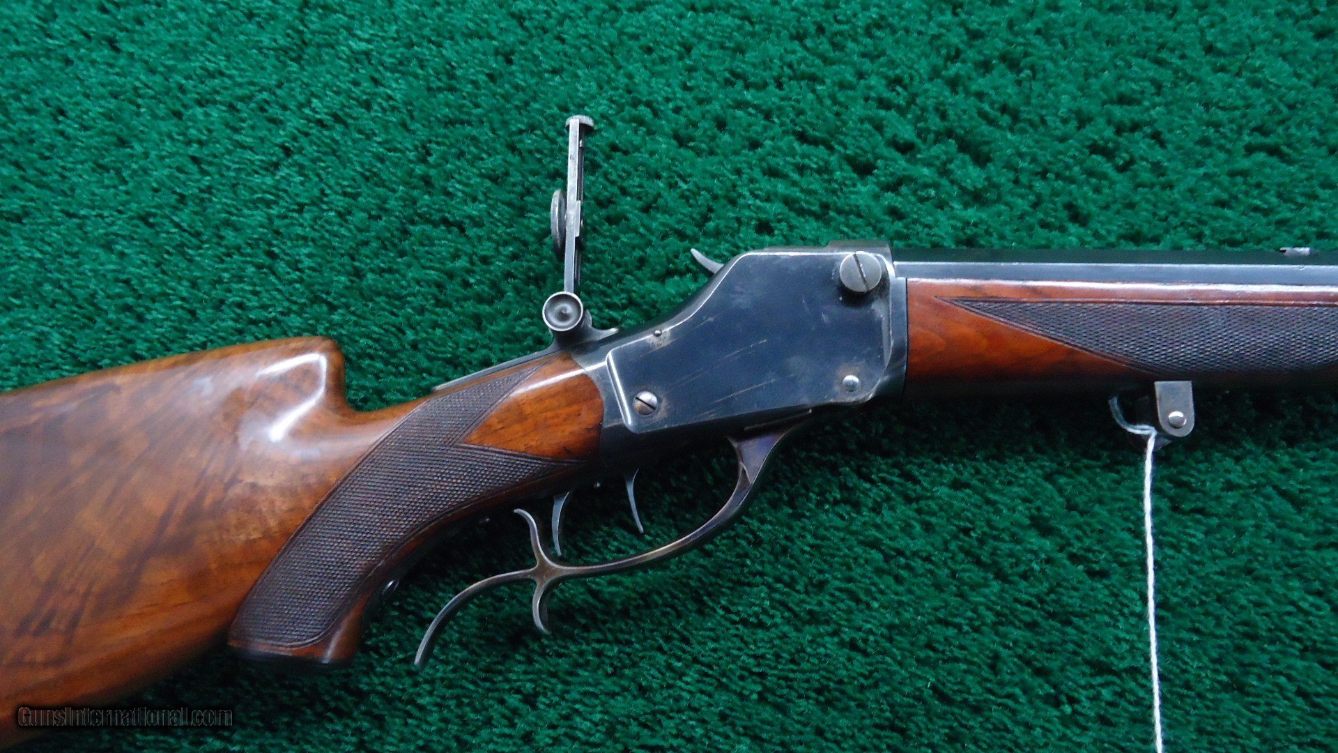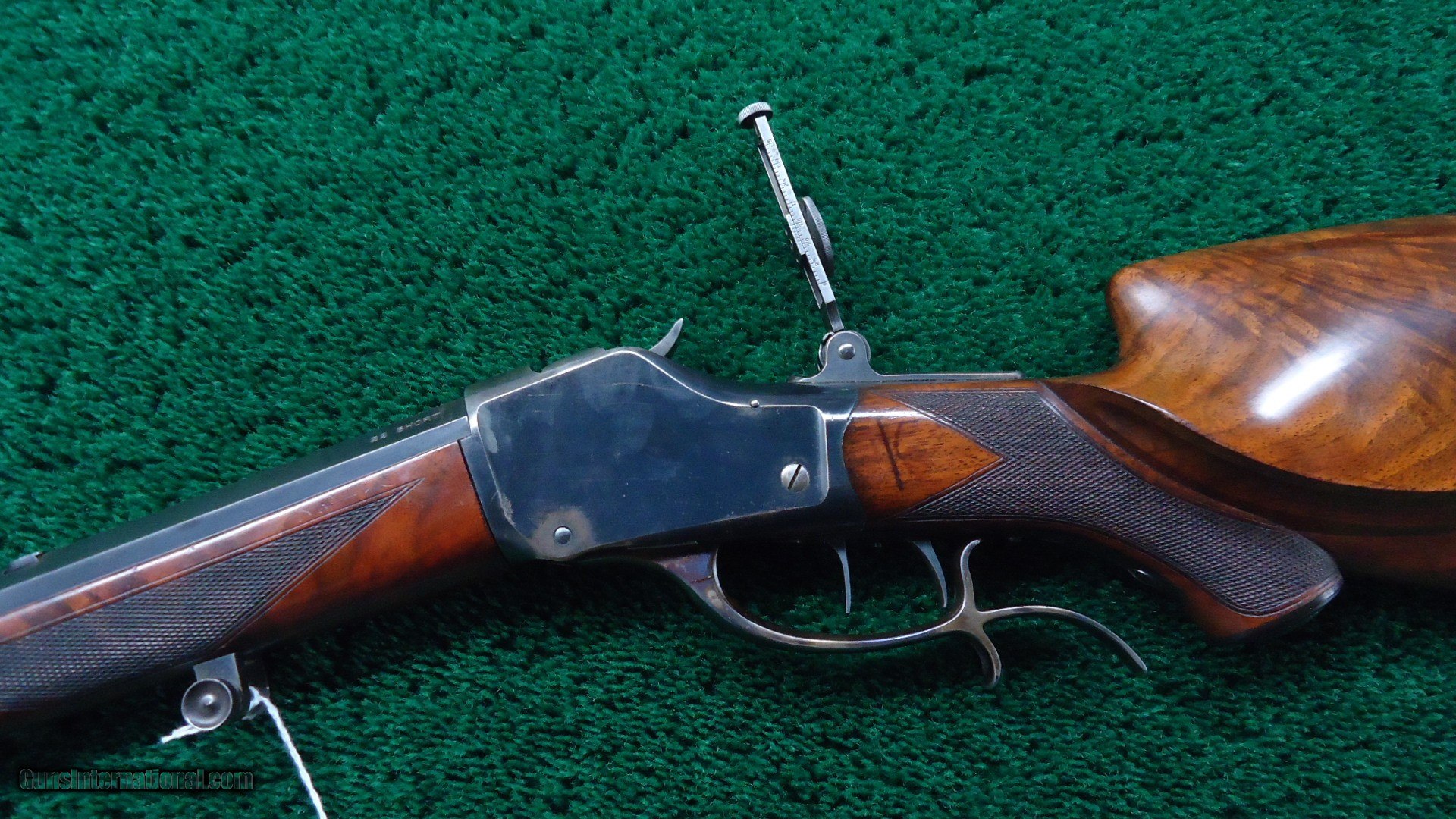 Description: This gun has a #3 full octagon barrel which is 30 inches in length. 22 Short caliber. Barrel has a considerable amount of blue and bright case colors on the hammer and lever. The top of the barrel is also tapped for scope blocks. Features a globe front sight, there is a filler in the rear sight spot, and includes the original folding tang sight. The hardware for a palm rest is present, however there is no palm rest. Checkered deluxe wood is in excellent condition with most of the vanish still present. It also features sharp checkering and a cheek piece. The double set triggers seem to need a little adjustment since they are not working at the moment, but they should be able to adjust them. Overall nice little gun. Leroy Merz Antique Firearms specializes in antique and vintage Winchesters and other fine American firearms. Since 1965 Mr. Merz has taken part in the world of firearms and has been a contributor to many well known reference books. We have hundreds of additional guns in every price range at our home online. Search for Merz Antiques in google. SOLD Curio/Relic: Yes Rifle Caliber: .22 Short |
