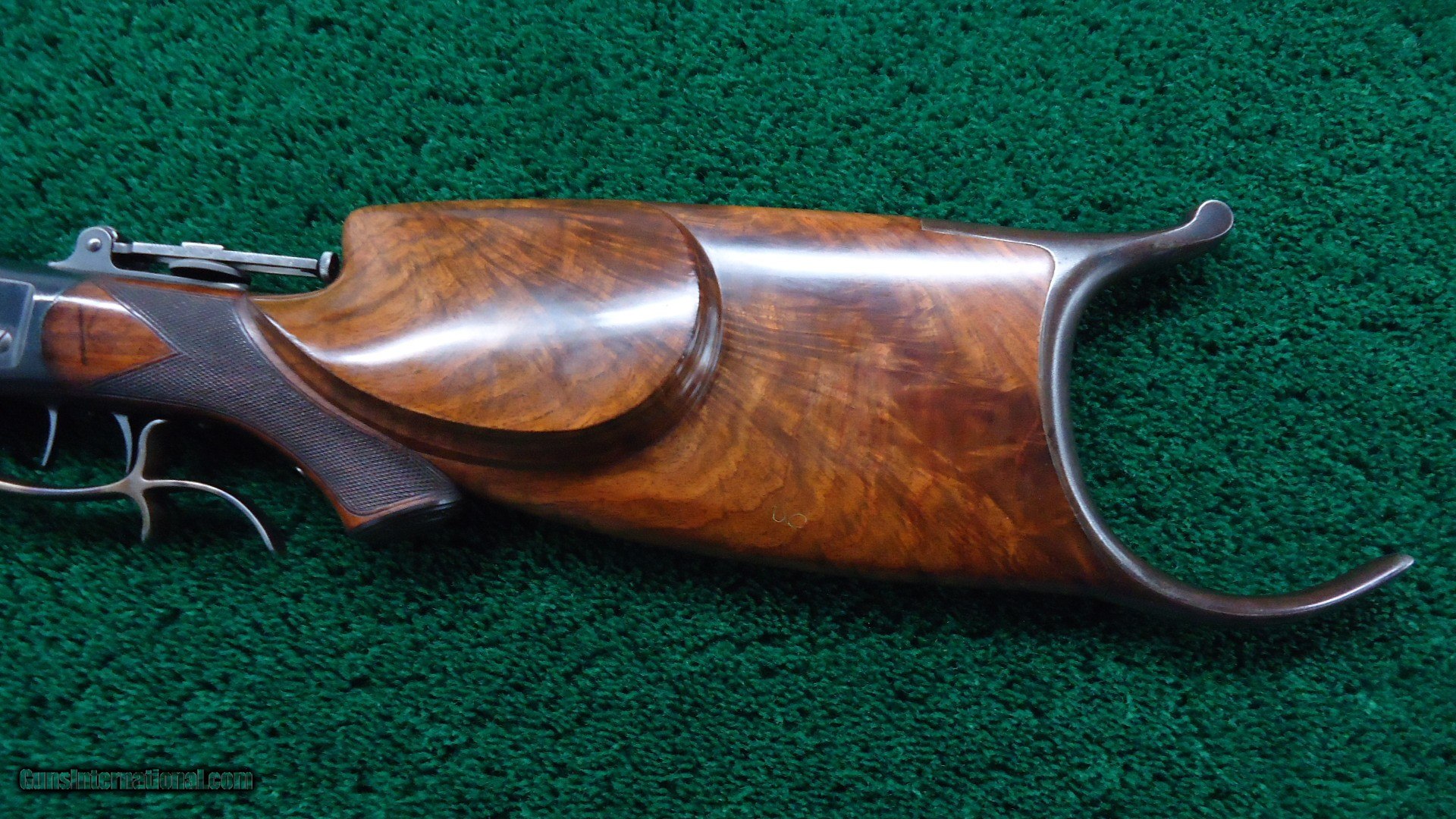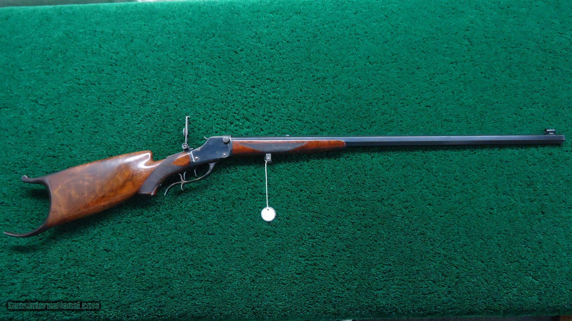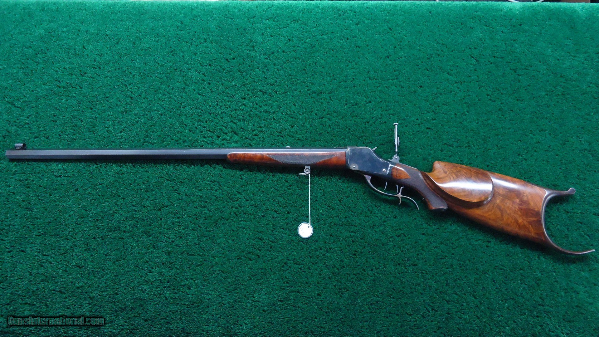 Description: This gun has a #3 full octagon barrel which is 30 inches in length. 22 Short caliber. Barrel has a considerable amount of blue and bright case colors on the hammer and lever. The top of the barrel is also tapped for scope blocks. Features a globe front sight, there is a filler in the rear sight spot, and includes the original folding tang sight. The hardware for a palm rest is present, however there is no palm rest. Checkered deluxe wood is in excellent condition with most of the vanish still present. It also features sharp checkering and a cheek piece. The double set triggers seem to need a little adjustment since they are not working at the moment, but they should be able to adjust them. Overall nice little gun. Leroy Merz Antique Firearms specializes in antique and vintage Winchesters and other fine American firearms. Since 1965 Mr. Merz has taken part in the world of firearms and has been a contributor to many well known reference books. We have hundreds of additional guns in every price range at our home online. Search for Merz Antiques in google. SOLD Curio/Relic: Yes Rifle Caliber: .22 Short |