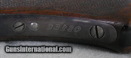 Description: #3732 Winchester Model 1885 Hi Wall Schuetzen Deluxe Rifle 90% 38-55 This is a beautiful High Wall Schuetzen rifle, 38-55 caliber, and deluxe wood, checkered pistol grip stock. The 30” barrel is ½ round and ½ octagon with globe front sight, bubble rear and a Lyman combination tang site. The butt plate is a Schuetzen style. The barrel retain 97% blue the receiver 80% blue and the deluxe wood is beautiful. The bore and mechanical function are excellent sharp and crisp. This is serial number is 93120 and was made in 1905 and will need a C&R or FFL to ship. I would consider trades for pre 1899 ANTIQUE PISTOLS and rifles on any of my items.. WHAT DO YOU HAVE TO TRADE? Ask about our 30-90 day lay-away program. We accept Bank Check, Money order, Personal checks or wire transfer. SOLD Curio/Relic: Yes Manufacturer: Winchester Serial Number: 93120 |