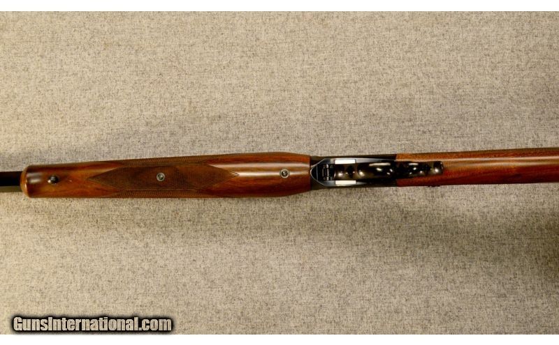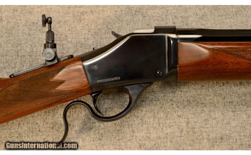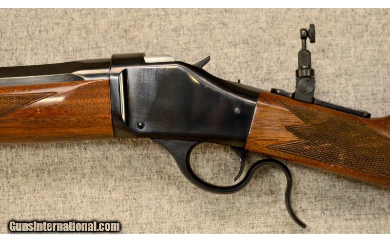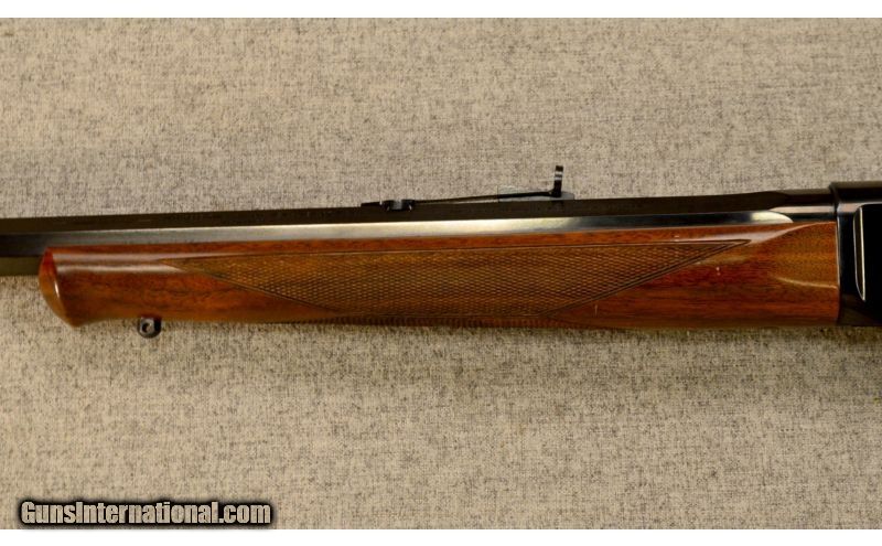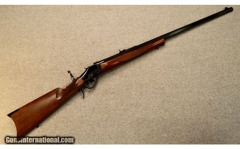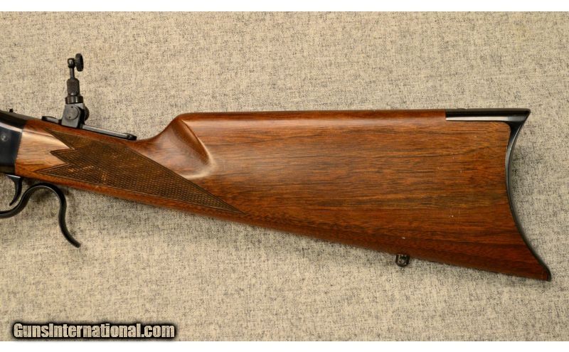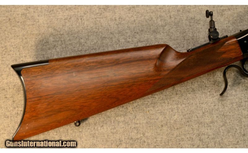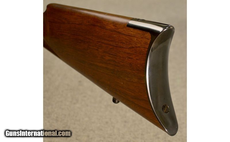 Description: SOLD Caliber Info: .45-70 Govt. Metal Condition: Very good with a few small scratches Wood Condition: Shows two repaired cracks on tang (pictured) and a number of small scratches and dents Bore Condition: Clean with bright lands Barrels: 28" octagonal Stock: Checkered straight grip walnut Stock Dimensions: 13 1/2" LOP Fore End: Schnabel-style checkered walnut Butt Pad: Blued steel crescent buttplate Weight: 8.25 Lbs. Sights: Marble's gold bead front, buckhorn rear with Marble's tang peep plus drilled and tapped for scope mounts Item Location: Billings, MT |