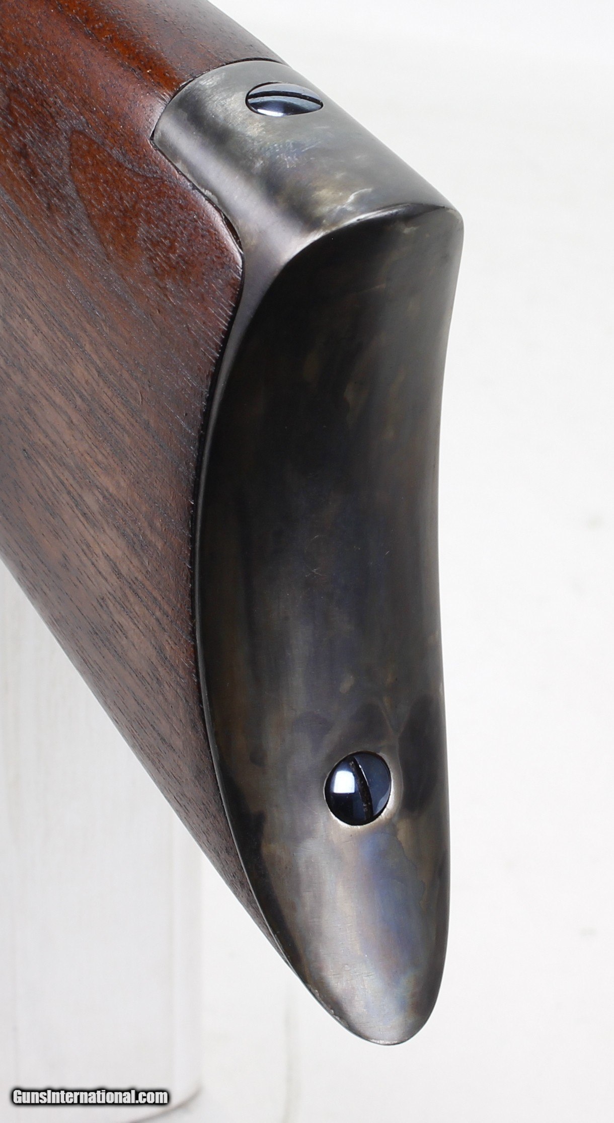 Description: Winchester Model 1885 Low Wall Single Shot Rifle in .32-20. SN #75248. Mfg. in 1896. LOP 13". The 30" Octagon Barrel was a SPECIAL ORDER, not offered standard. It has been Sleeved and has an EXCELLENT Bright Bore with STRONG RIFLING. It is also a #1 Tapered Barrel witch is a RARE FIND in a Low Wall Rifle. Both the Blued / Case Colored Metal and Smooth Walnut Straight Stock and Forend with Schnabel have been FULLY RESTORED by SHOOTER'S EXCHANGE and LOOK GREAT. Case Colored Crescent Buttplate, Hammer and Lever. Modern Marble Tang Peep Sight. This would make a GREAT ADDITION to any Winchester Collection. Weight: 7.1 lbs. Trigger Pull: 1 1/4 lbs. AS AN ANTIQUE, NO FFL IS REQUIRED TO PURCHASE. IT IS ALSO AVAILABLE FOR INTERNATIONAL SALES / SHIPPING. More photos available upon request. Ships to Lower 48 W/ Insurance $60.00. SOLD Curio/Relic: Yes Antique: Yes Rifle Caliber: .32-20 Winchester Manufacturer: Winchester Model: 1885 Low Wall Serial Number: 75248 Barrel Length: 30" Octagon Condition: Excellent Metal Condition: Refinished Wood Condition: Refinished Bore Condition: Excellent Action: Lever LOP: 13 Finish: Blue / Case Colored Weight: 7.1 lbs. Manufacture Date: 1896 |