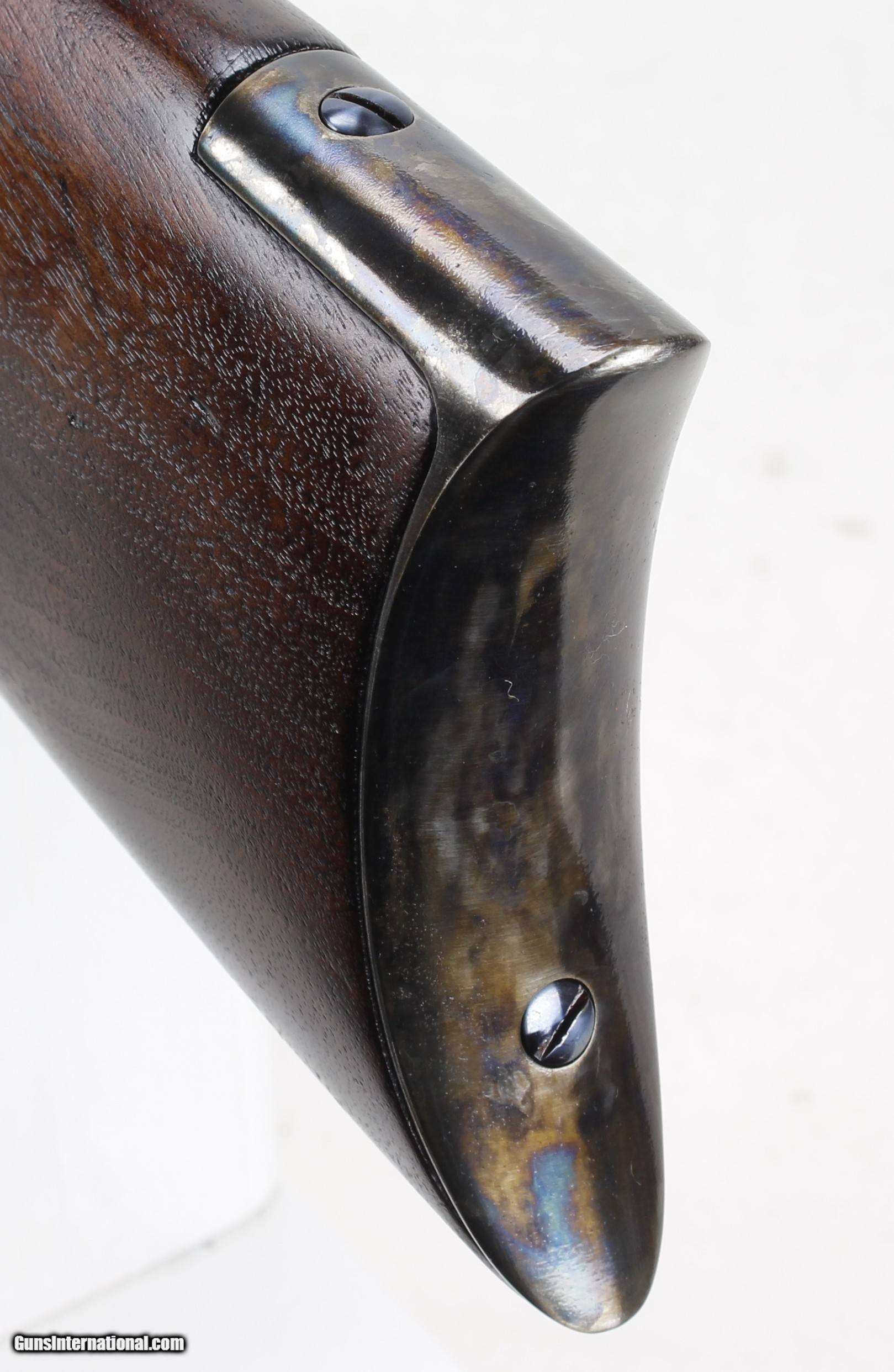 Description: Winchester Model 1885 Low Wall Single Shot Rifle in .32-20. SN #63436. Mfg. in 1893. LOP 13 1/4". 26" #1 Heavy Octagon Barrel with a very good bore for it's age. The Blued Barrel and Case Colored Receiver and Buttplate have been nicely refinished as has the straight Walnut Stock and Forend. Open sights. Crescent Buttplate. A really nice ANTIQUE Rifle in a GREAT caliber. Weight: 7 lbs. Trigger Pull: 5.5 lbs. As an ANTIQUE no FFL is needed to purchase. Available for International Shipping. More photos available upon request. Ships to Lower 48 W/ Insurance $50.00. SOLD Curio/Relic: Yes Antique: Yes Rifle Caliber: .32-20 Winchester Manufacturer: Winchester Model: 1885 Low Wall Serial Number: 63436 Barrel Length: 26" Hvy Octagon Condition: Excellent Metal Condition: Refinished Wood Condition: Refinished Bore Condition: VG Action: Lever LOP: 13 1/4 Finish: Blue / Case Colored Weight: 7 lbs Manufacture Date: 1893 |