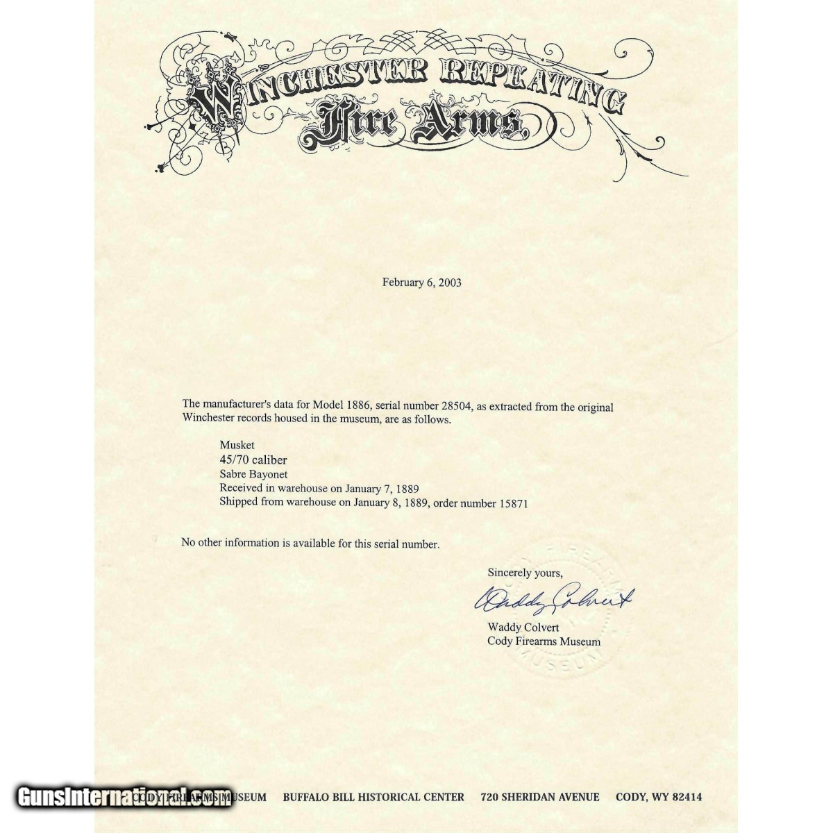 "Rare Winchester 1886 Musket with Sabor Bayonet (AW1104) CONSIGNMENT