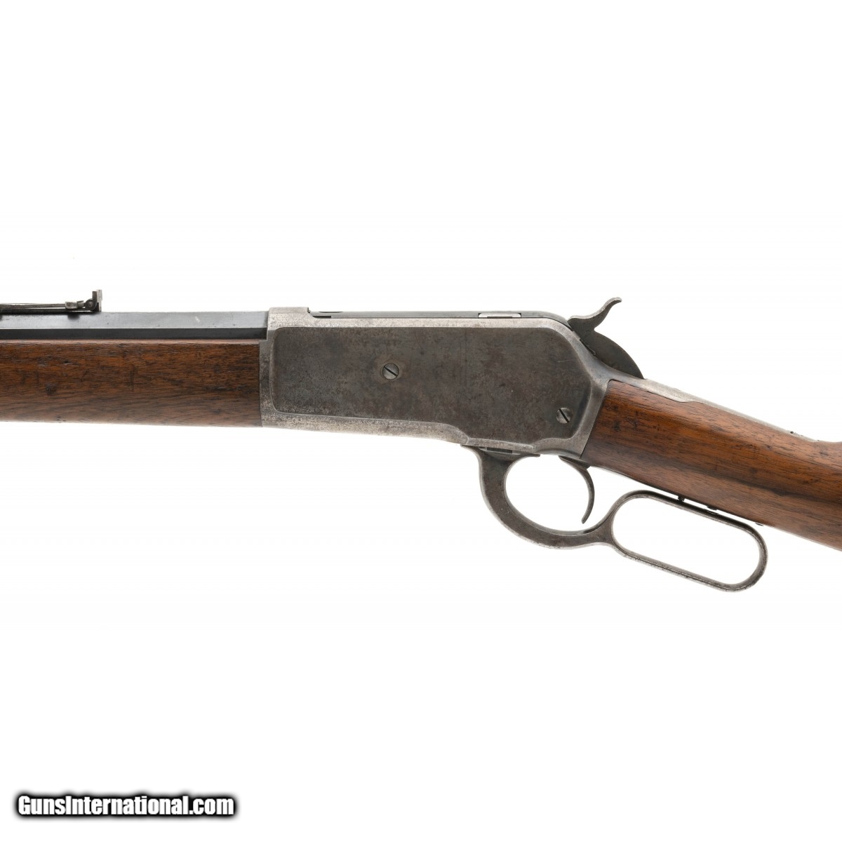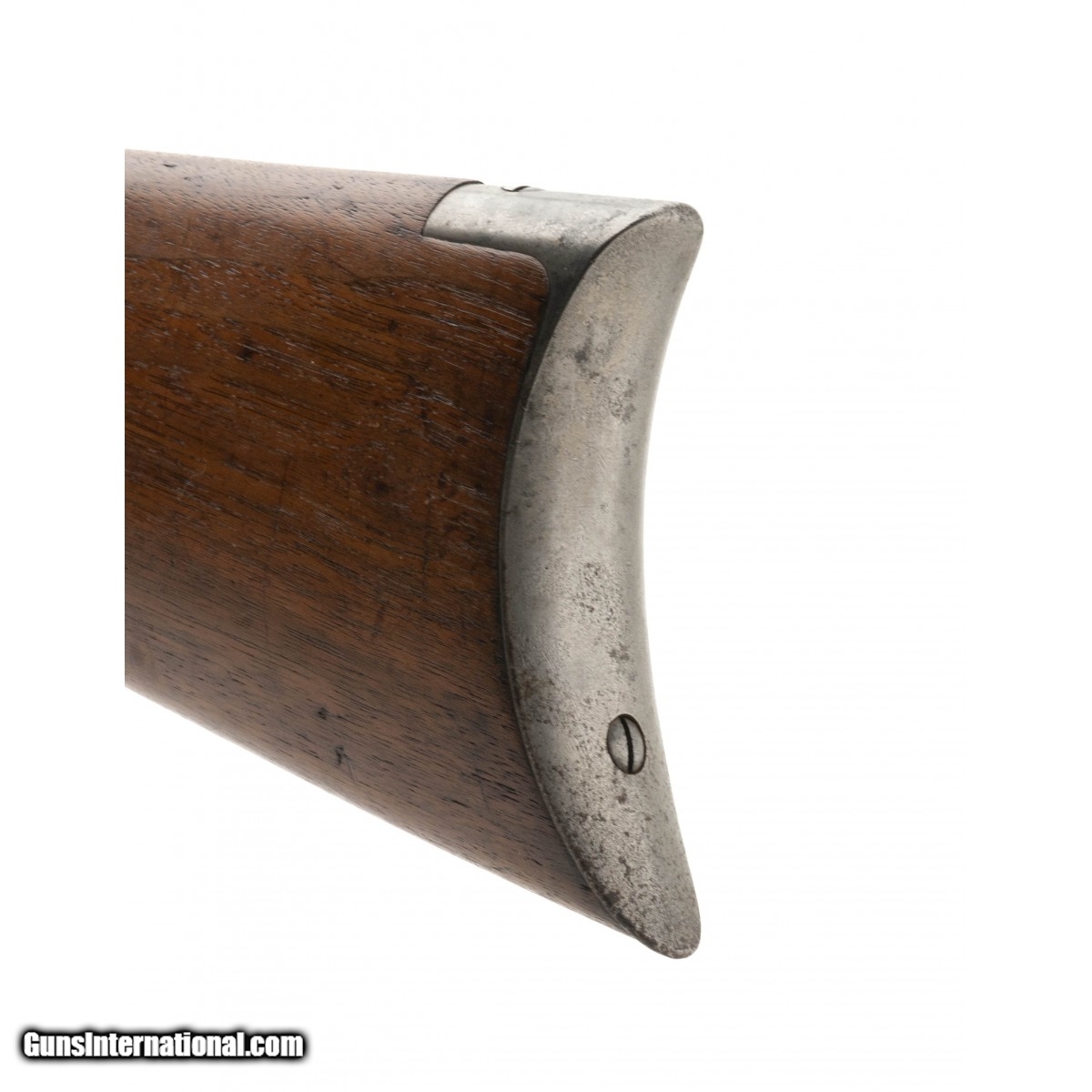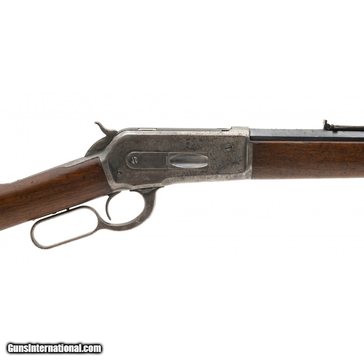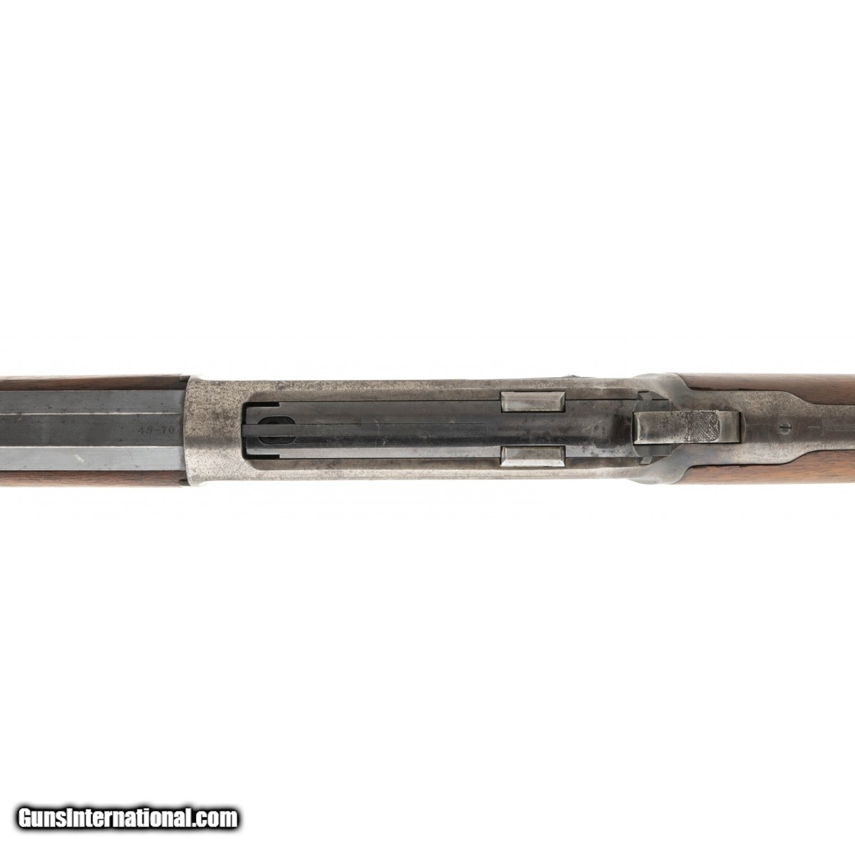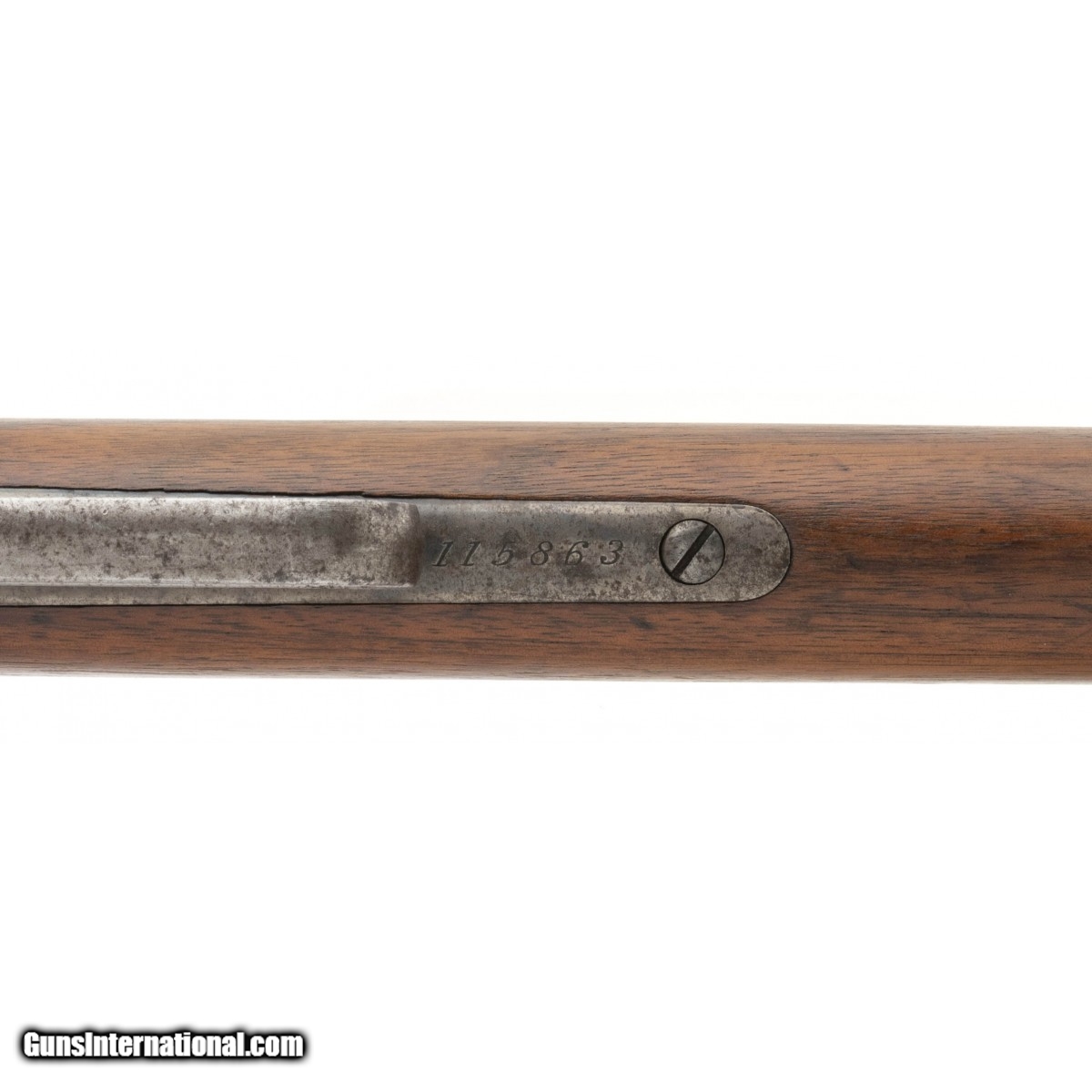 Description: "Serial number 115863. Made in 1898. 45-70 caliber with a 26" barrel. Very fine gun with a lot of the original finish. Barrel has 85%-90% of the original blue. Good case colors remain that are turning to a silvery patina. Some light blue case colors remain on the right hand side of the frame. Wood is very good overall. SOLD Antique: Yes |