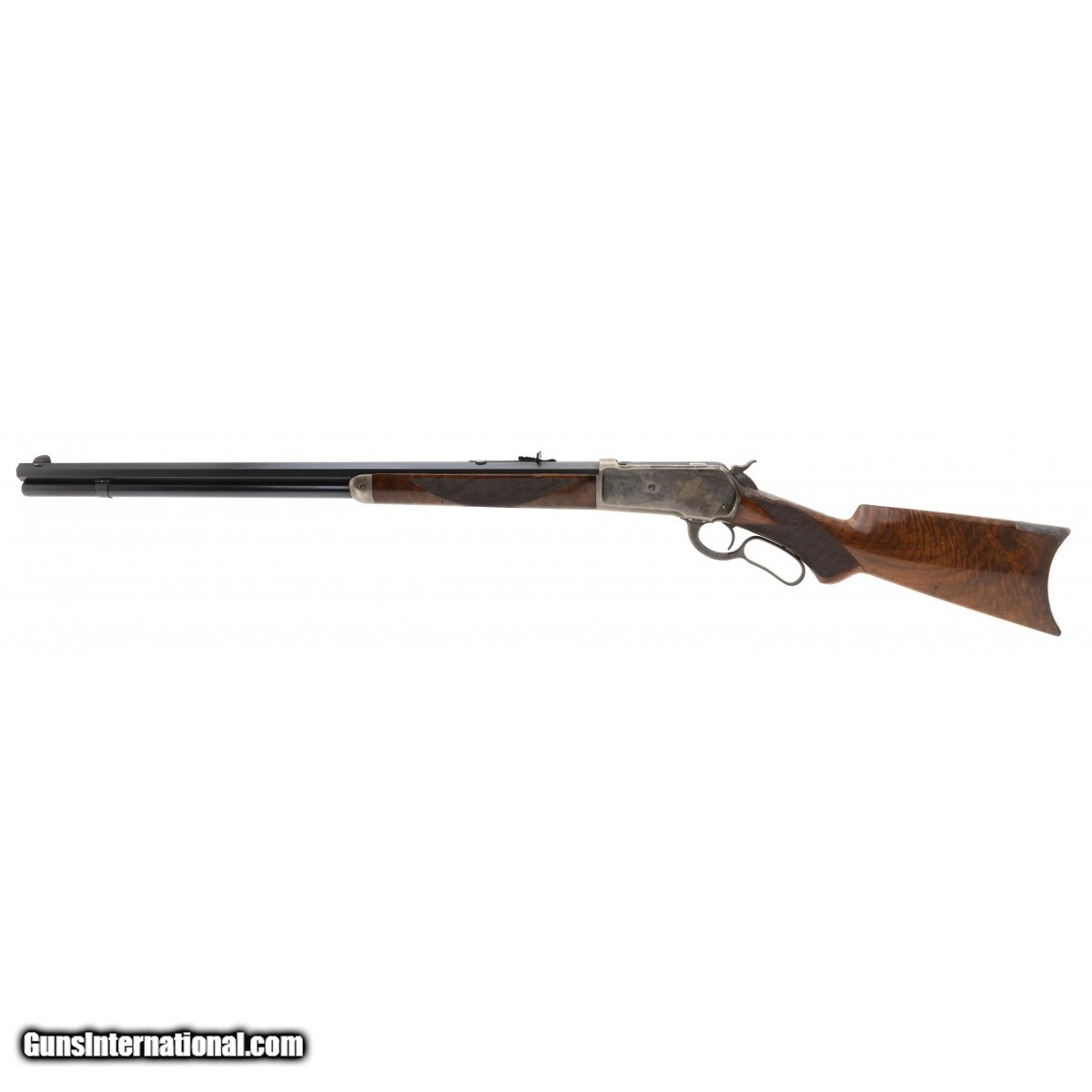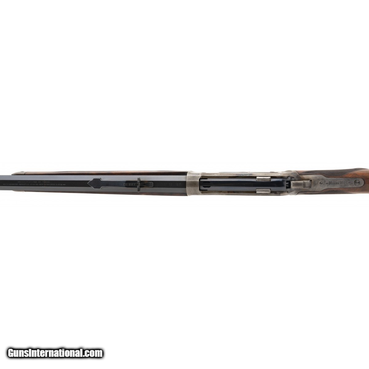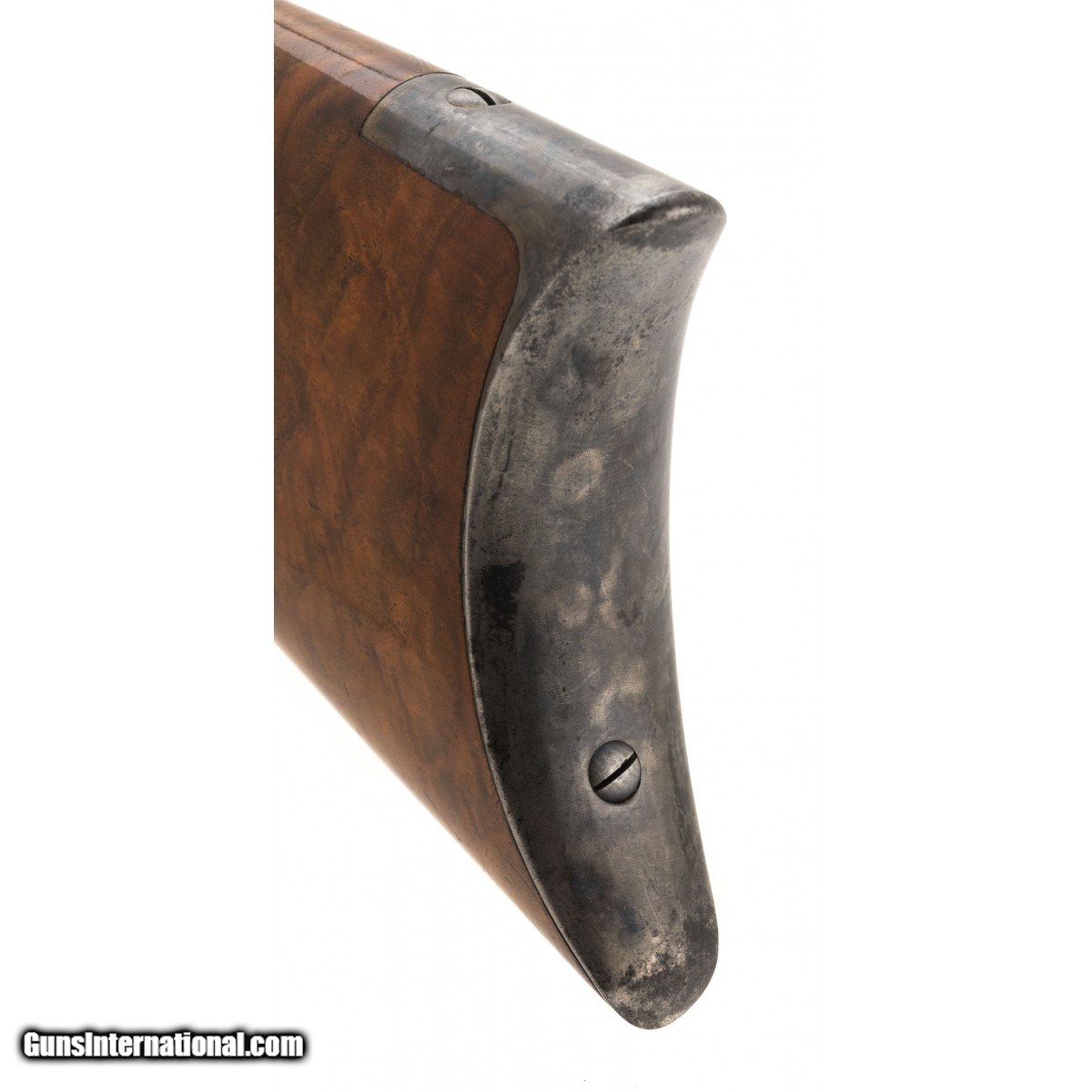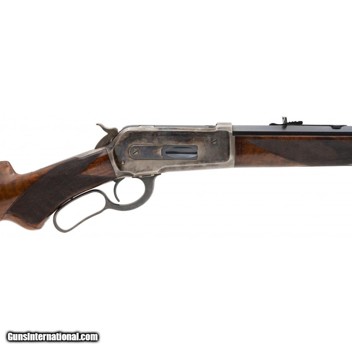 Description: "Serial number 57770. Made in 1891. 45-90 caliber with a 26" barrel. This is an absolutely beautiful deluxe Winchester 1886. The barrel has 99% of the original blue on the barrel. The frame has most of the bright case colors. Wood has beautiful figure and is excellent. This gun comes with a factory letter confirming all features. SOLD Antique: Yes |