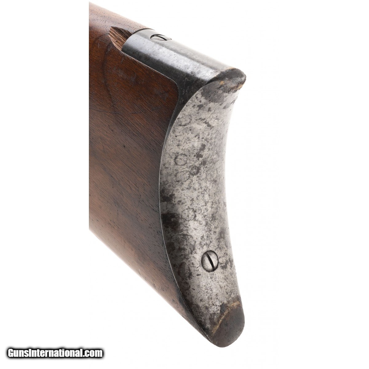 Description: " SN: 82790. Made in 1893. 45-70 with a 26"" barrel. Bore is very good with light pitting. Lever action rifle with 80% original finish on barrel and mag tube. The receiver has a silvery patina with traces of case colors. The butt plate has some rust on it. Wood is very good with some marks and wear. A very fine Winchester 1886 in desirable .45-70 caliber. SOLD Antique: Yes |