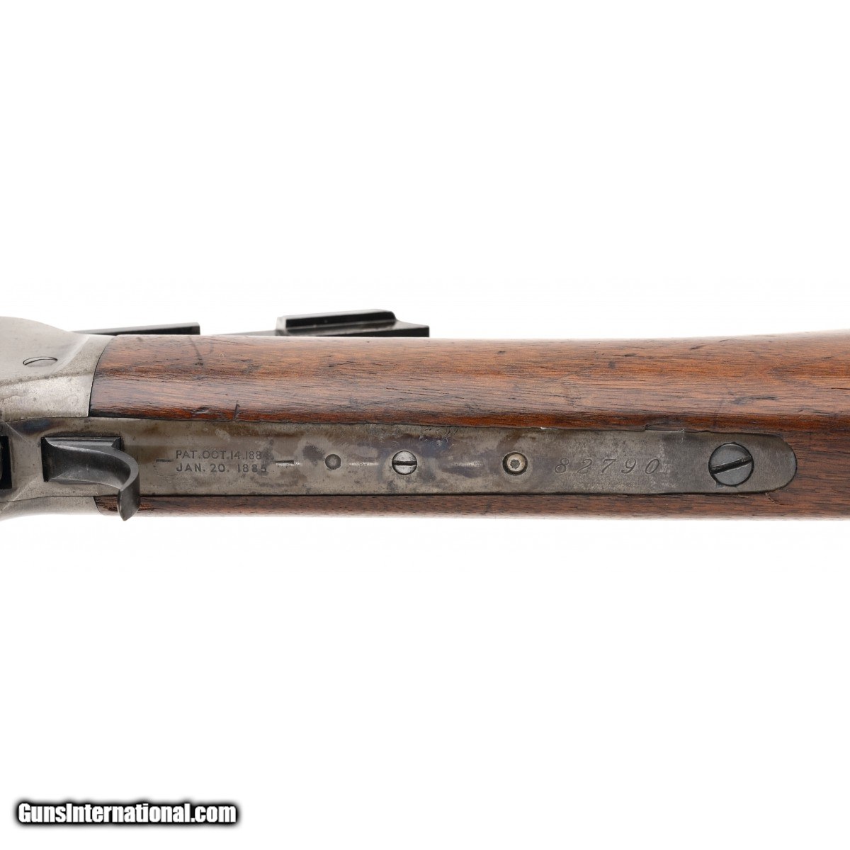 SN: 82790. Made in 1893. 45-70 with a 26"" barrel. Bore is very good with light pitting. Lever action rifle with 80% original finish on barrel and mag tube. The receiver has a silvery patina with traces of case colors. The butt plate has some rust on it. Wood is very good with some marks and wear. A very fine Winchester 1886 in desirable .45-70 caliber.