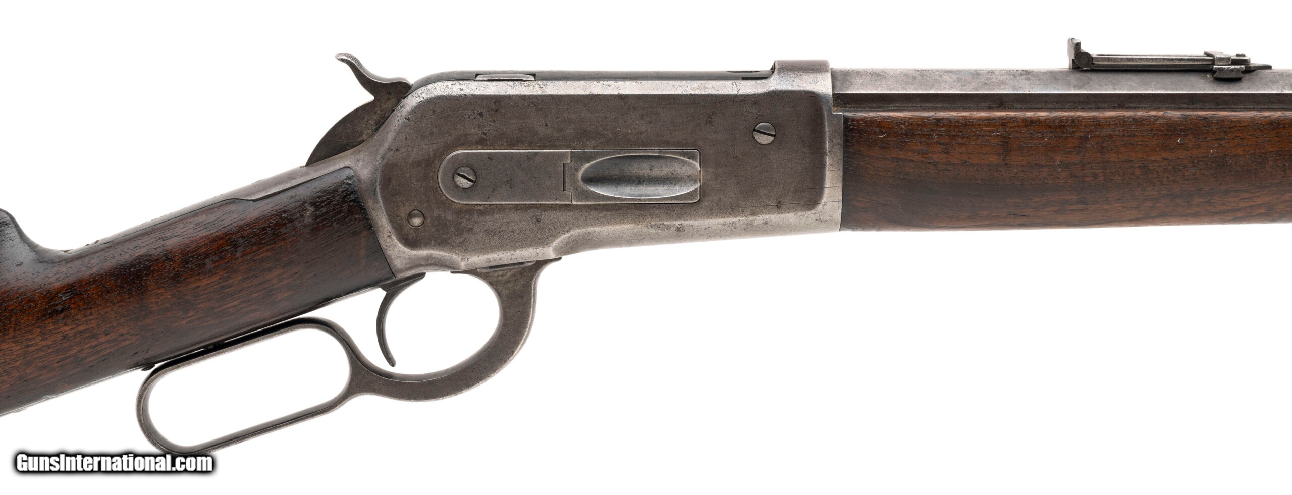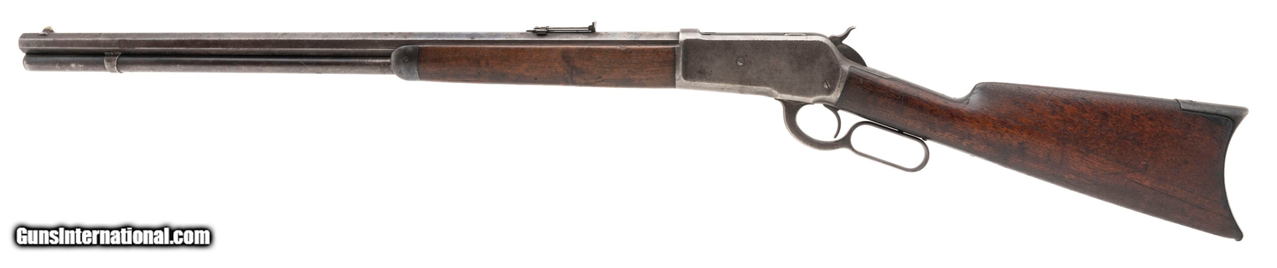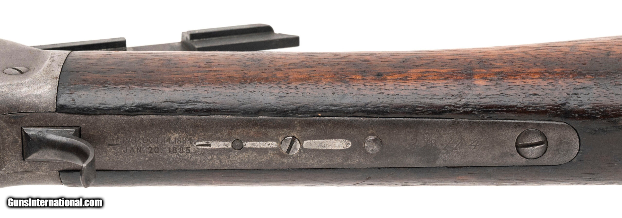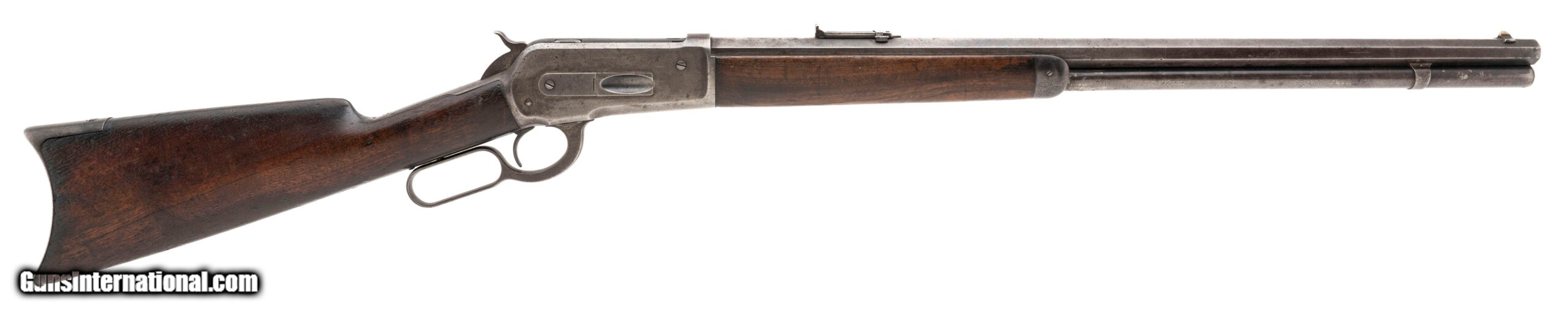 Description: "Serial No. 38114, made in 1889, .45-70, 26" octagonal barrel. Bore is good with scattered areas of oxidation visible in the grooves, rifling remains strong. Barrel and magazine tube are a darker grey patina with the receiver is a smooth light grey patina. Factory markings on barrel, tang and trigger guard are sharp. Butt stock and forearm remain in very good condition with light nicks, dings and scratches. Action is smooth and functions correctly. SOLD Antique: Yes |