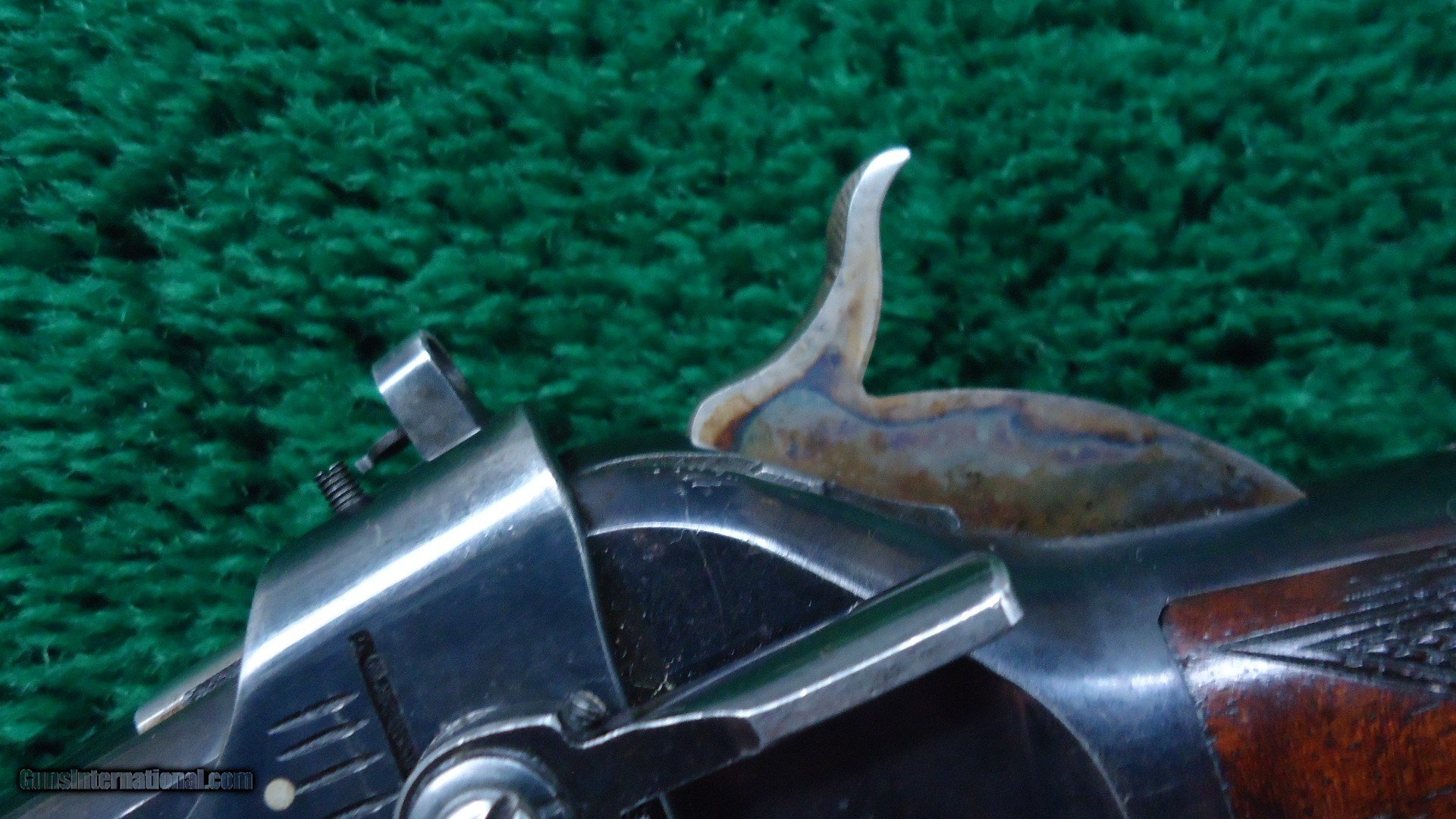 Description: 24 inch extra light weight rapid taper barrel chambered in the desirable 45-70 caliber with full length magazine tube. Gun features a take down frame. Crisp tight action and an excellent bore. Flat top sporting rear sight and number 6 Lyman hunters front sight. Also fitted with a Lyman side mount receiver sight. Sights are listed on the Factory Letter. Deluxe checkered walnut stock with hard rubber buttplate. Wood retains most of the varnish. Checkering is sharp. Barrel and mag retain about 97% blue. Receiver has about the same with some dulling on the takedown ring and the front area. Hammer and lever retain bright case colors. On the side of the stock is a plaque with "John G. Leonard". This is just a beautiful gun inside and out. Would be hard to improve upon. Leroy Merz Antique Firearms specializes in antique and vintage Winchesters and other fine American firearms. Since 1965 Mr. Merz has taken part in the world of firearms and has been a contributor to many well known reference books. We have hundreds of additional guns in every price range at our home online. Search for Merz Antiques in google. SOLD Curio/Relic: Yes Rifle Caliber: .45-70 Government |