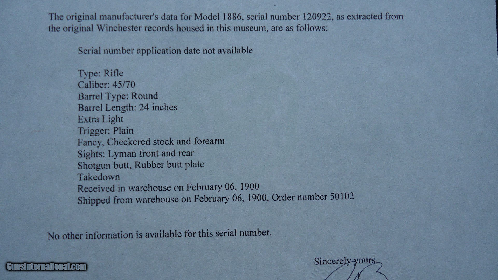 *Sale Pending* - BEAUTIFUL WINCHESTER 1886 SPECIAL ORDER DELUXE RIFLE IN CALIBER 45-70