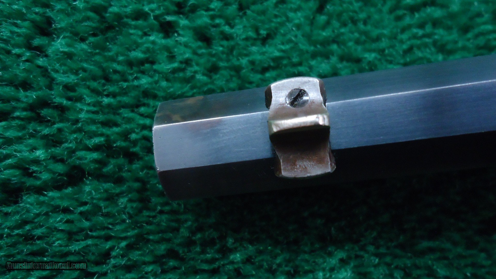 Description: 26 inch octagon barrel. Excellent bore that is bright and shiny with strong rifling. Sights include No. 21 sporting front with nickel silver blade and a No. 22 sporting rear. Full length magazine. Action is crisp and tight. Metal surfaces retain about all re-blued finish with very light handling marks. Walnut stocks have been lightly cleaned and have a fresh coat of finish over light handling marks. Features a crescent rifle butt. Good looking rifle made in 1901. Leroy Merz Antique Firearms specializes in antique and vintage Winchesters and other fine American firearms. Since 1965 Mr. Merz has taken part in the world of firearms and has been a contributor to many well known reference books. We have hundreds of additional guns in every price range at our home online. Search for Merz Antiques in google. SOLD Curio/Relic: Yes Rifle Caliber: .45-70 Government |