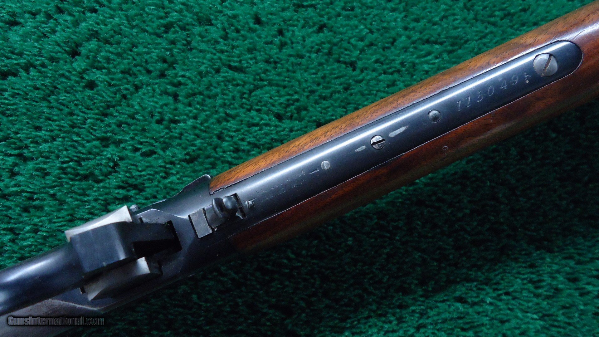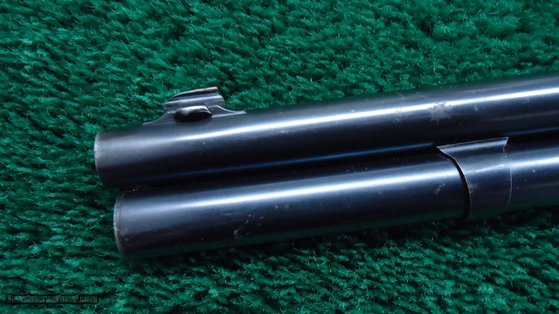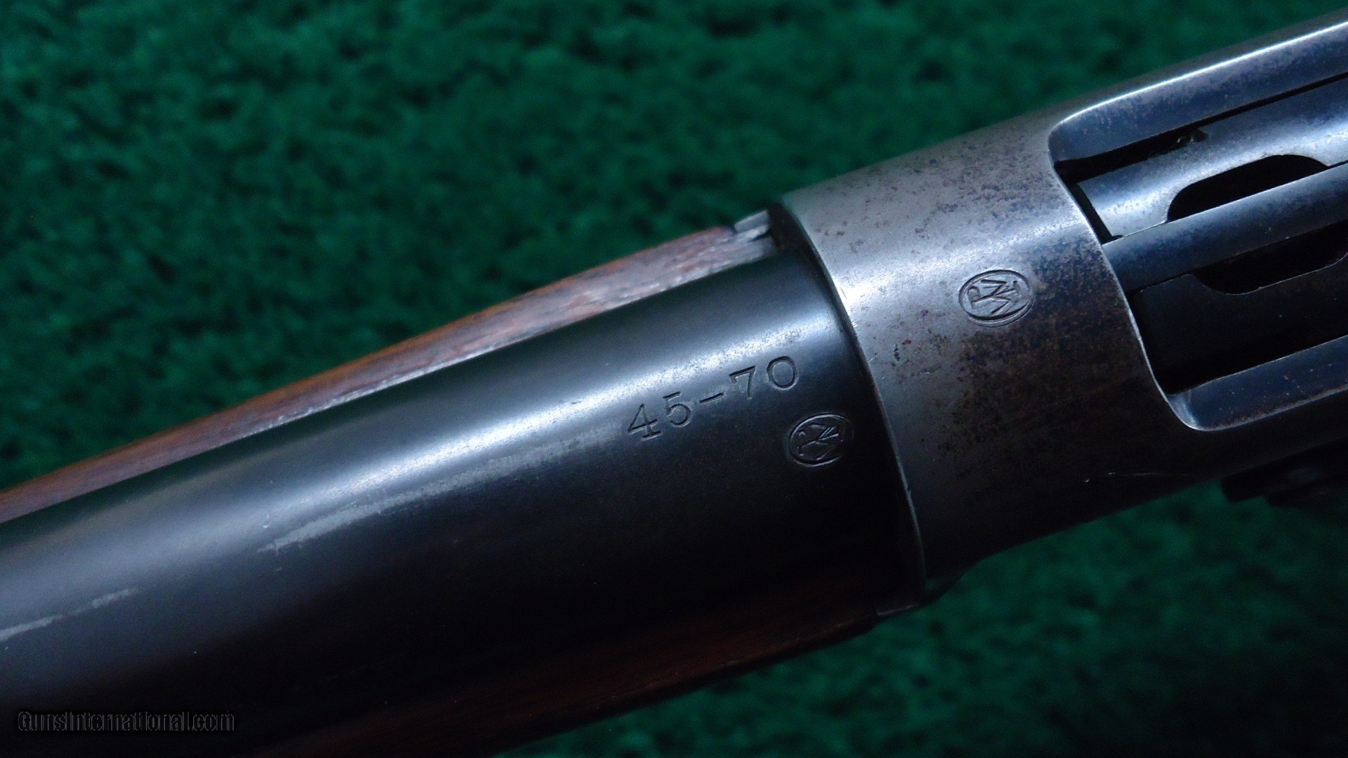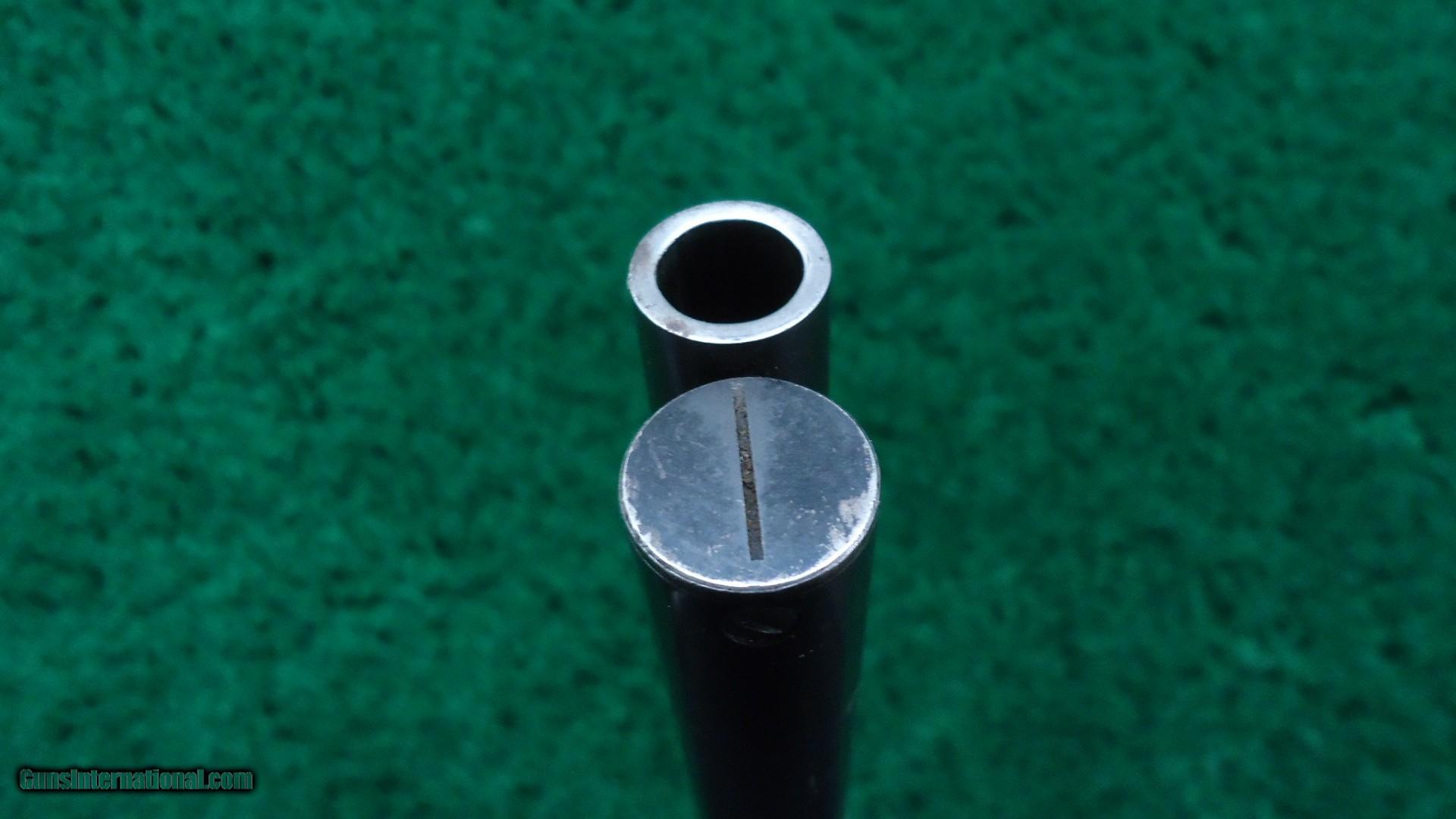 Description: This special order rifle is unusual in that it has double set triggers and a full length magazine tube. Features a 22 inch tapered round nickel steel barrel with a bright shiny near excellent bore chambered in the desirable 45-70 Govt. caliber. In fact the diameter at the end of the magazine is actually larger than muzzle of the barrel. Sights include a Marble's Sheard brass bead front with a blank filler in the rear and a Lyman 21 receiver sight. Receiver and barrel show Winchester "WP" factory proof marks indicating that the rifle went back to the factory sometime after 1905. The mag tube retains most all of its original blue and the barrel shows some thinning of the blue but still retains most all of it as well. Receiver has about 70% original blue with a little flaking and worn to a pewter gray on the bottom at the carry point. Hammer and lever are blued. Good legible markings. Smooth walnut stocks are in very good condition and good fitting with just minor handling and usage mars. The shotgun butt is fitted with a Winchester solid red rubber pad. Nice crisp action and set trigger works fine. This is an interesting Winchester rifle that was made in 1897 and went back to the factory for some upgrades to an unusual configuration. Should be a handy shooter. Leroy Merz Antique Firearms specializes in antique and vintage Winchesters and other fine American firearms. Since 1965 Mr. Merz has taken part in the world of firearms and has been a contributor to many well known reference books. We have hundreds of additional guns in every price range at our home online. Search for Merz Antiques in google. SOLD Antique: Yes Rifle Caliber: .45-70 Government |